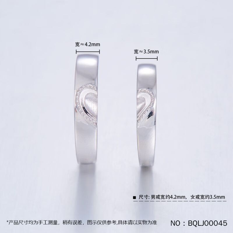 Kaibaolou Pt950 platinum couple rings, men's and women's platinum pairs of rings, brushed bead edge heart-shaped heart-shaped live mouth rings, 8.36g pair