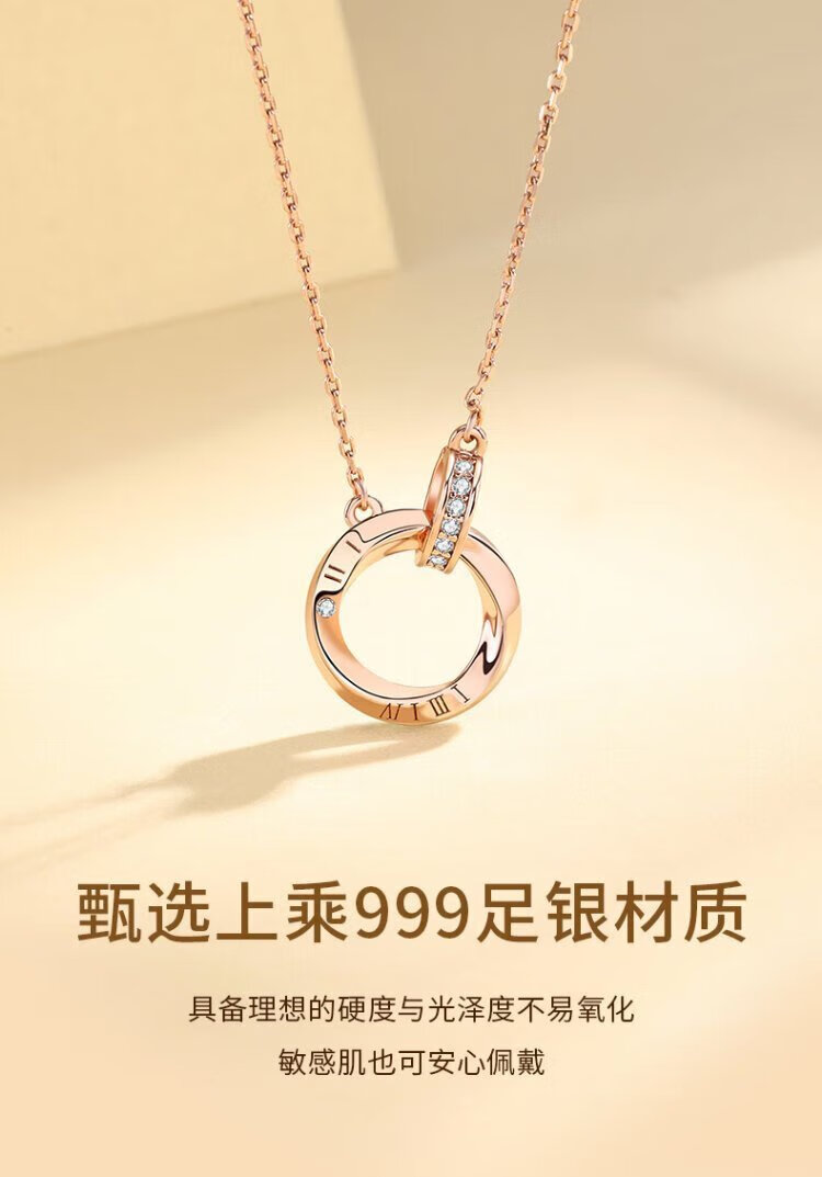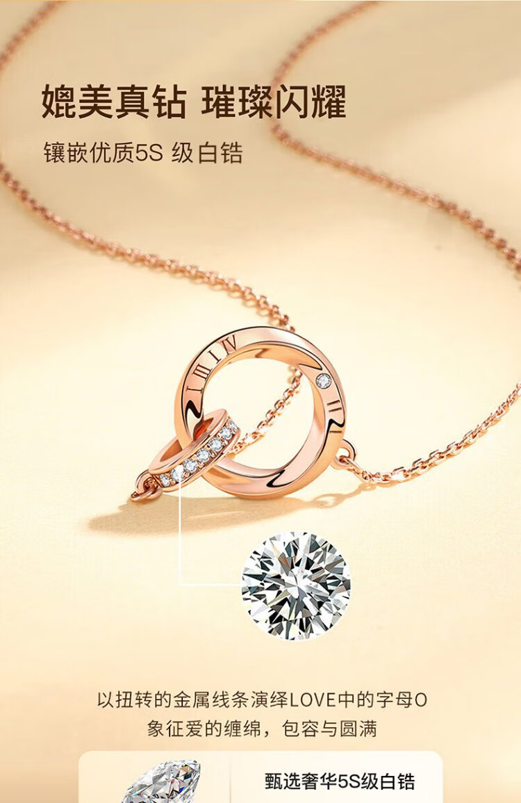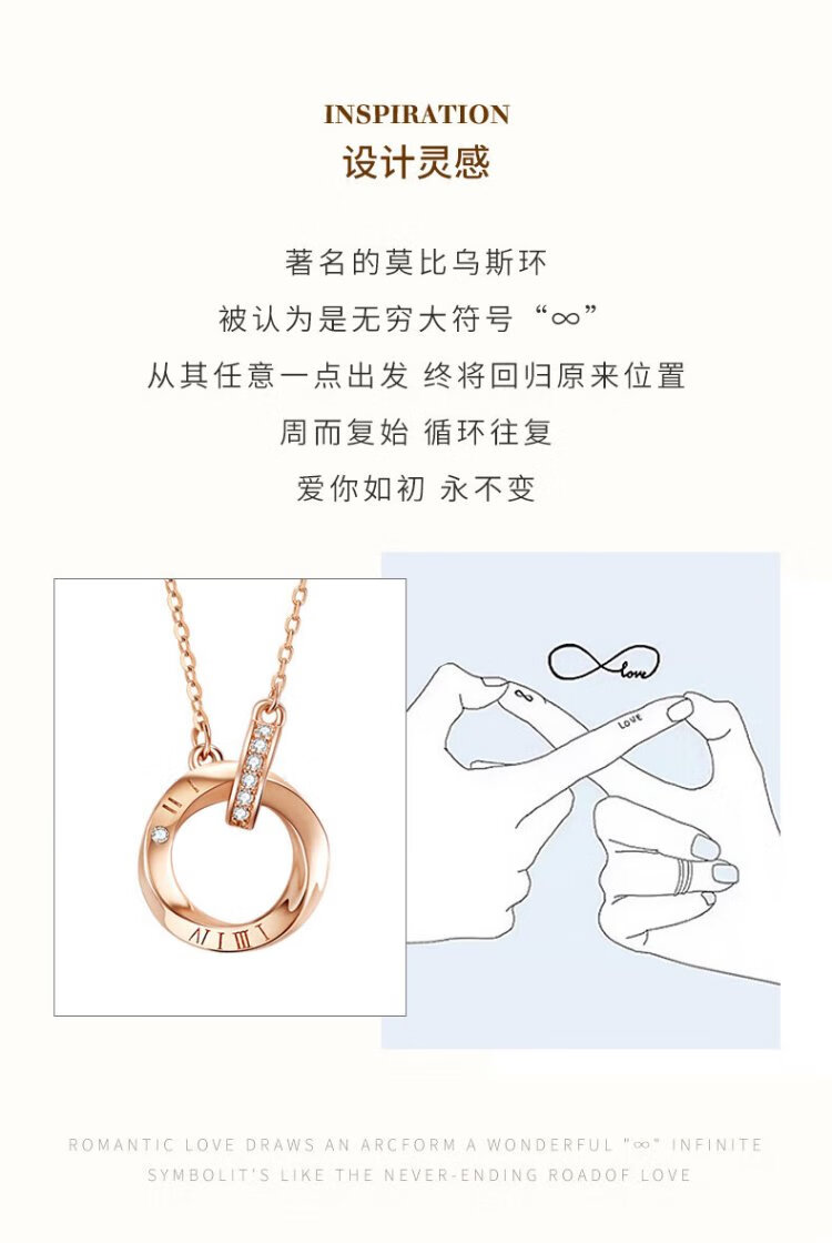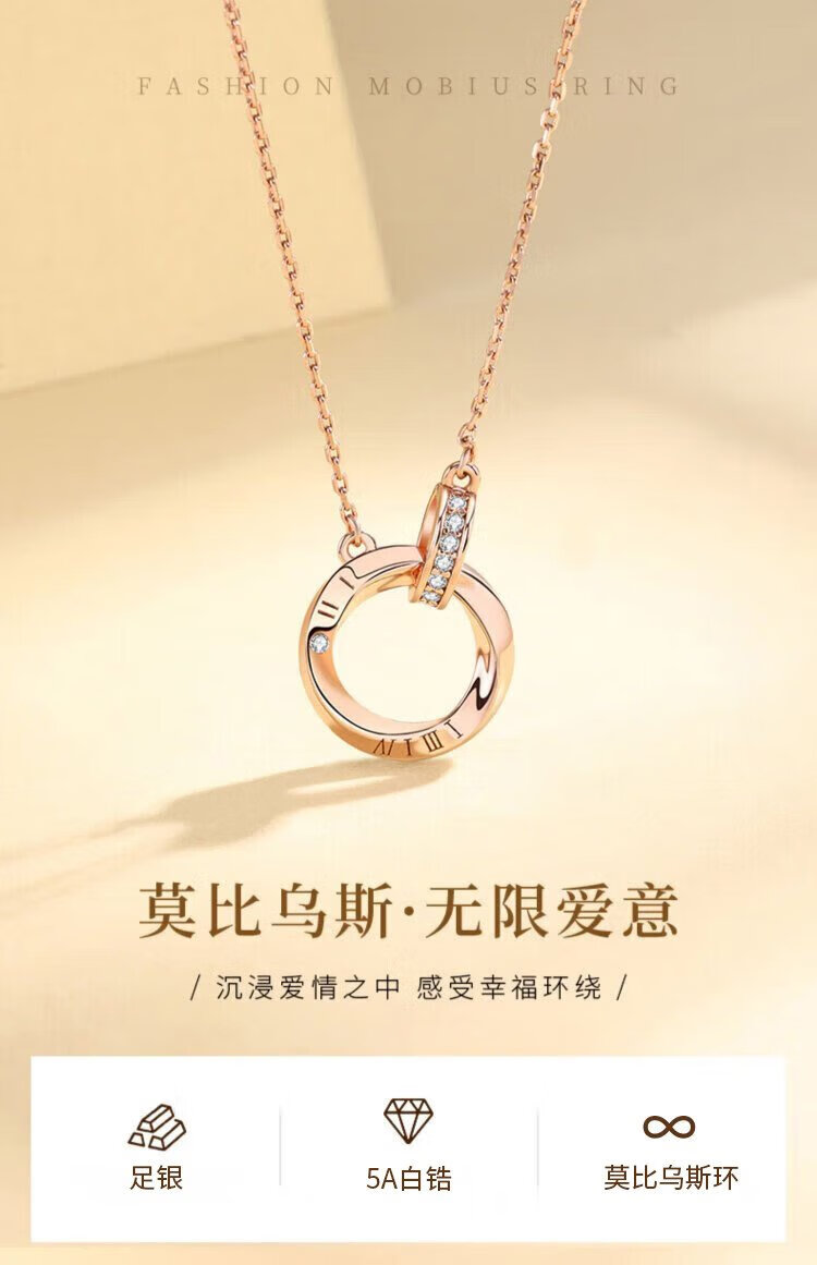 GLTEN Mobius silver necklace, female pendant, birthday gift for girls, wedding confession anniversary, for girlfriend, wife, best friend, rose gold necklace + gift box + certificate