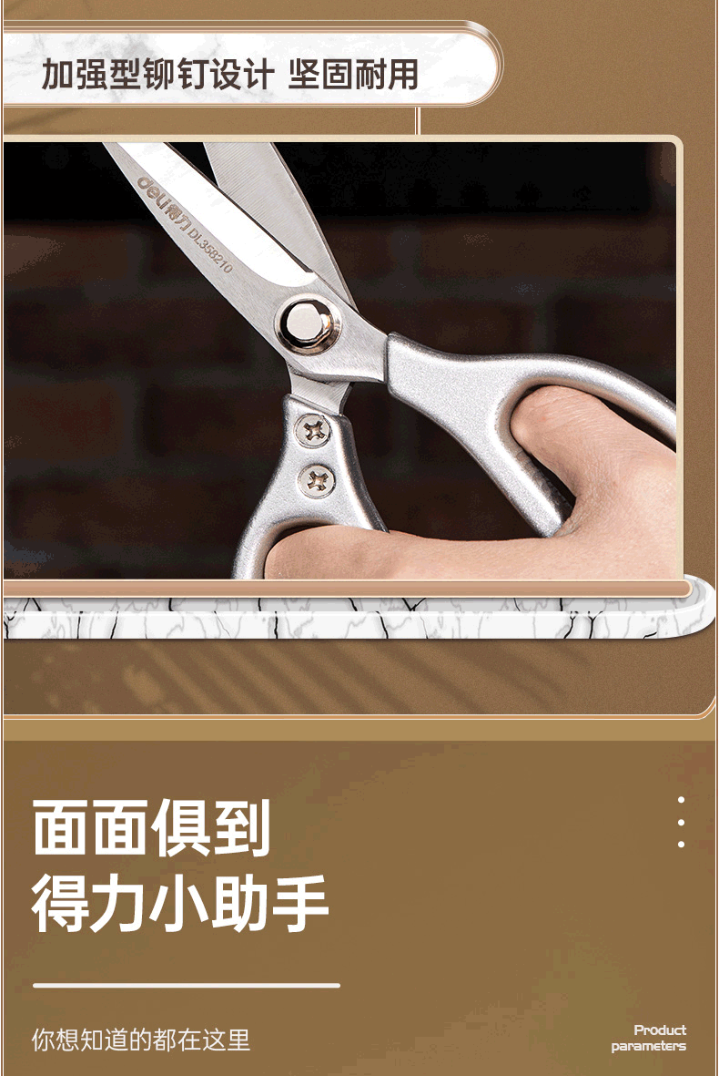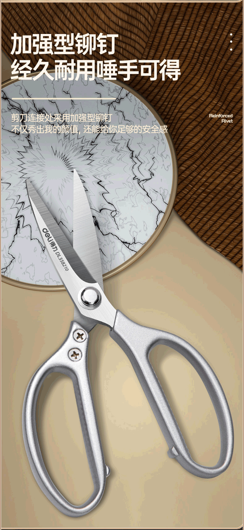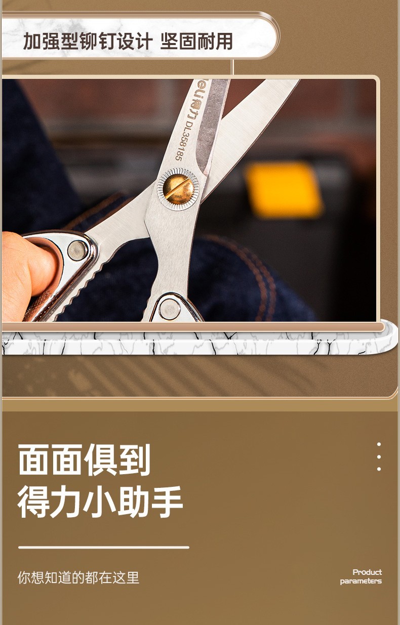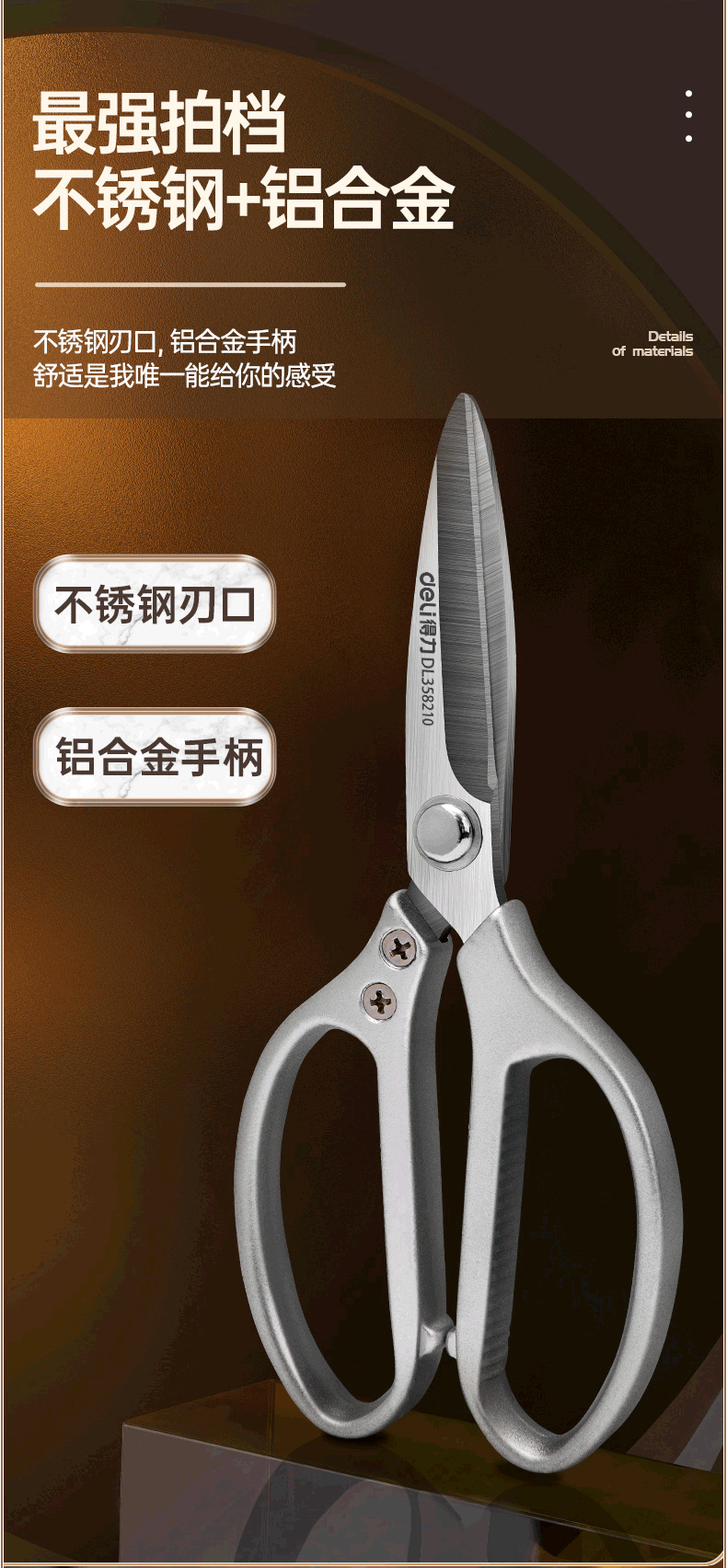 Deli multifunctional scissors zinc alloy handle kitchen office household strong industrial scissors large full metal scissors strong industrial scissors 235mmDL358235
