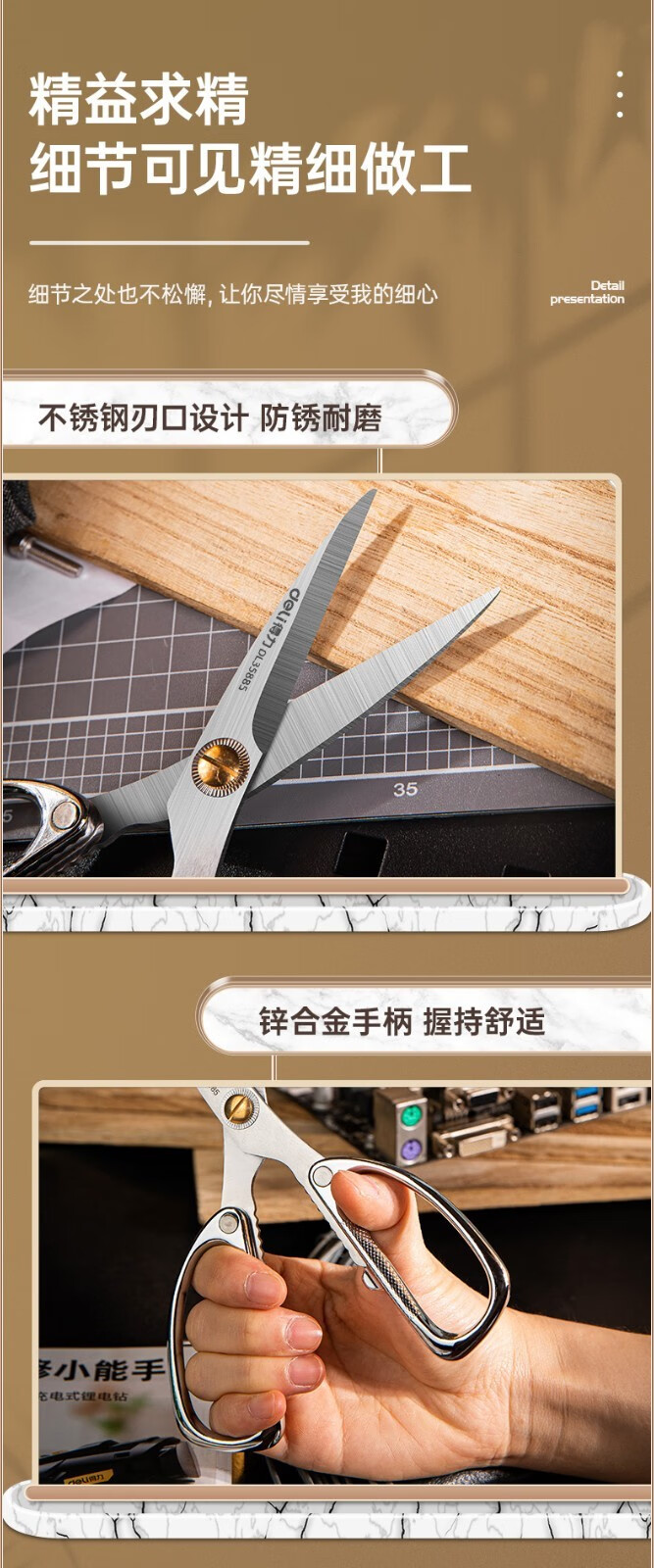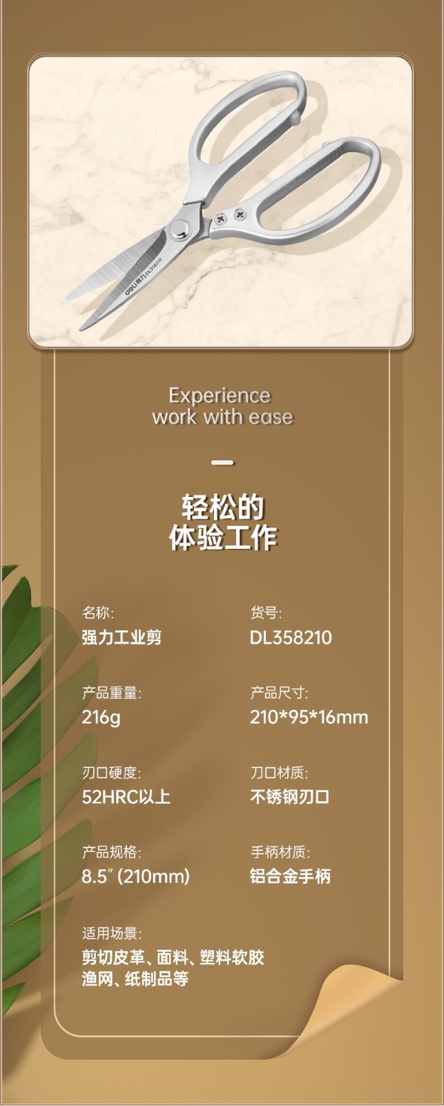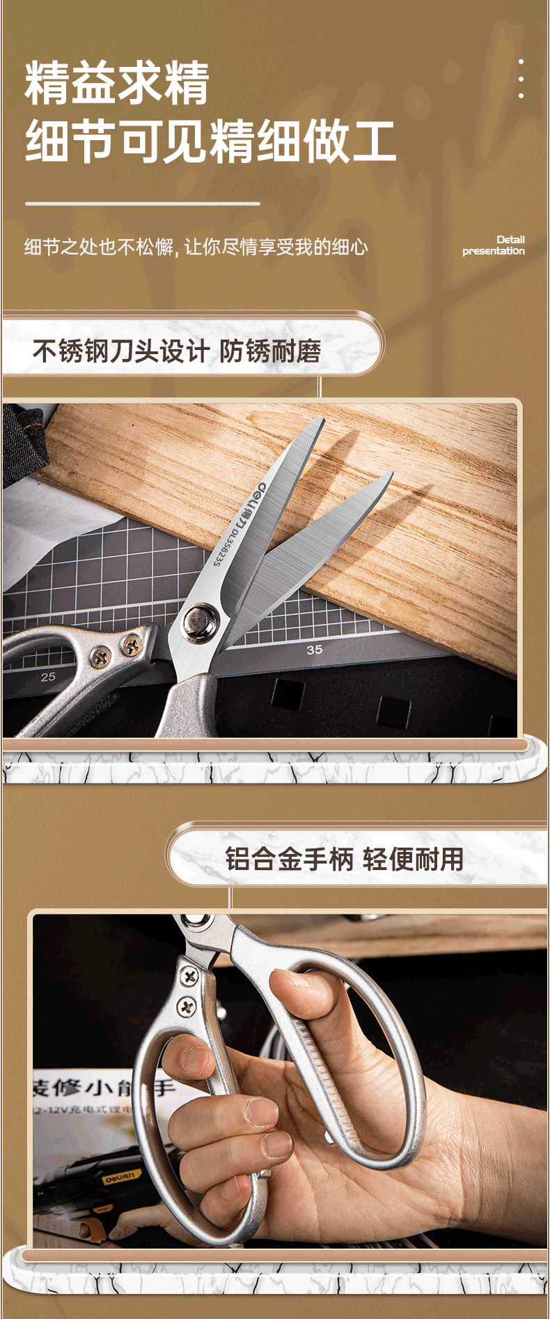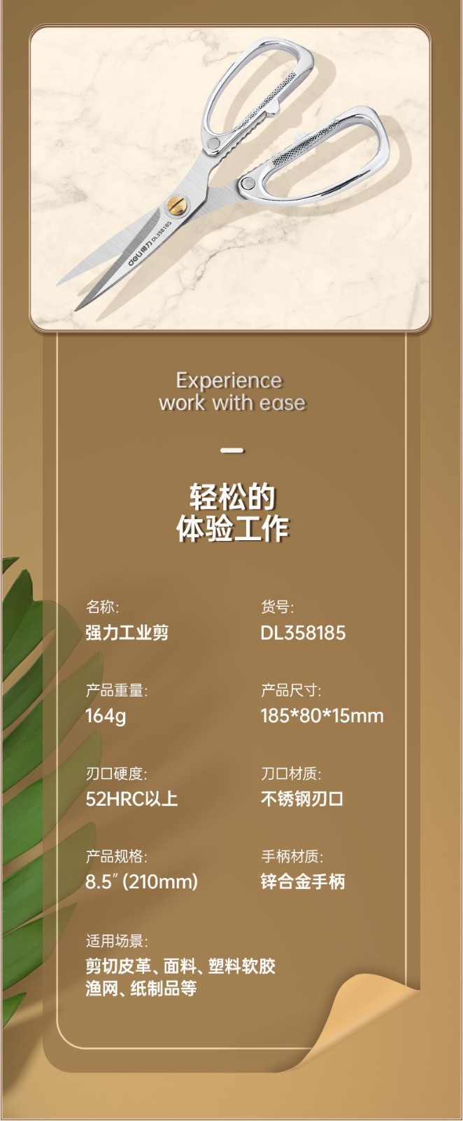 Deli multifunctional scissors zinc alloy handle kitchen office household strong industrial scissors large full metal scissors strong industrial scissors 235mmDL358235