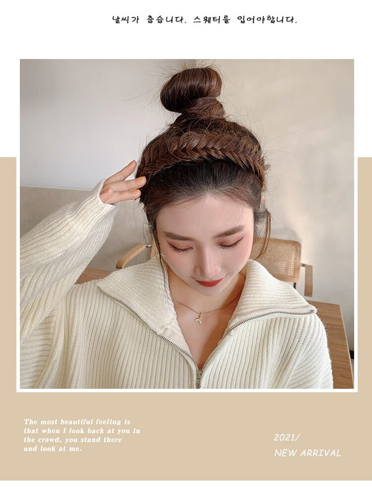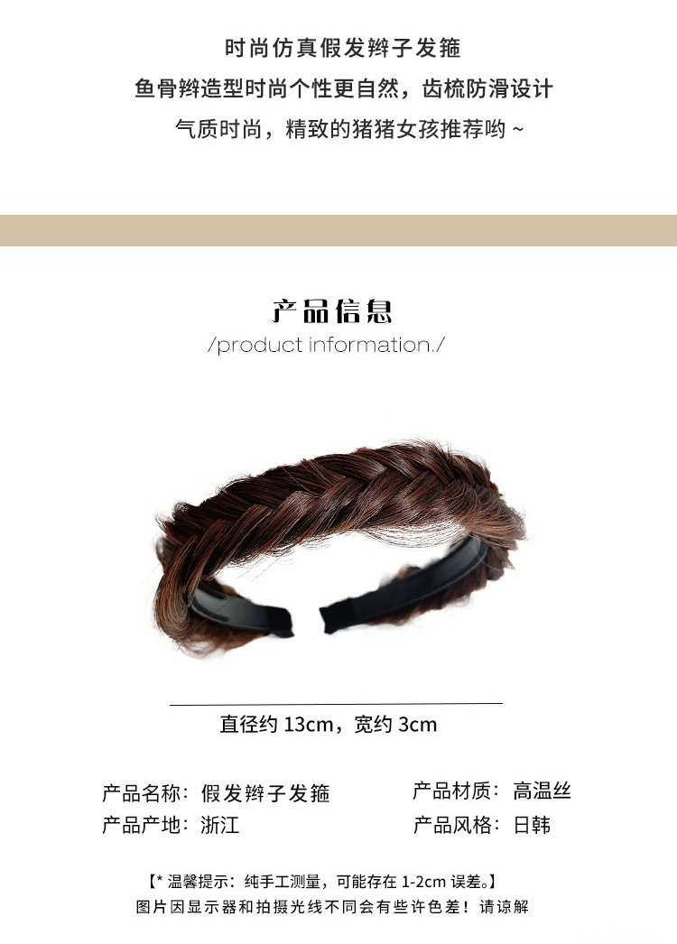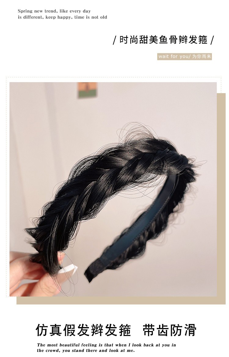 SHUFEN braided wig headband headband handmade fishbone braided headband internet celebrity 2025 new braided hairband F1051 black headband