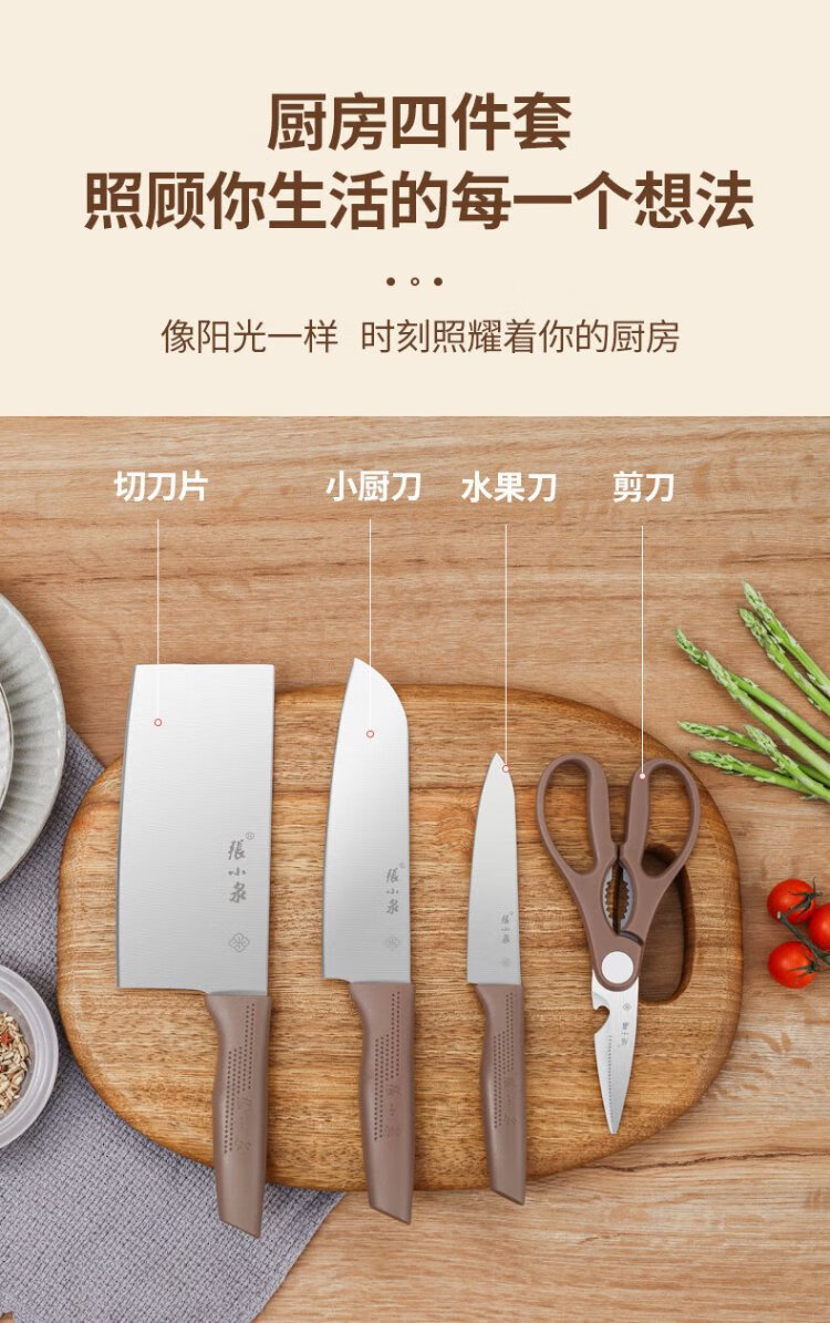 Zhang Xiaoquan Hexu four-piece kitchen knife set household kitchen knife cutter scissors kitchen utensil set knife set