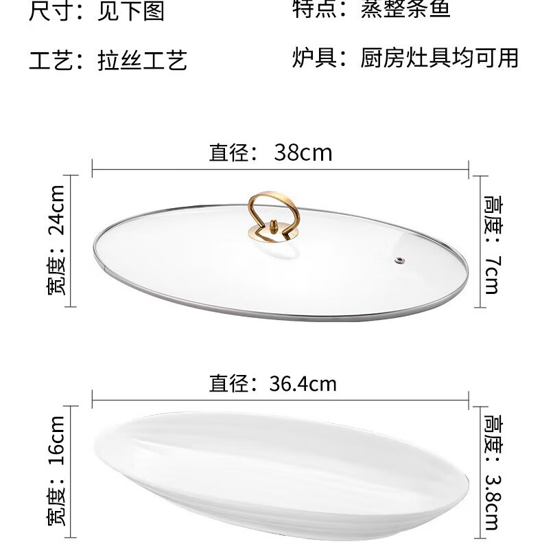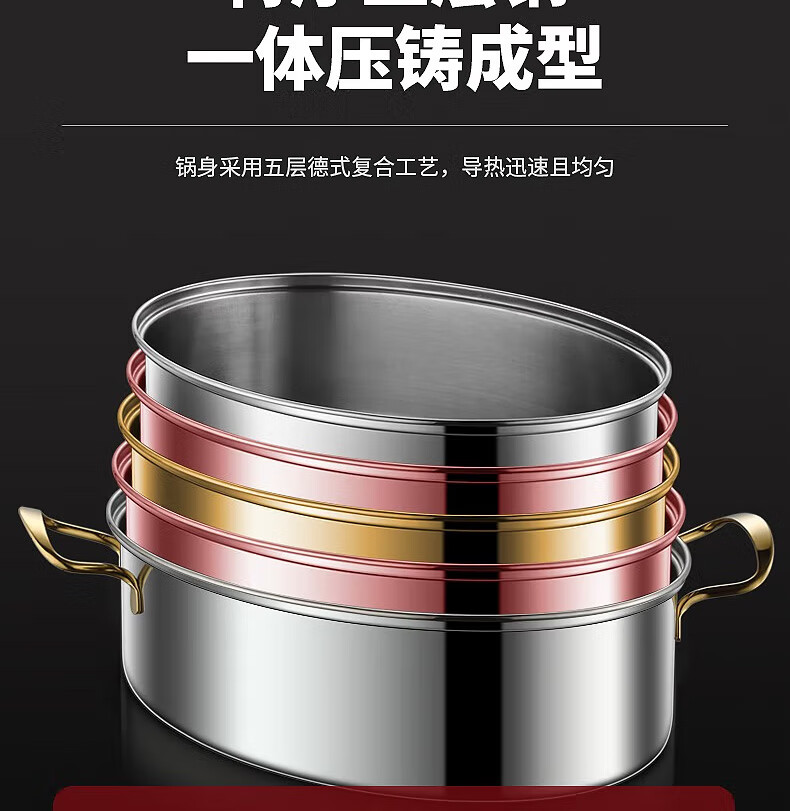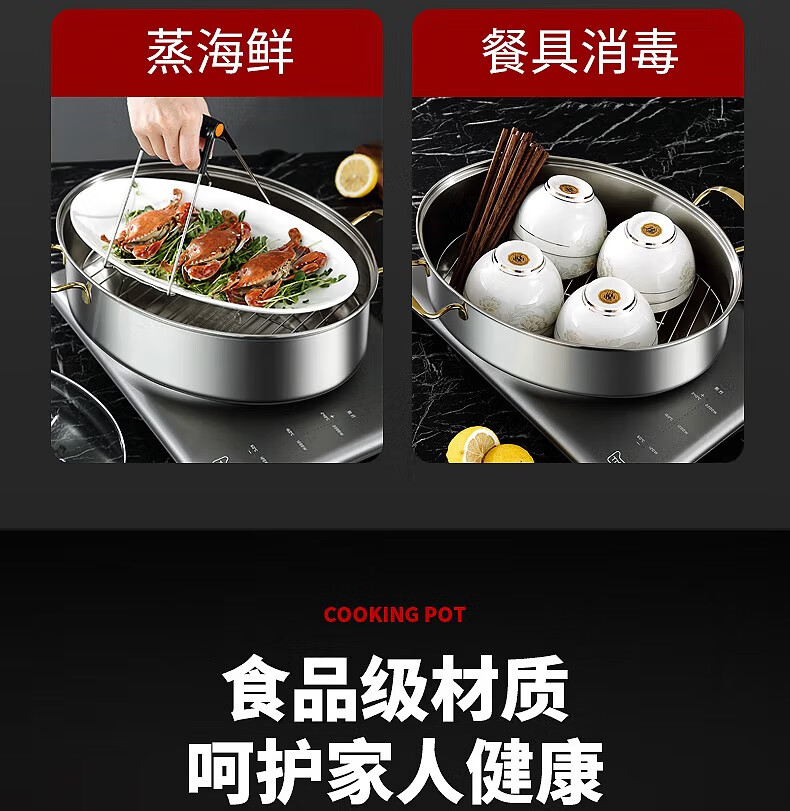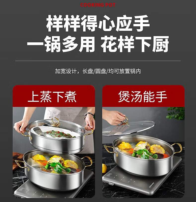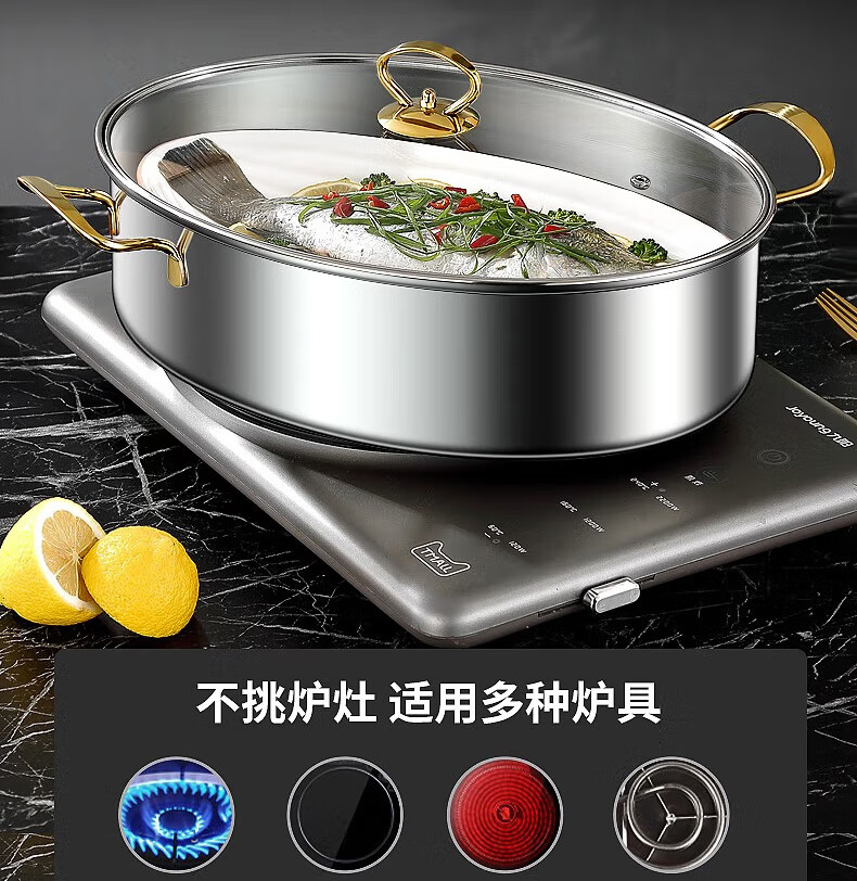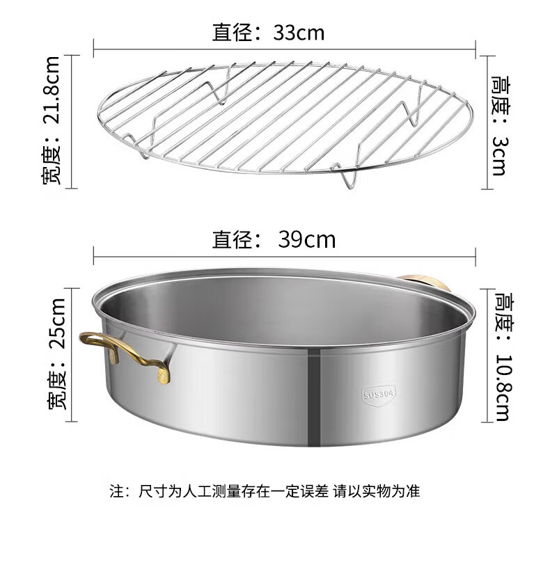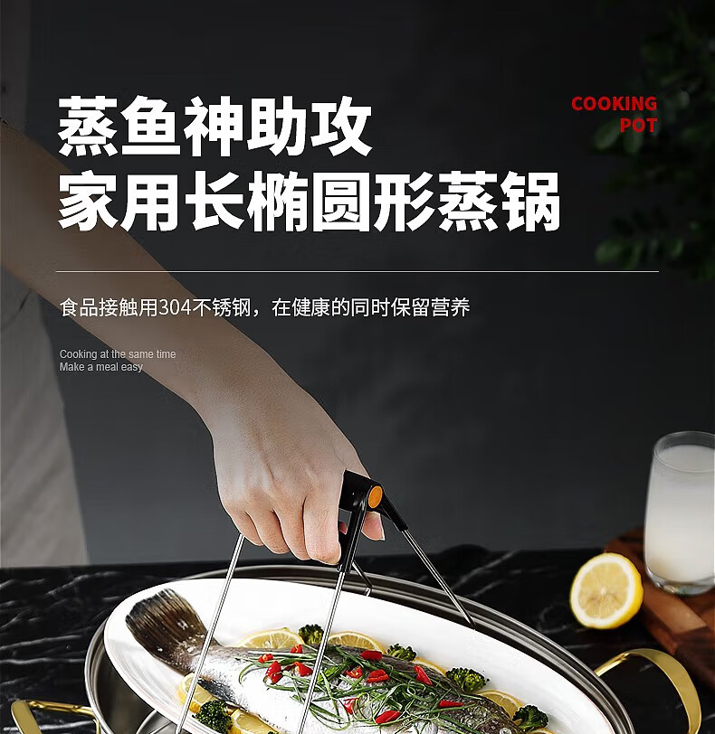 Baijie fish steamer oval steamer large-capacity steamed fish plate household 304 stainless steel fish steamer steamer artifact enlarged diameter/large capacity 1 layer 39cm