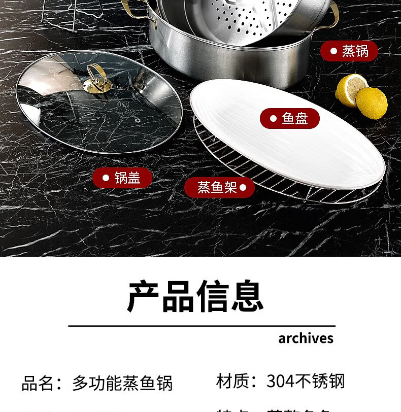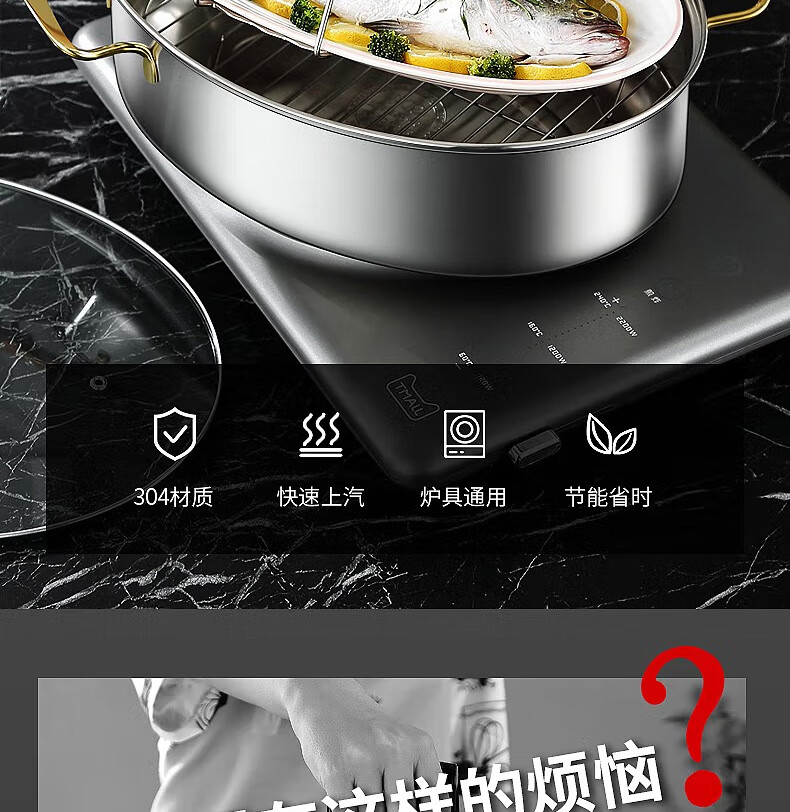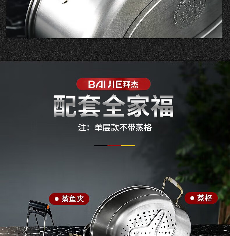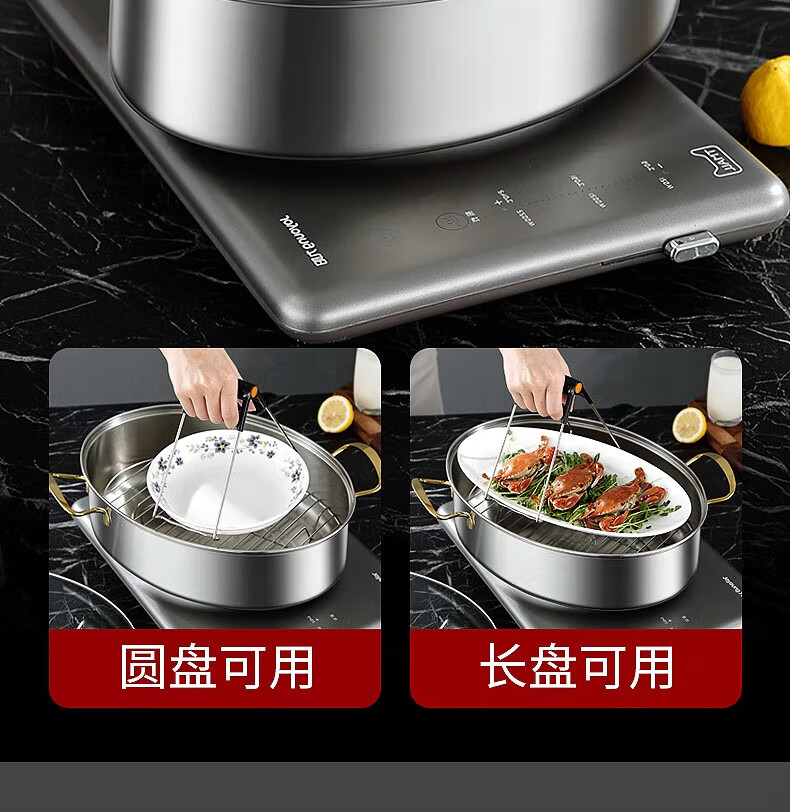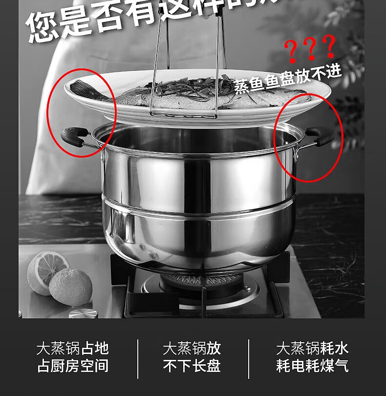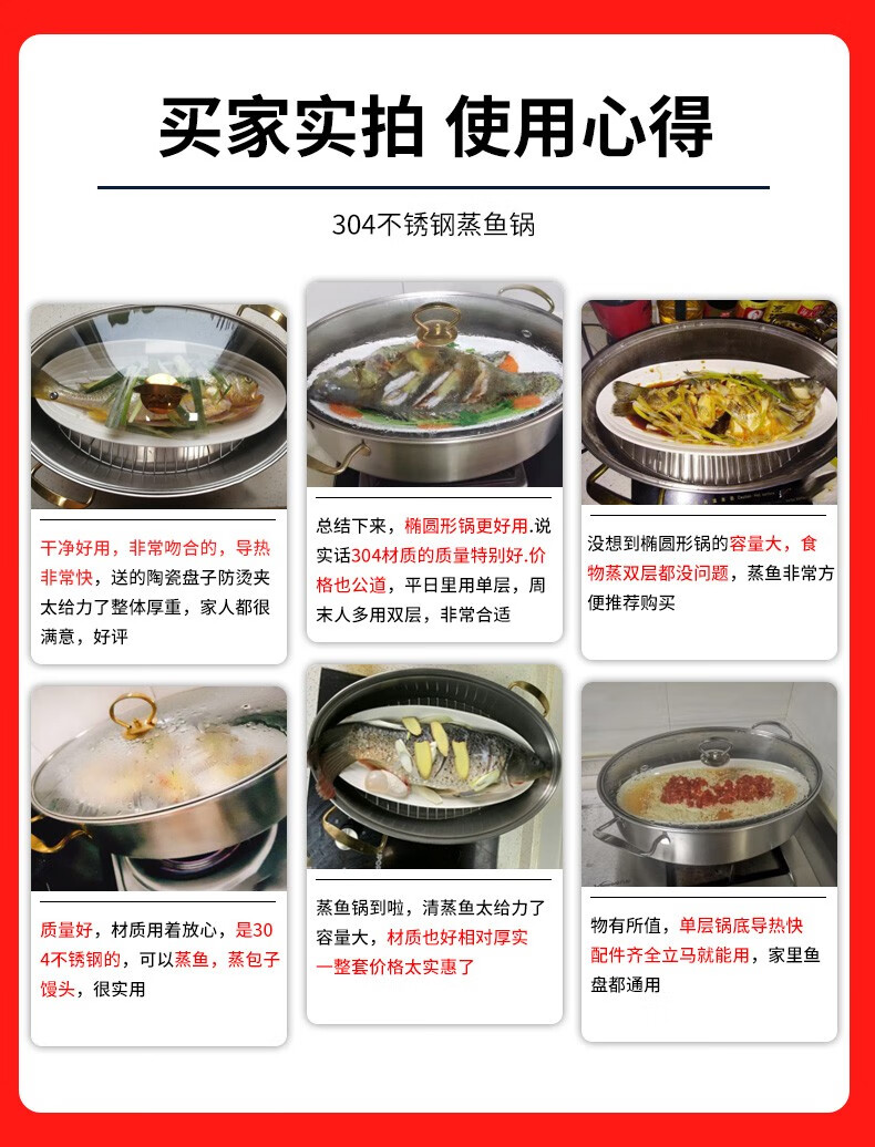 Baijie fish steamer oval steamer large-capacity steamed fish plate household 304 stainless steel fish steamer steamer artifact enlarged diameter/large capacity 1 layer 39cm