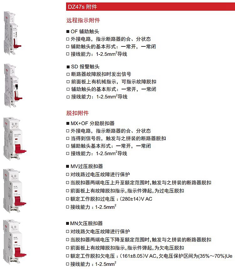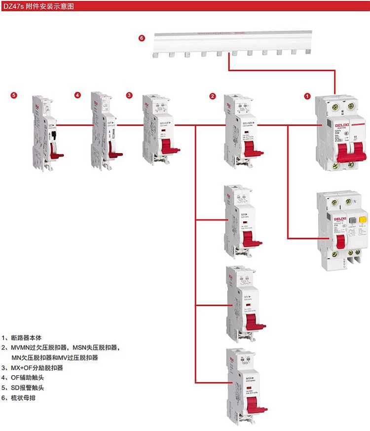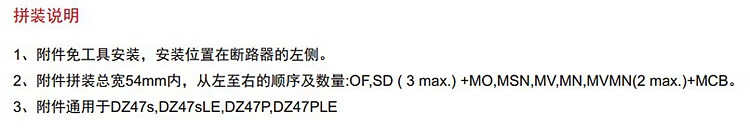 DZ47s accessories shunt + auxiliary MX + OF over and under voltage MV release MN alarm SD voltage loss DZ47SMO220 (shunt auxiliary AC110-415V