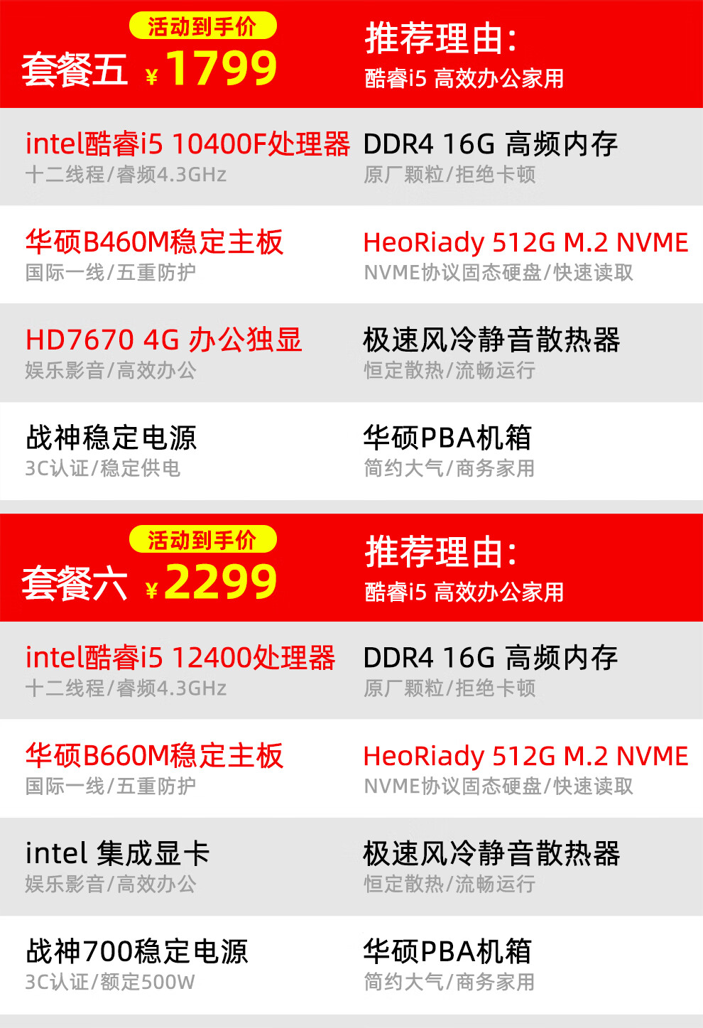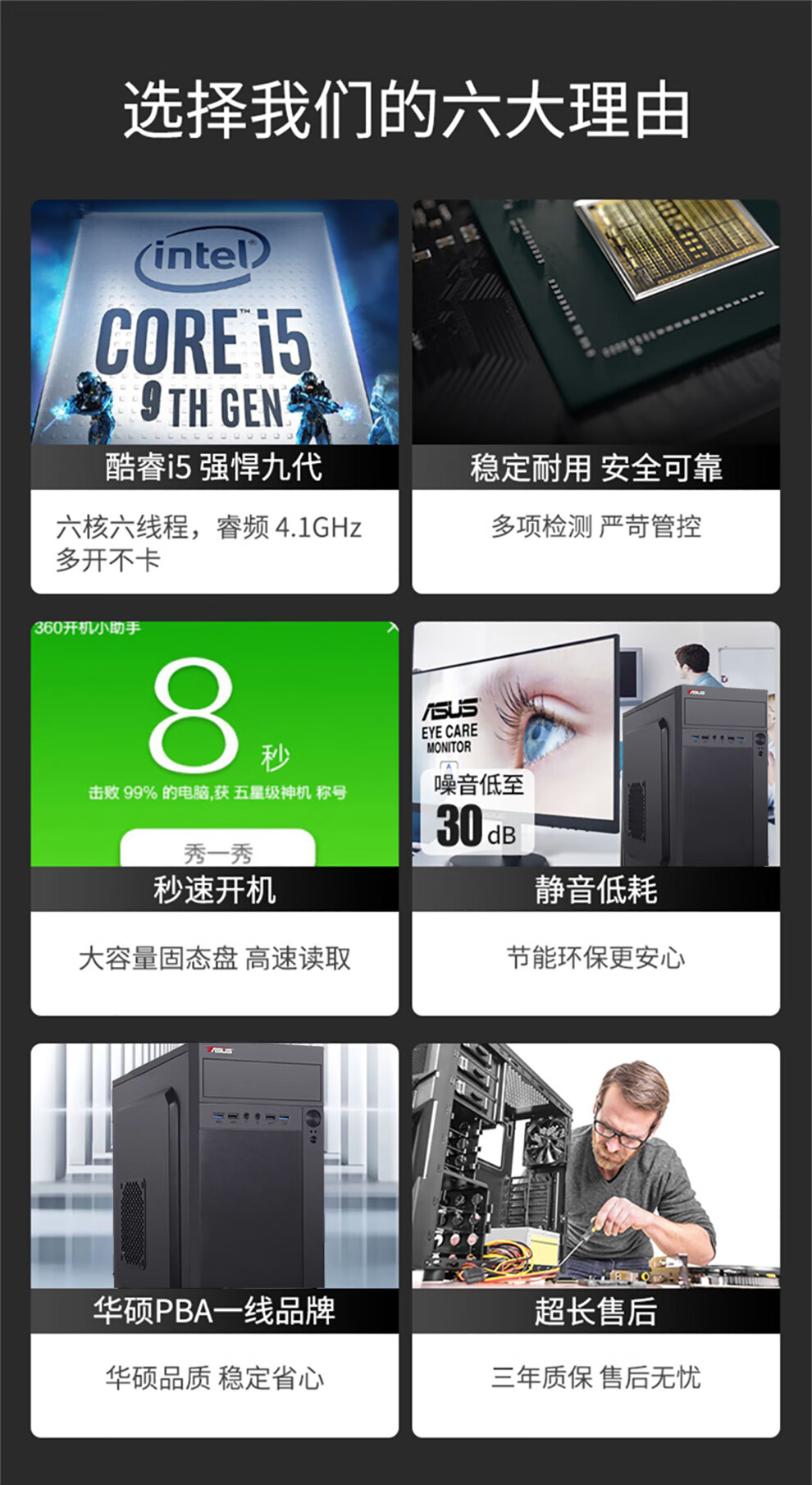 Hack ASUS i5 9400F/14400/12400 Enterprise Customer Service Office Home RTX3050 6G Designer Game Brand Desktop DIY Assembly Computer Assembly Desktop I5 9400F/16G/Independent Display 4G Office