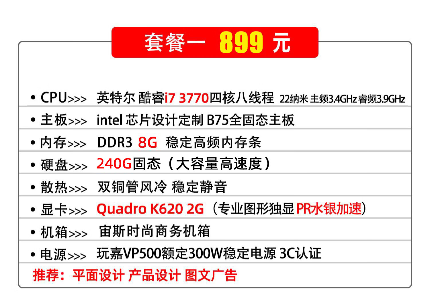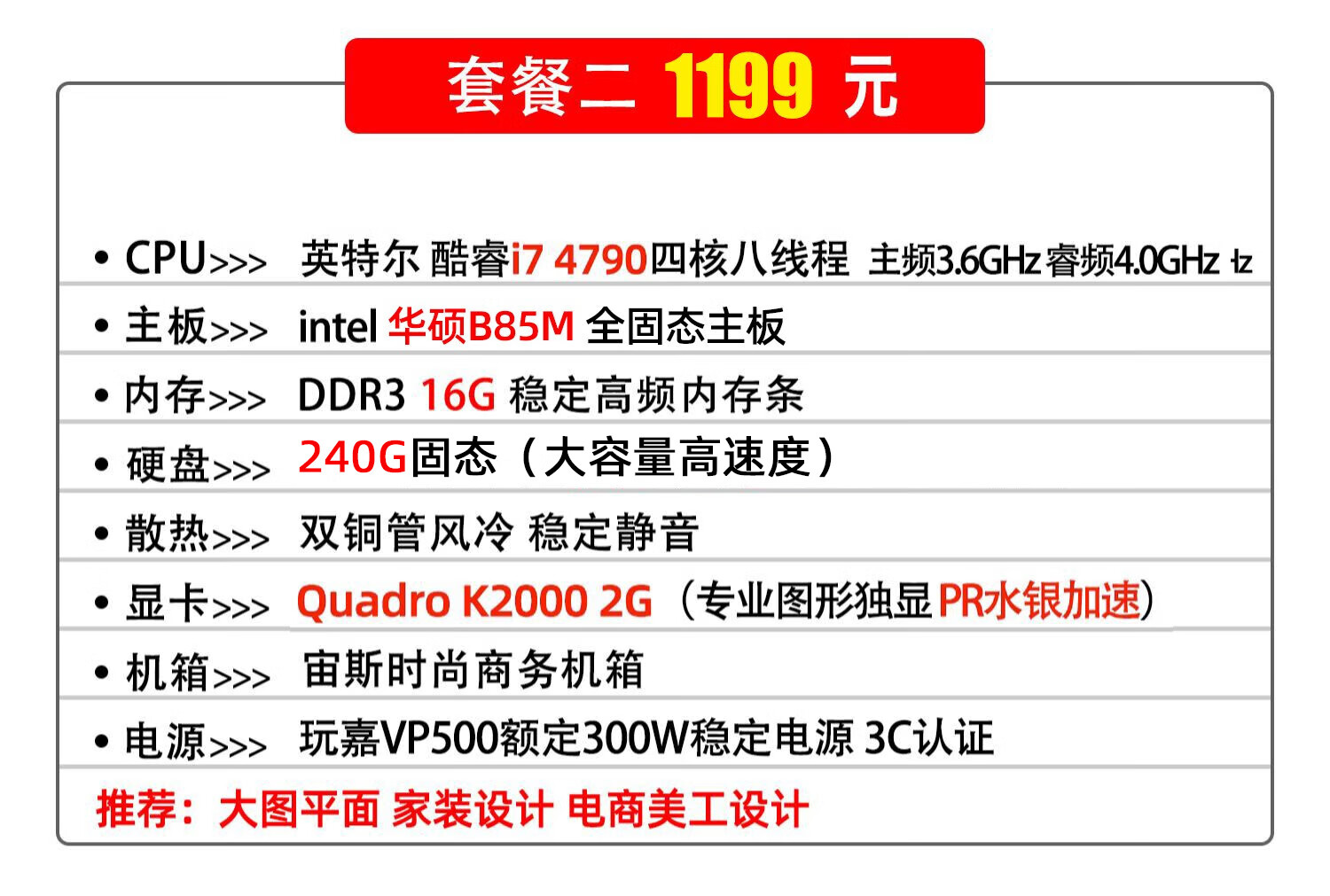 Hack designer computer host dedicated graphics workstation i7 13700F/12700F/art drawing UG modeling 3D rendering video editing flat PS desktop assembly machine i7 6700/16G/k2000 2G home design