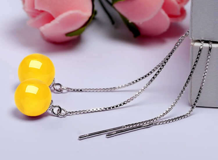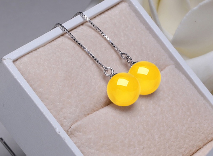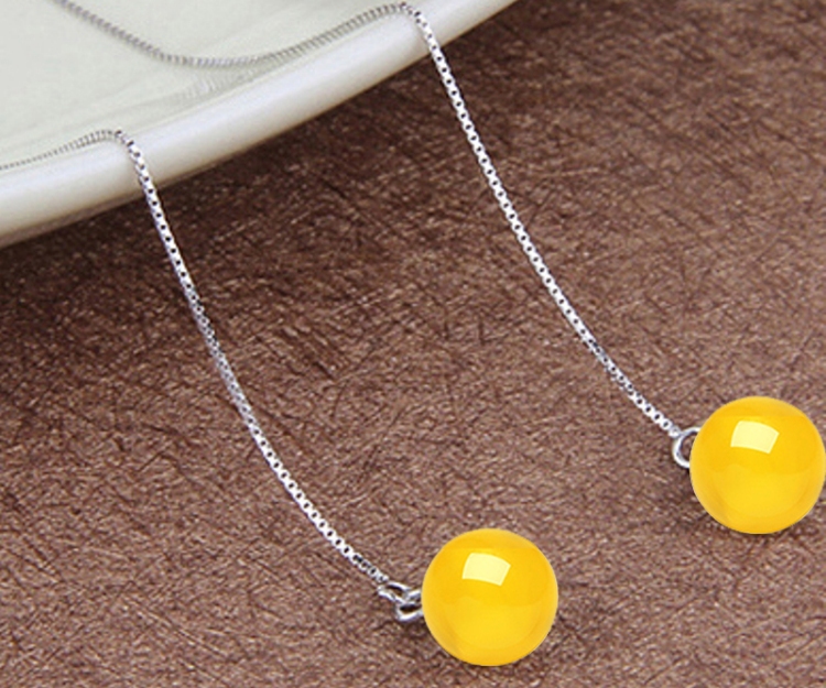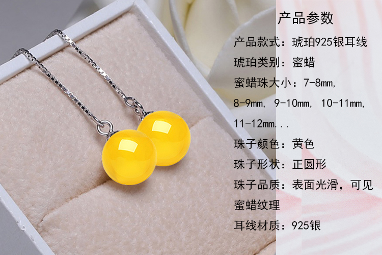 Nanzhu Family Drops of water form beads, amber earrings, 925 silver beeswax ear wire, exquisite earrings for mother and wife, 7.0-8.0mm beeswax