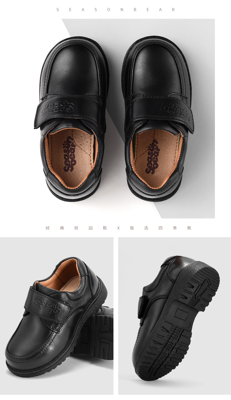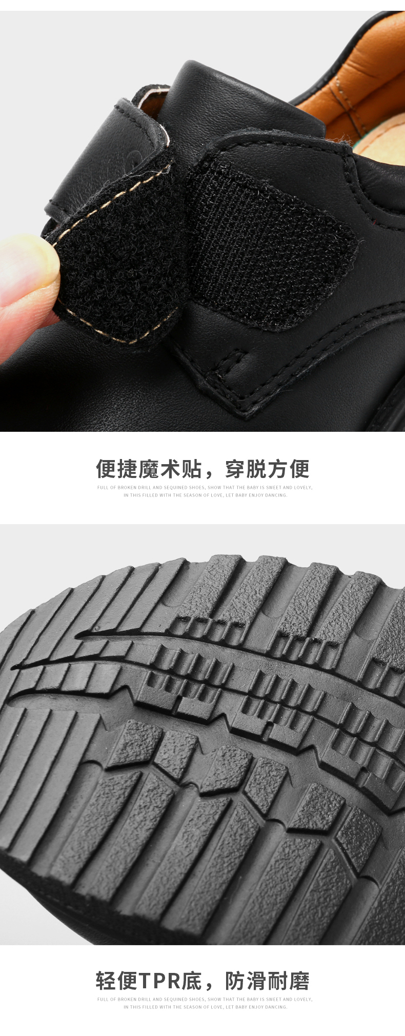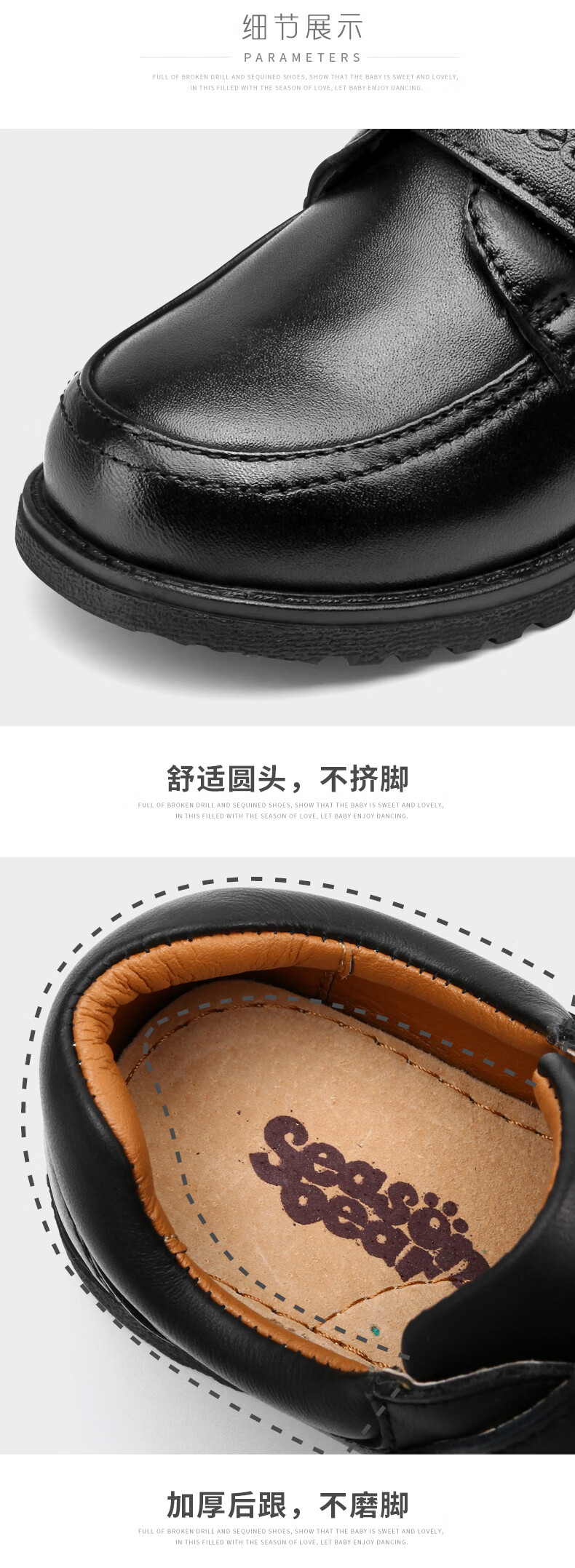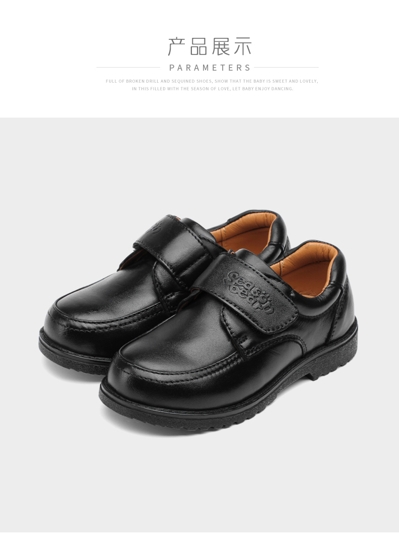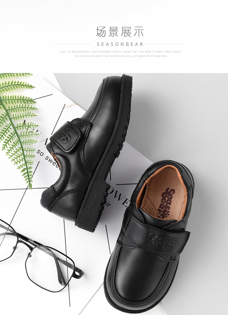SEASONBEAR boys' leather shoes, cow head layer genuine leather children's shoes, spring and autumn new black student performance shoes, large children's single shoes 6294 black 35 inner length 22.5cm