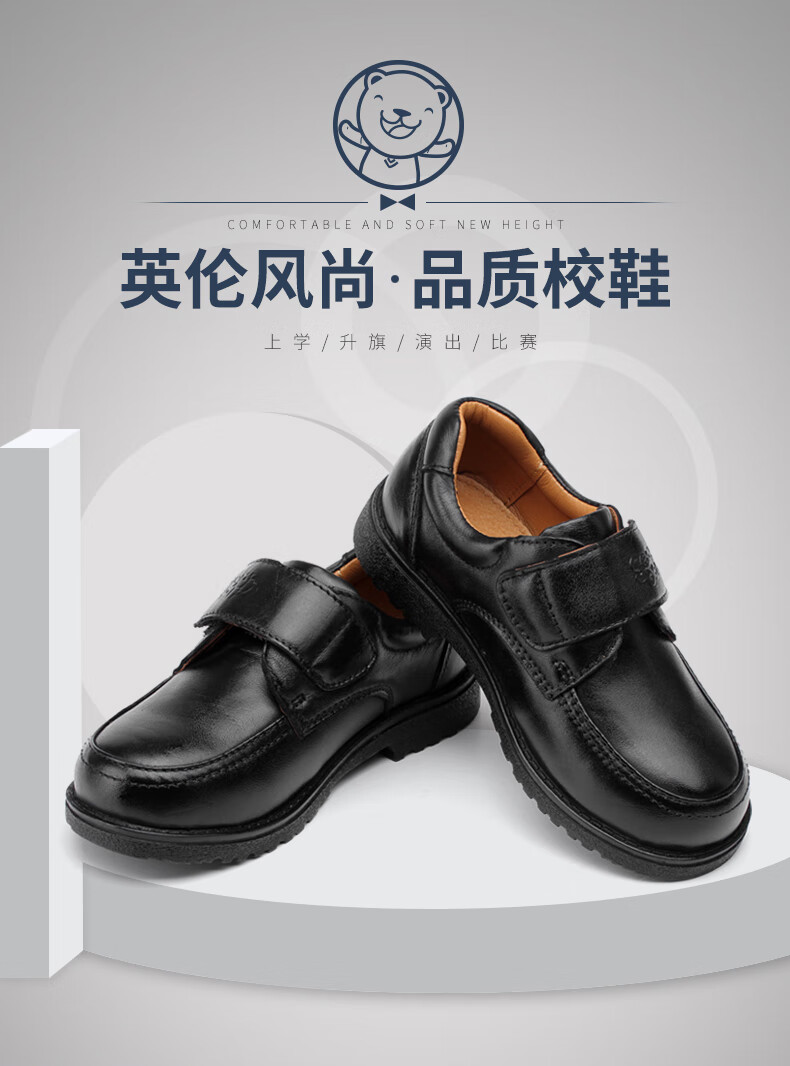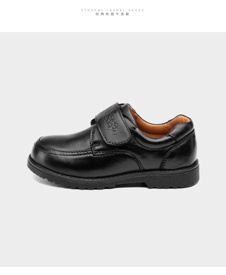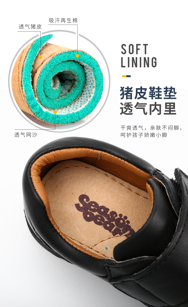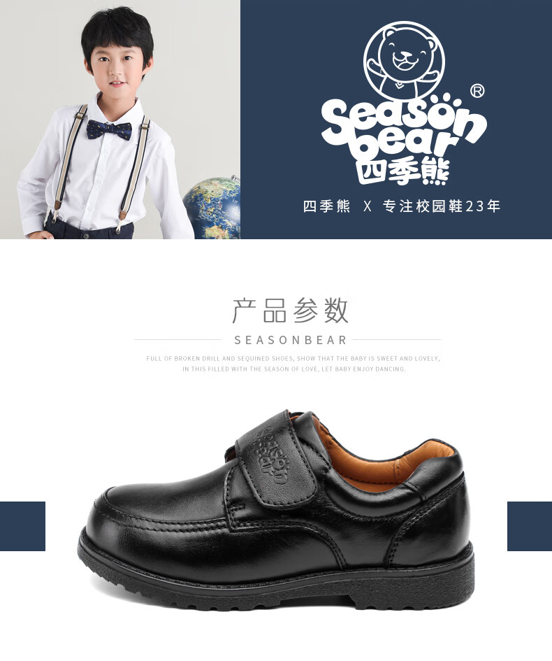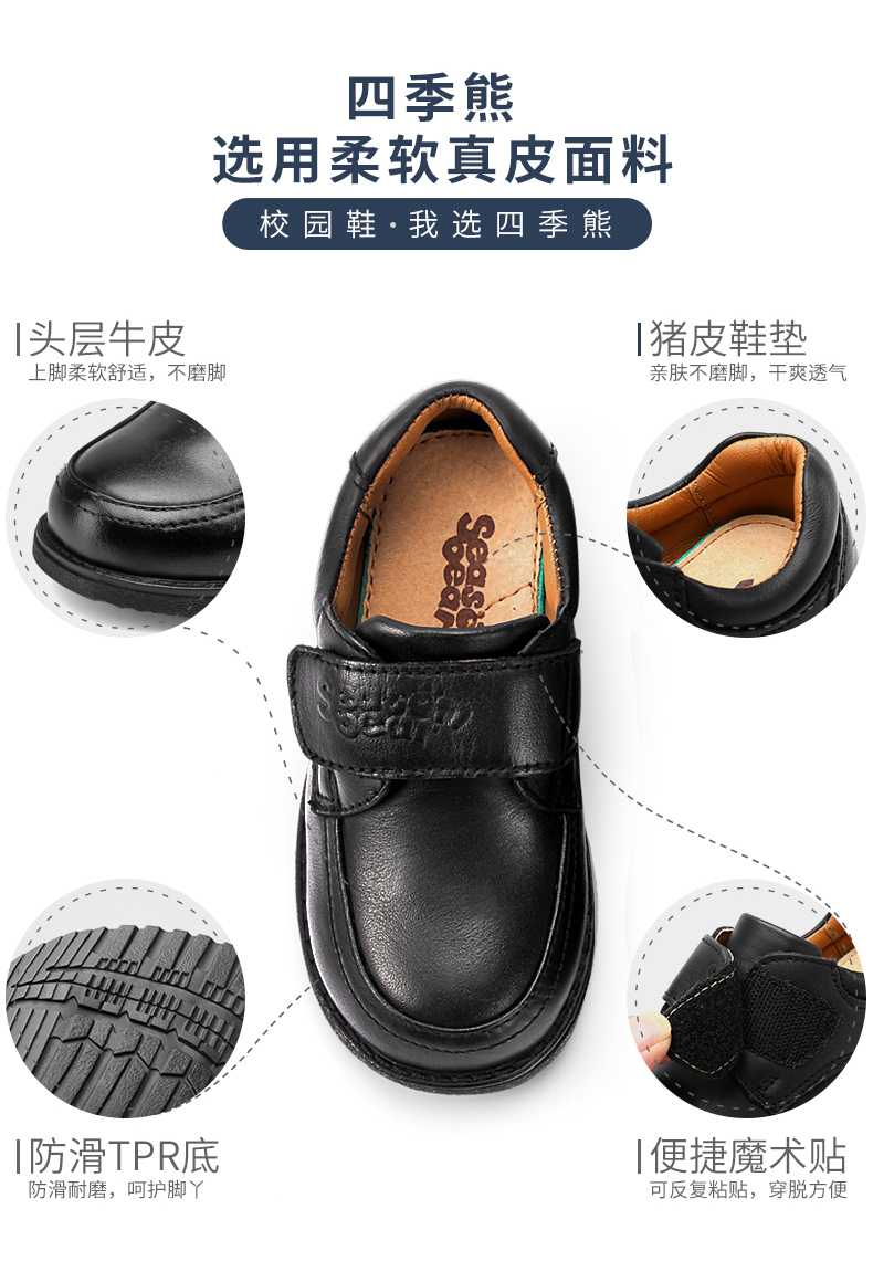 SEASONBEAR boys' leather shoes, cow head layer genuine leather children's shoes, spring and autumn new black student performance shoes, large children's single shoes 6294 black 35 inner length 22.5cm