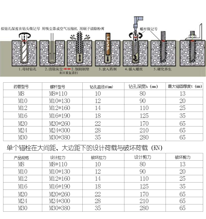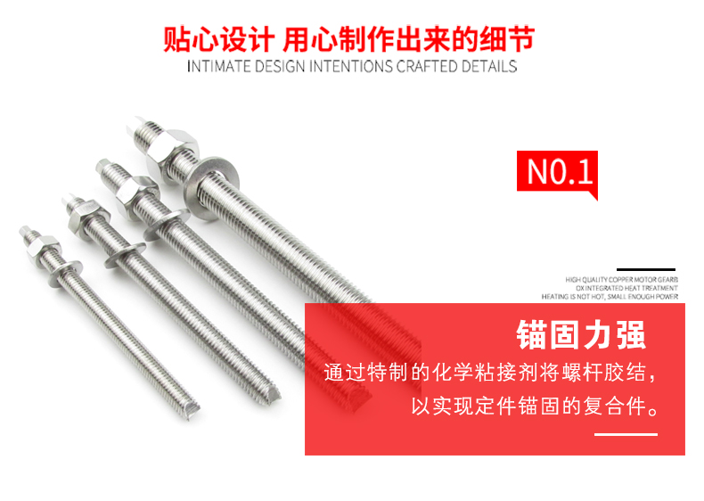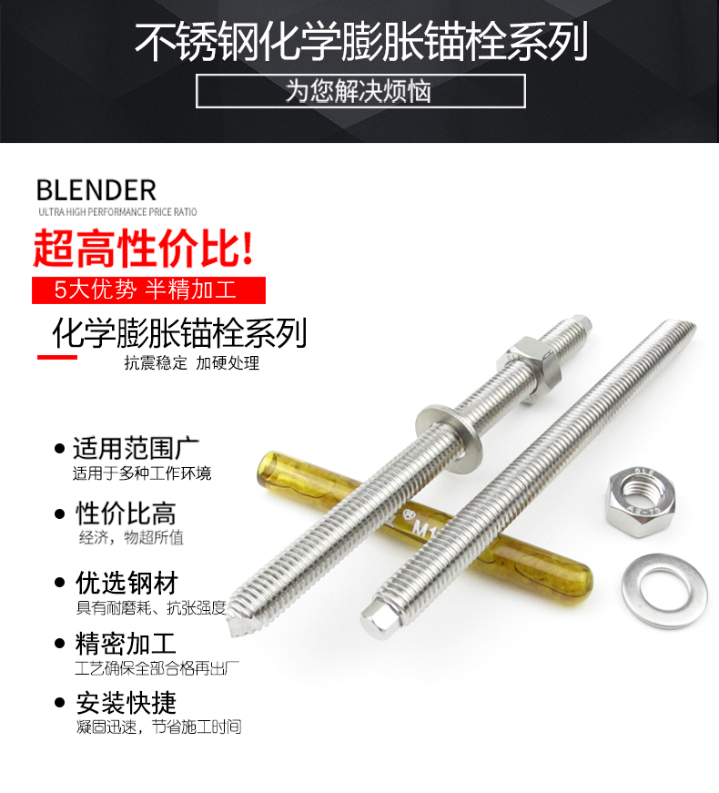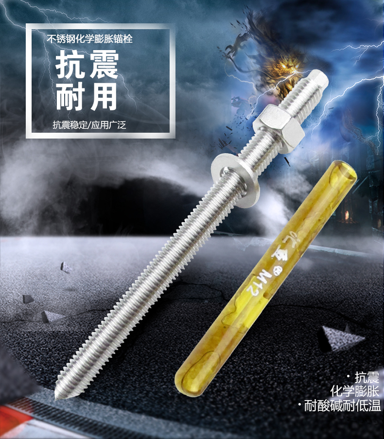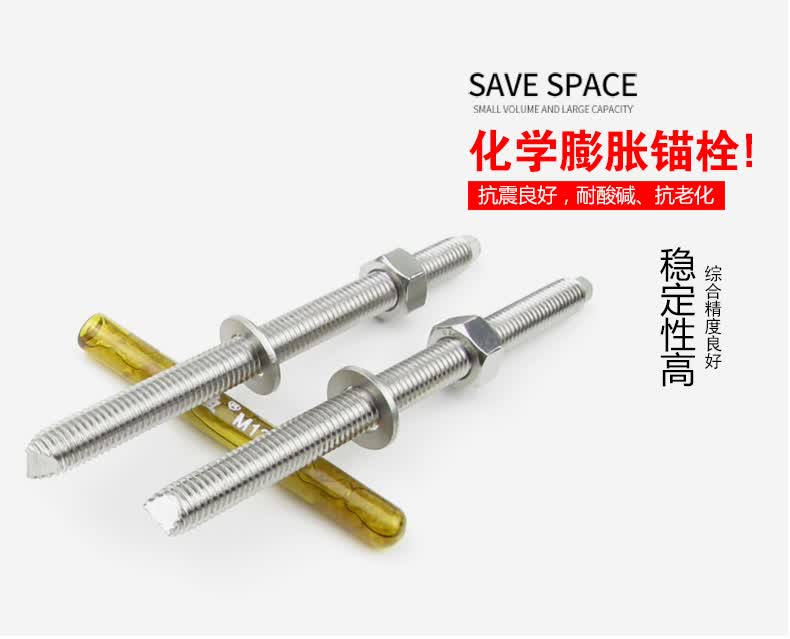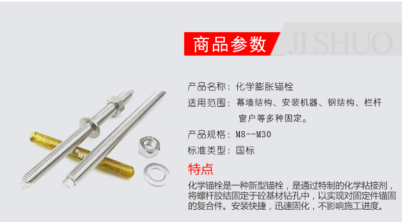 Jishuo 304 stainless steel chemical anchor bolt chemical expansion chemical bolt screw 304 M24*300 1 complete set