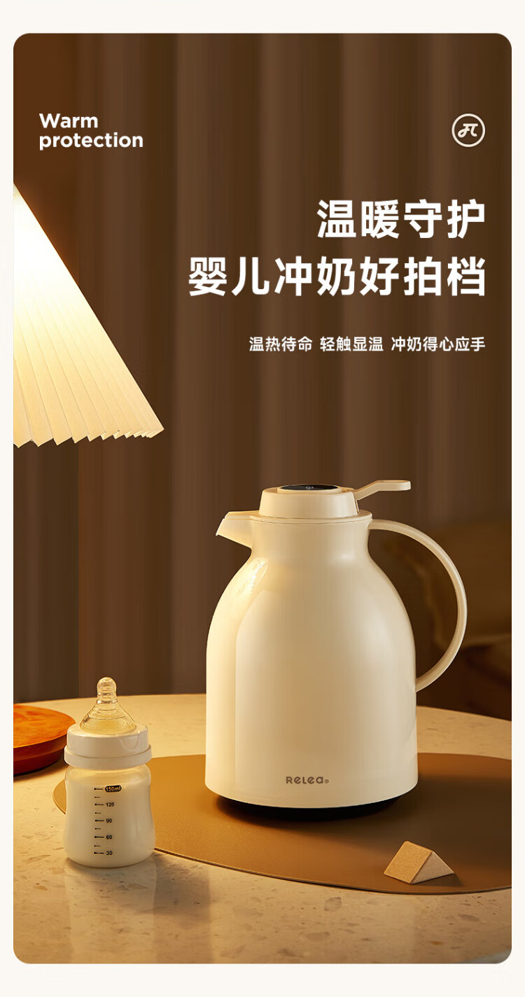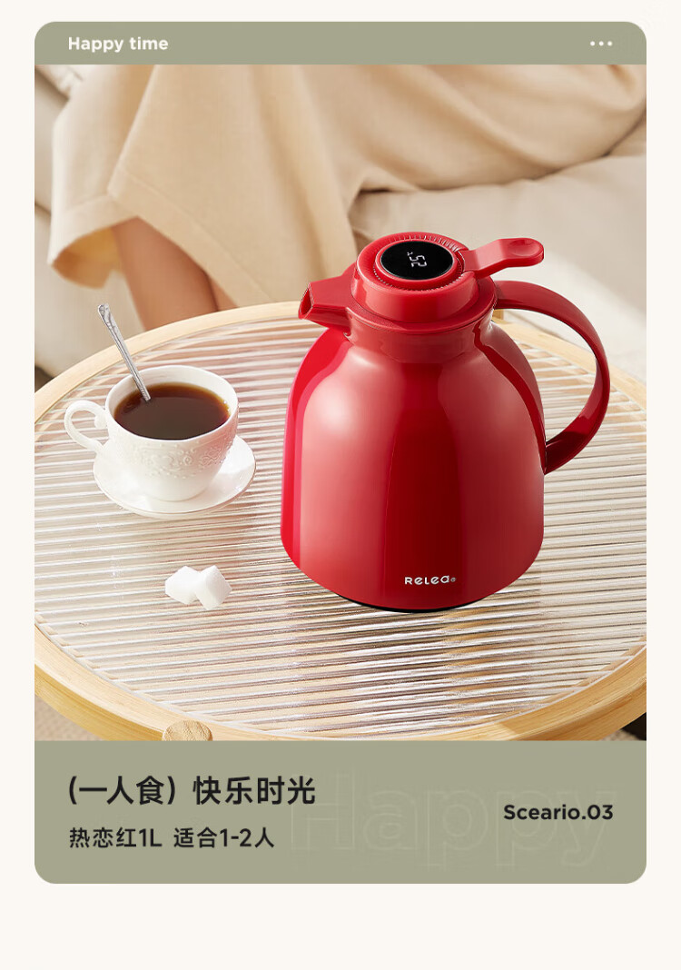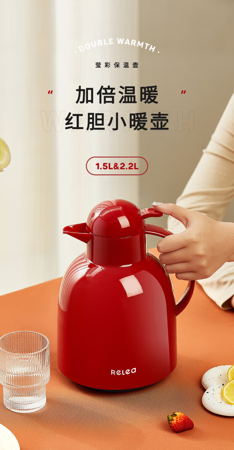 RELEA thermos kettle household large-capacity hot water kettle digital display hot water bottle boiling water bottle thermos water bottle enterprise group purchase customization hot love red new upgrade 1.5L