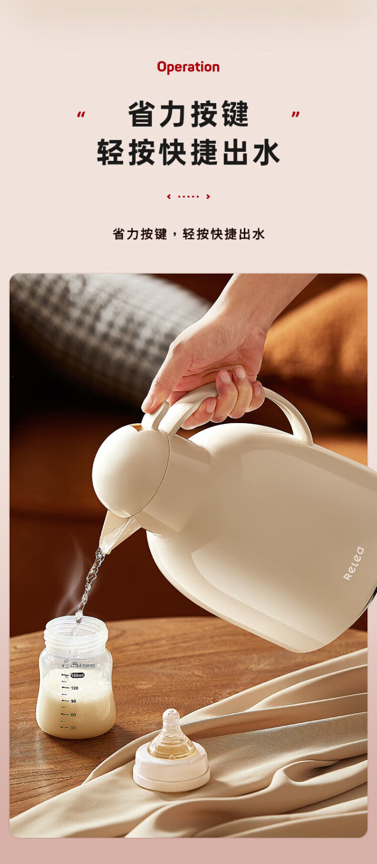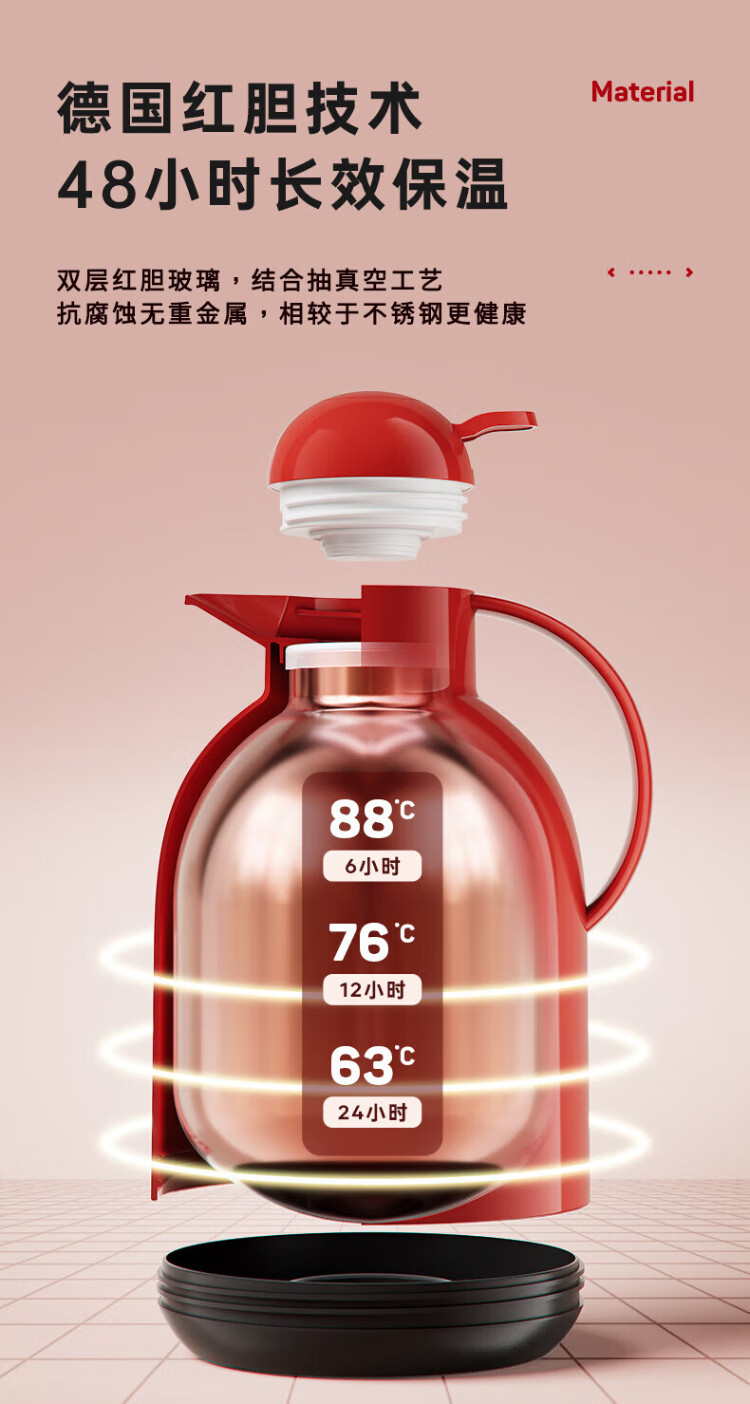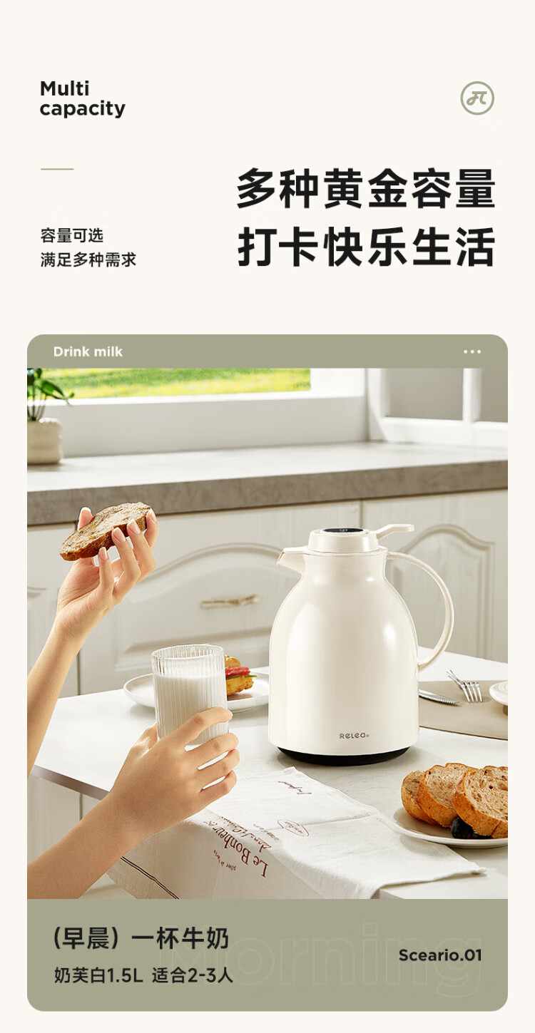 RELEA thermos kettle household large-capacity hot water kettle digital display hot water bottle boiling water bottle thermos water bottle enterprise group purchase customization hot love red new upgrade 1.5L