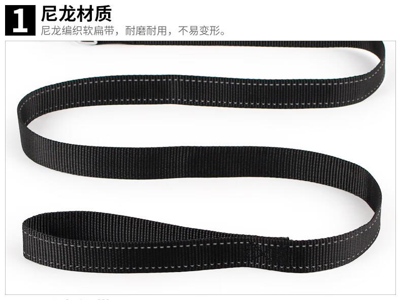 Duoqu reflective silk single flat belt dog leash, dog walking rope, dog leash, pet leash, dog leash, black 2.5*120cm