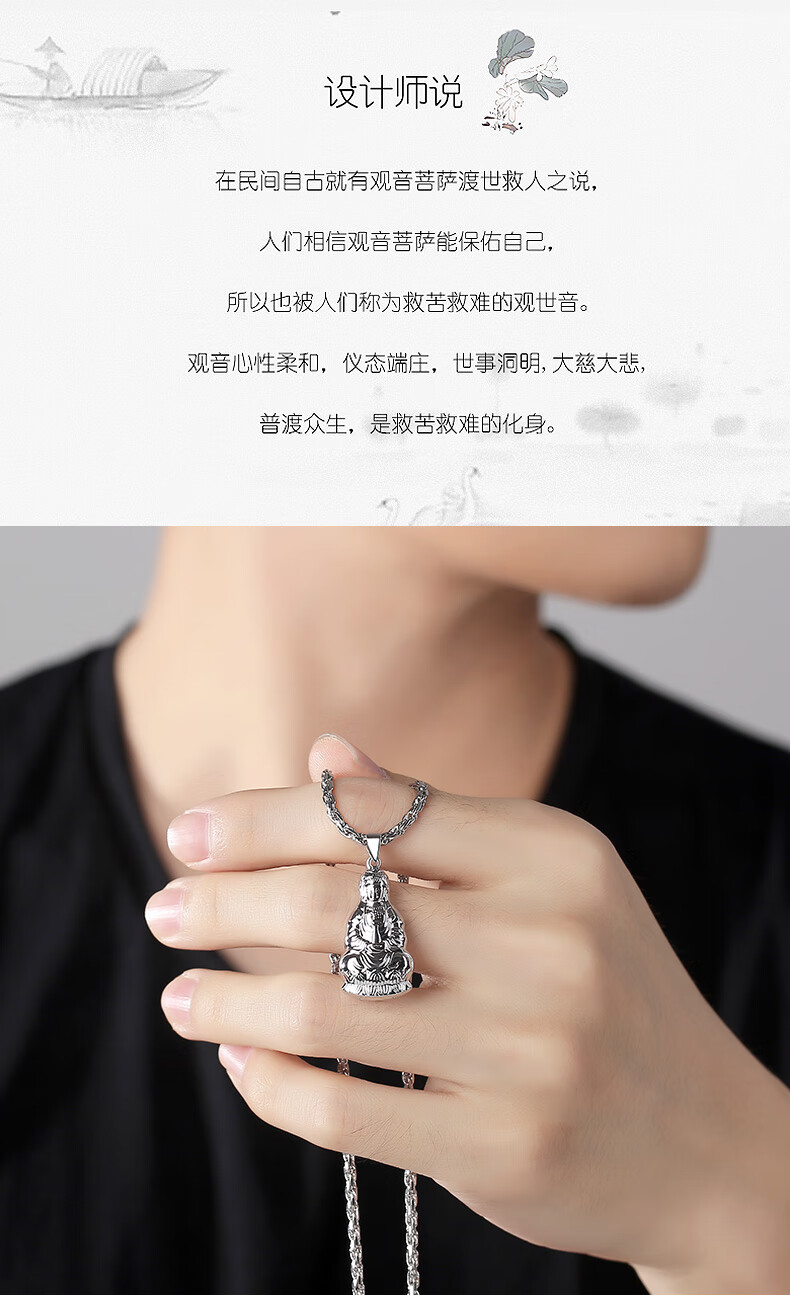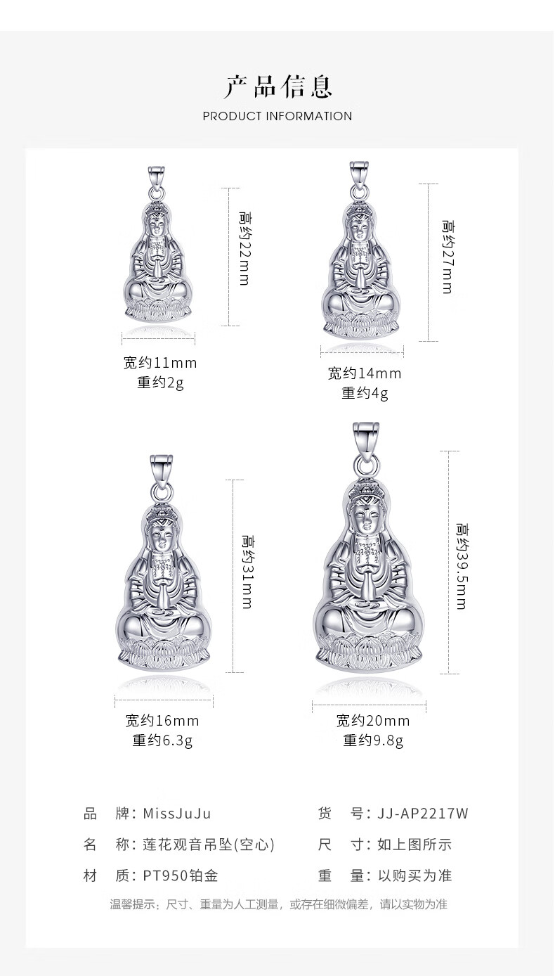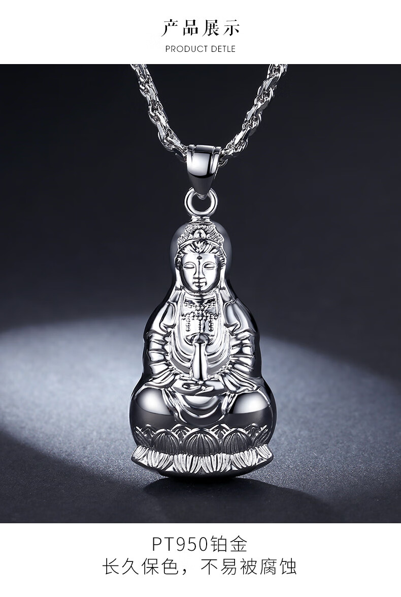 Miss JuJu pt950 platinum Guanyin pendant for men, platinum large tag, Guanyin Bodhisattva pendant for women, necklace not included, pendant height 31mm, width 16mm, weight 5.3-5.5g