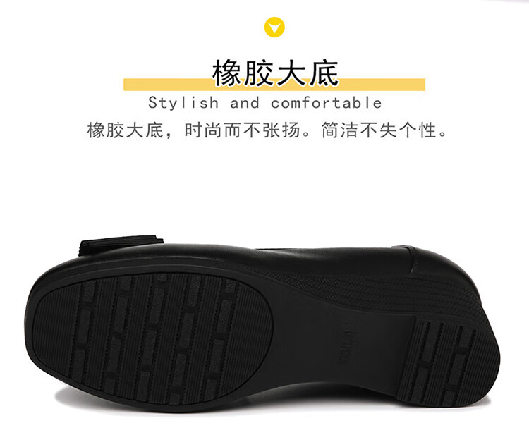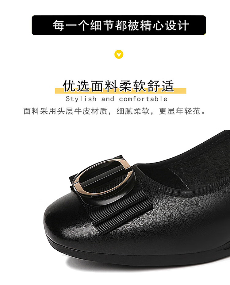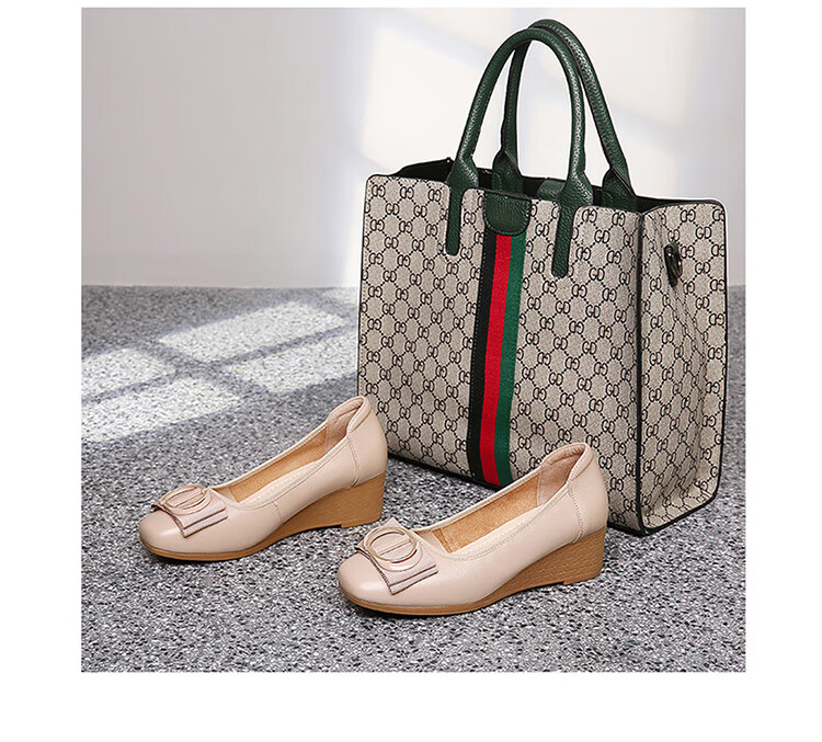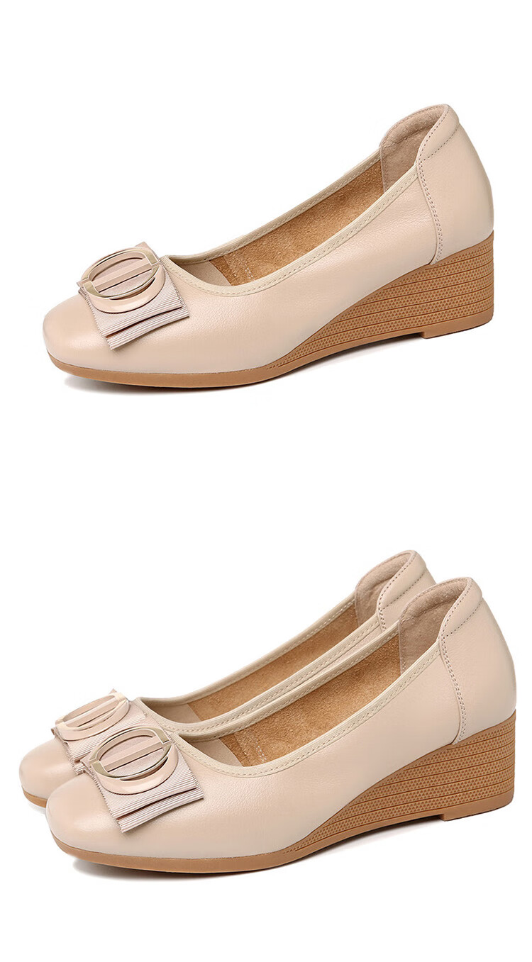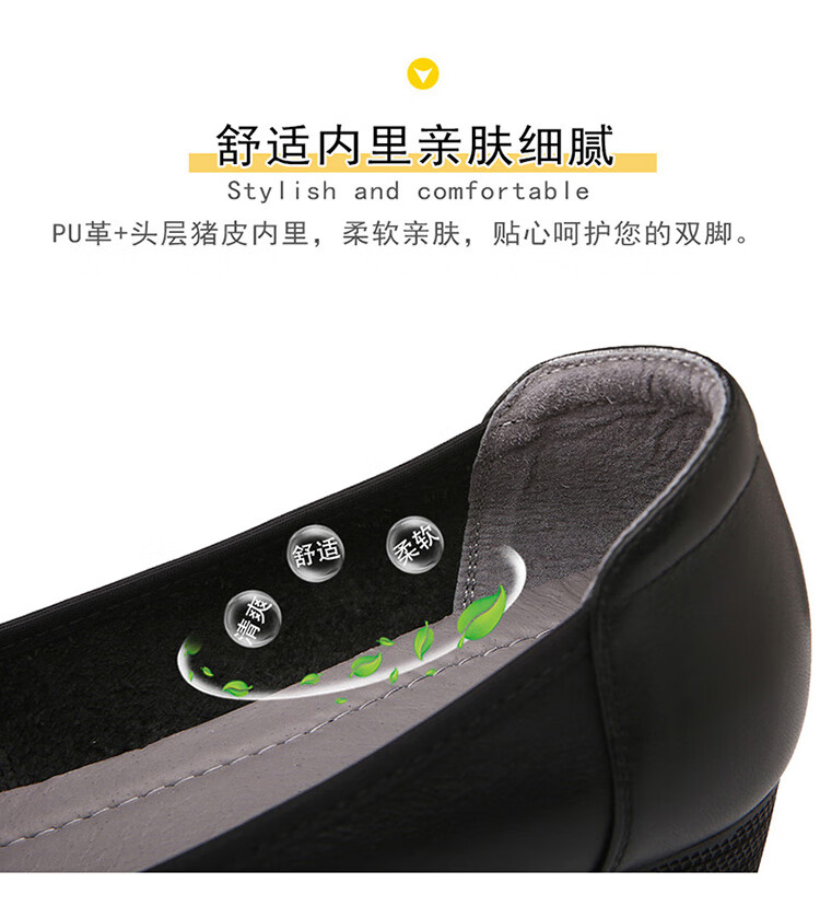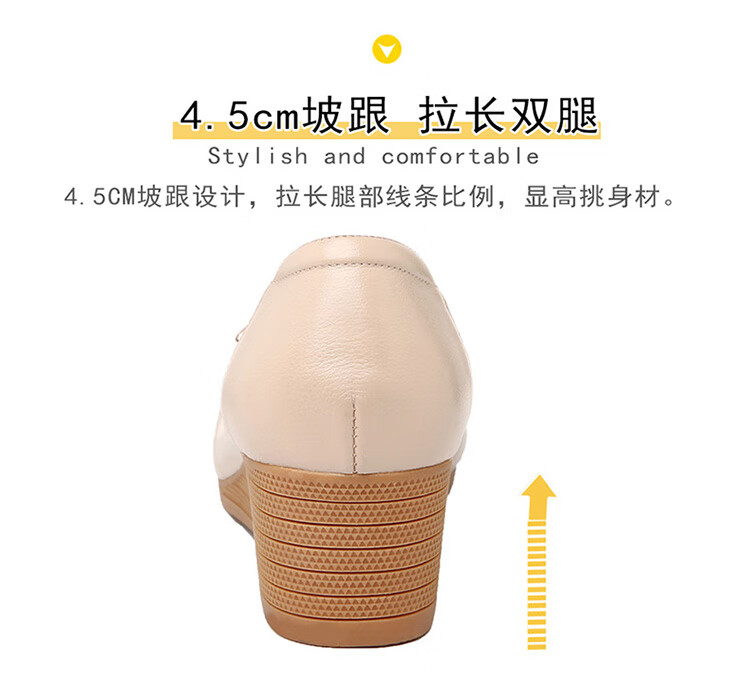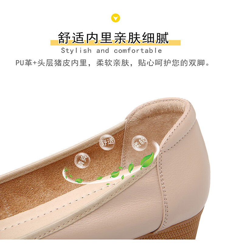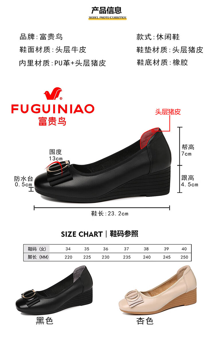 Fuguiniao first-layer cowhide single shoes for women 2024 spring new wedge heel women's shoes thick heel mom and grandma shoes soft sole soft leather shoes black 36
