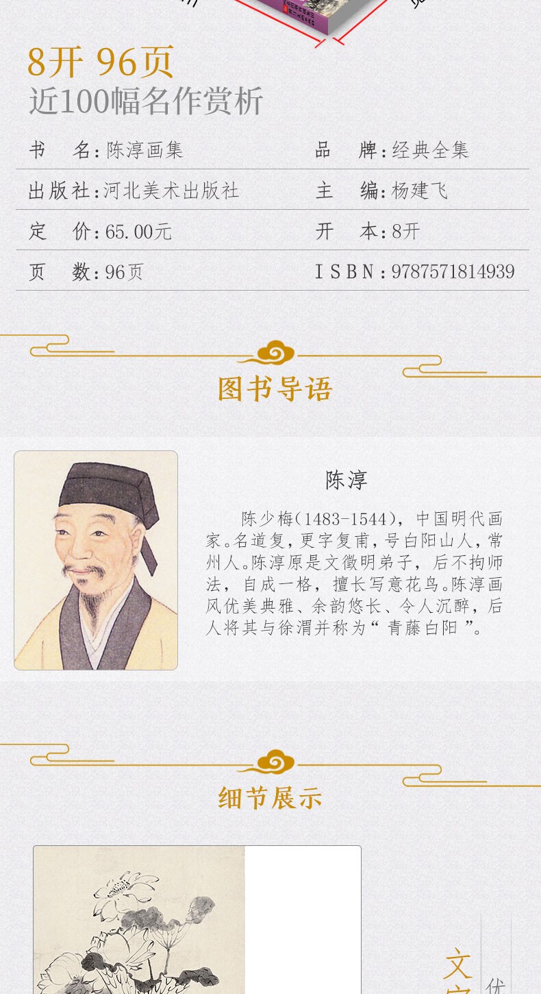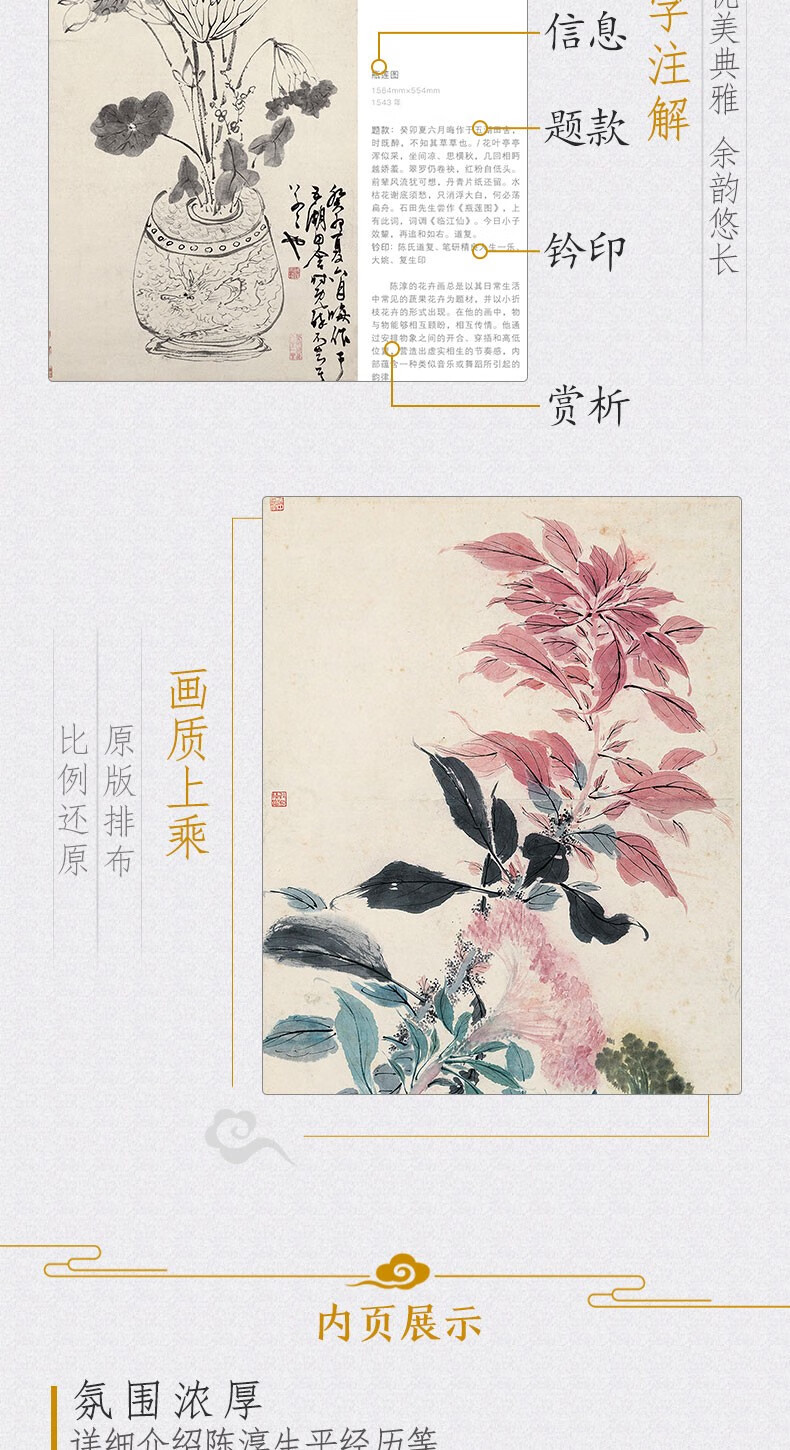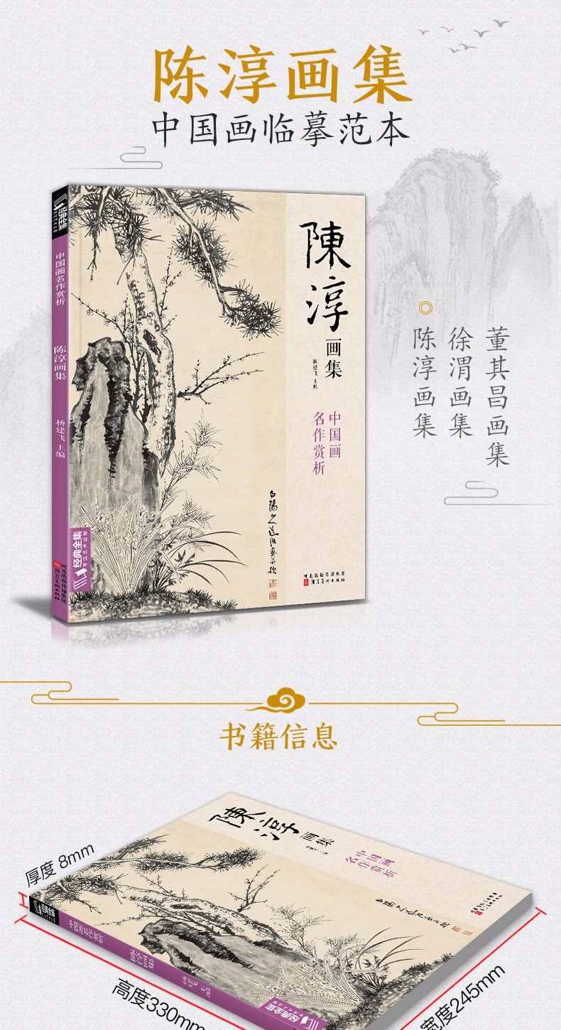 Complete collection of classics, Chen Chun's painting collection, 8-page Chinese painting copy album, freehand ink and wash traditional Chinese painting, flower, bird, fish, insect, landscape, animal technique textbook, high-definition copy album, appreciation of masterpieces of flowers and birds, edited by Yang Jianfei