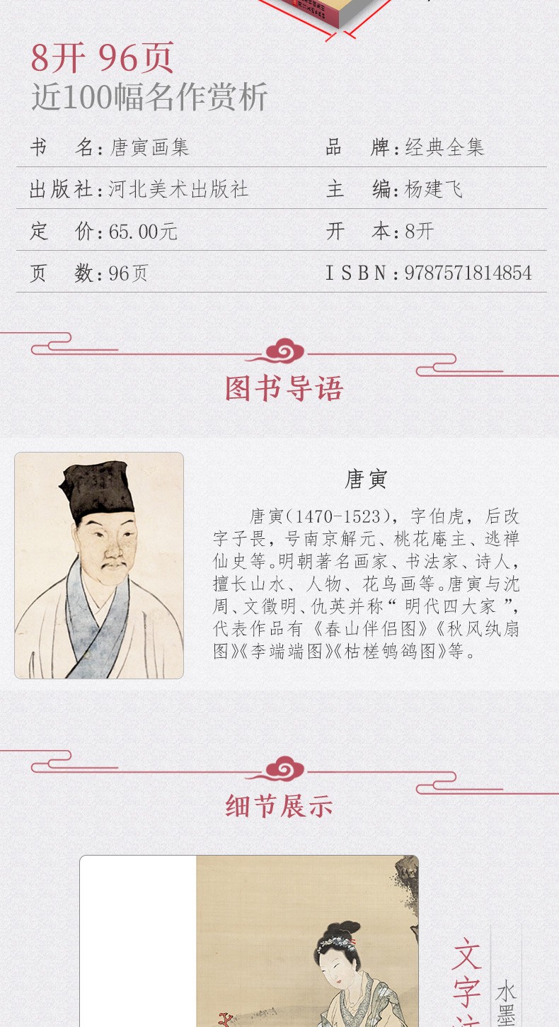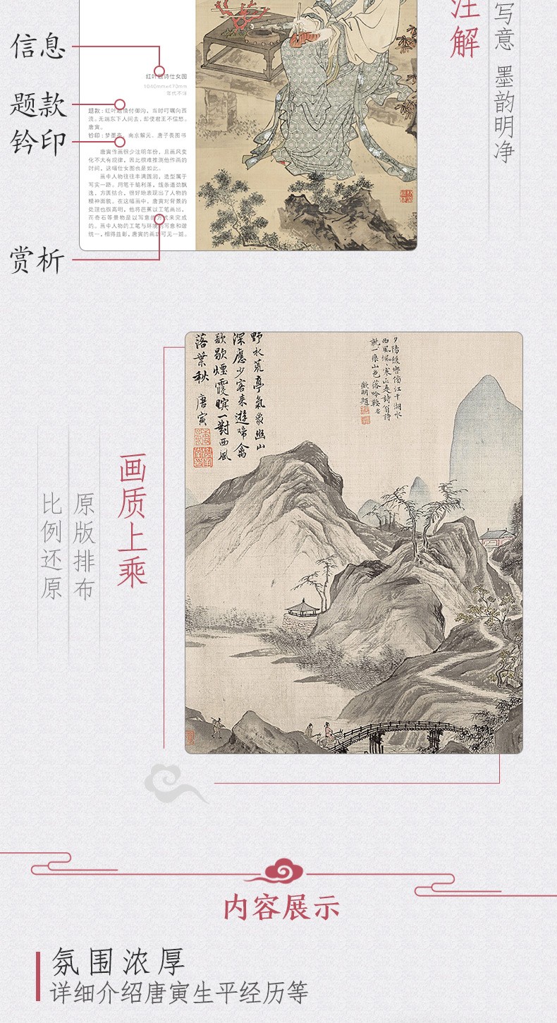 Complete collection of classics, Tang Yin's painting album, 8-page Chinese painting copy album, freehand ink Chinese painting, flowers, birds, landscapes, figures, technique textbook, high-definition copy album page, appreciation of Tang Bohu's famous works of mountains, stones and trees, edited by Yang Jianfei