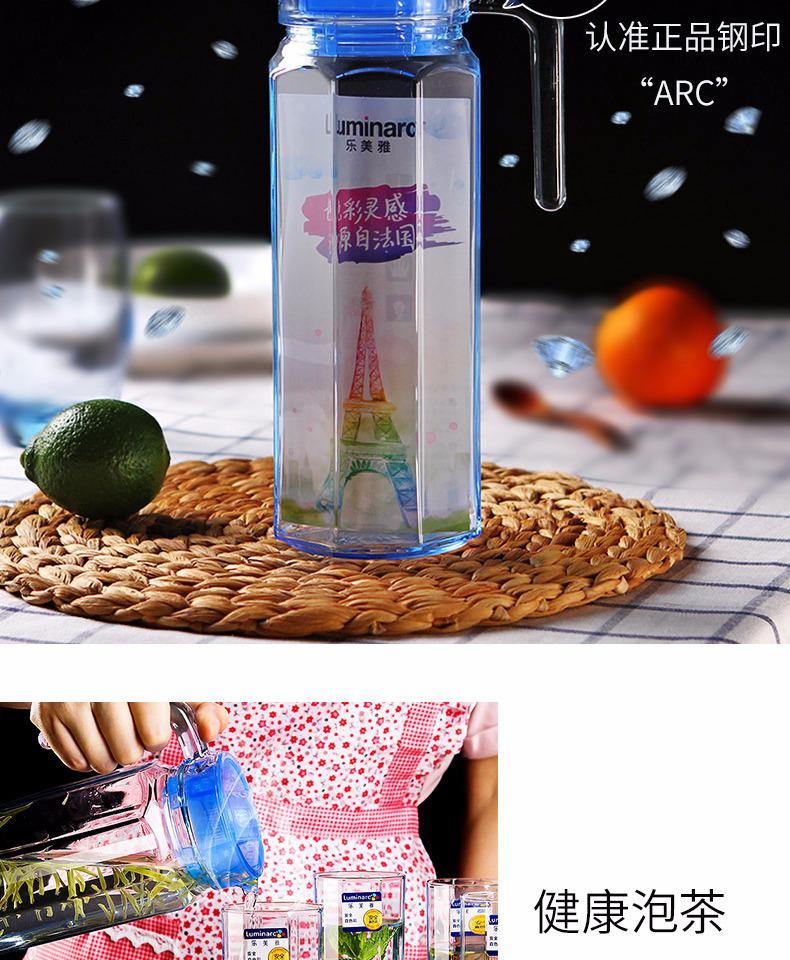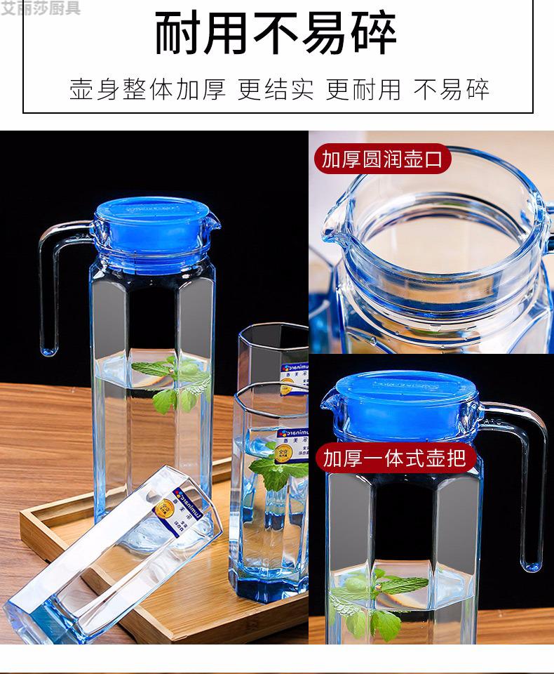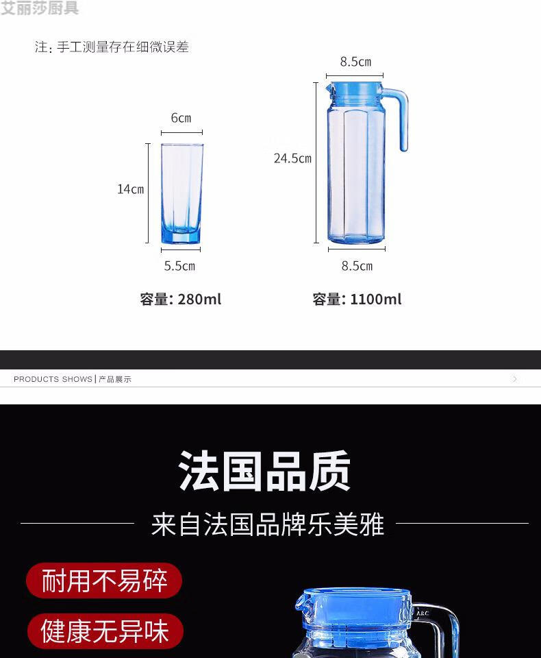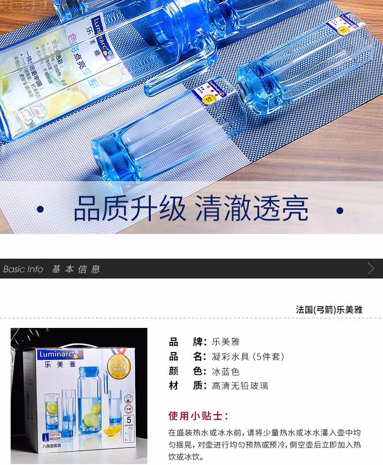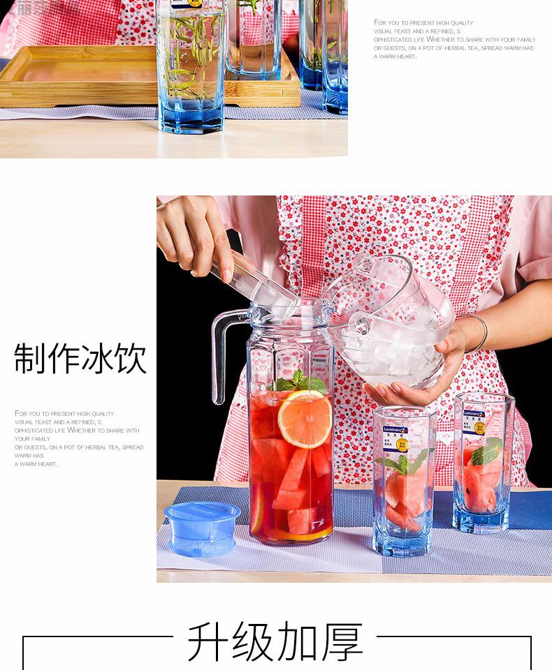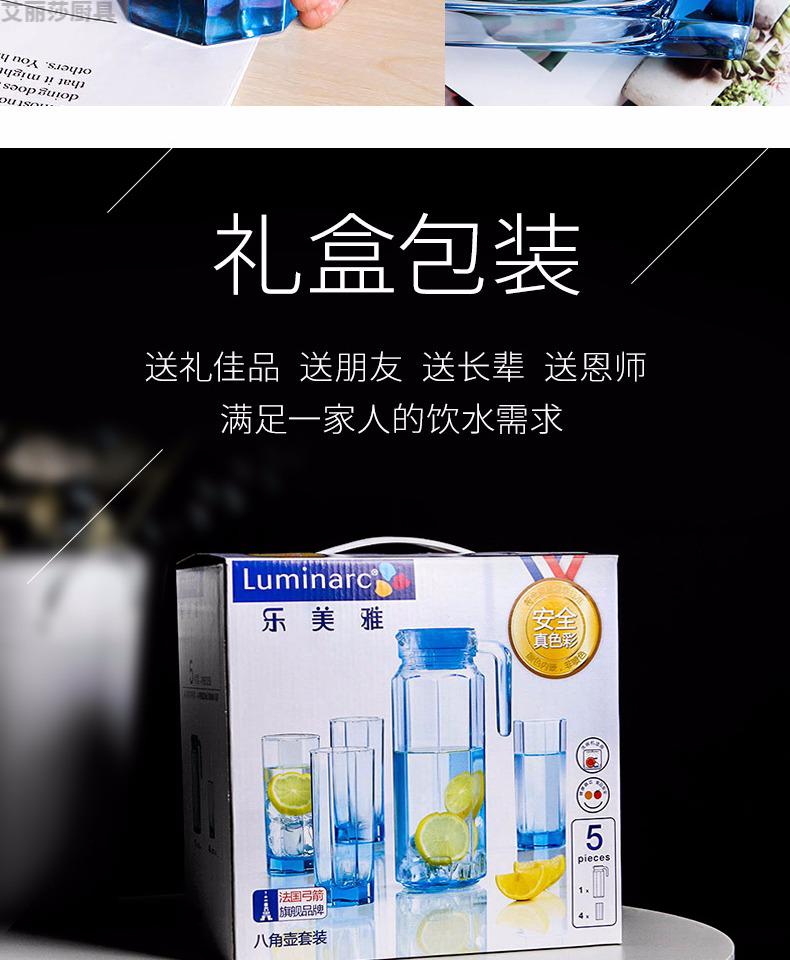 French Lemeiya glass cup, hot water resistant cup, cold kettle set, household tea cup, cold kettle set, high temperature resistant octagonal cup, ice blue octagonal water set, 5-piece set