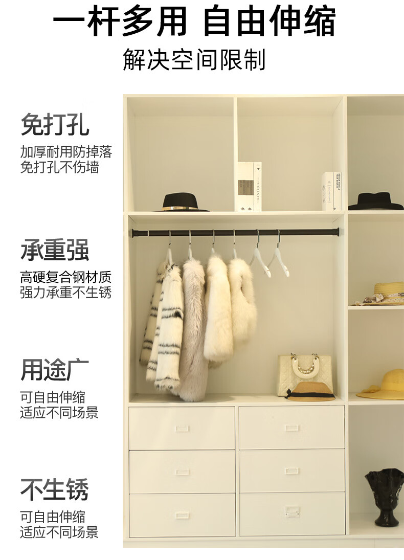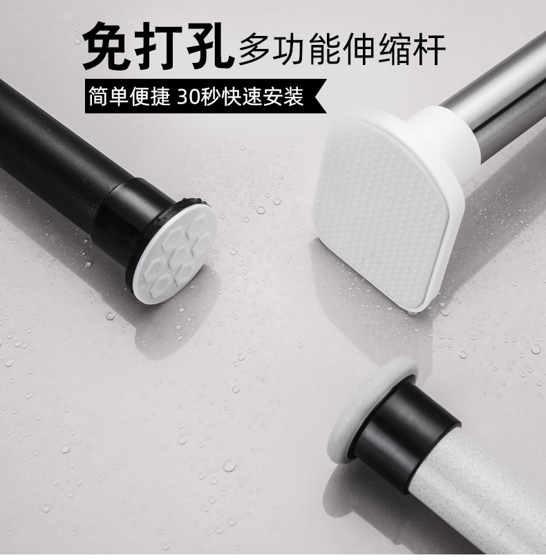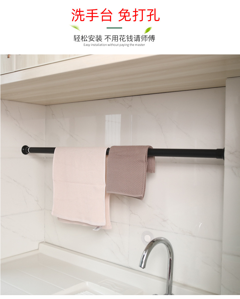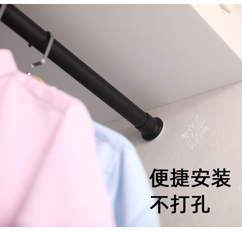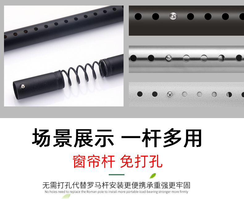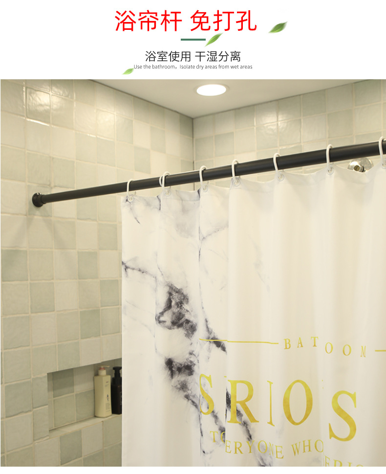 1GSHOP special punch-free installation point buckle telescopic rod for curtains, simple Roman rod for bedroom, kitchen and bathroom, modern matte black, 32 diameter, 1.6-2.1 meters