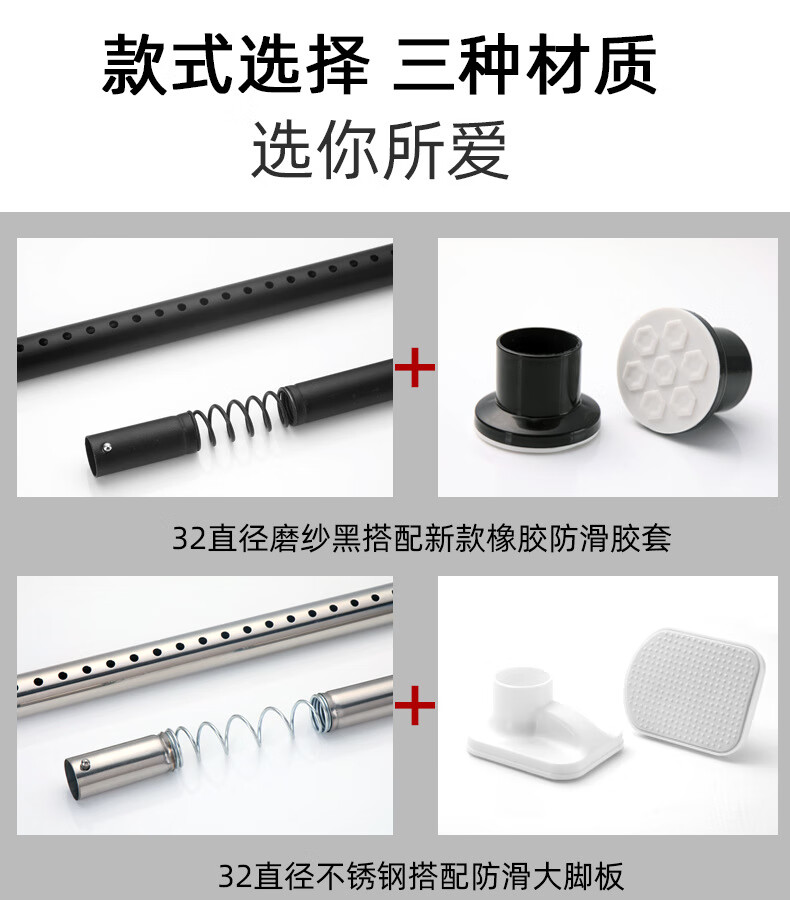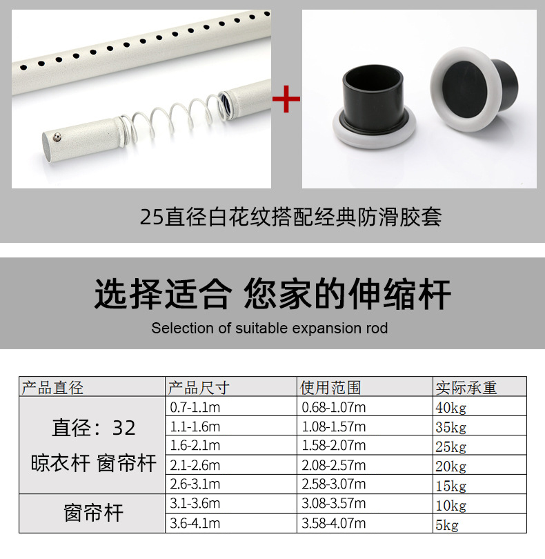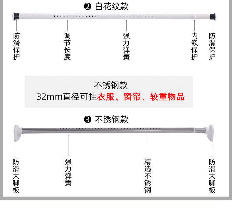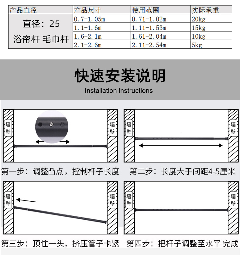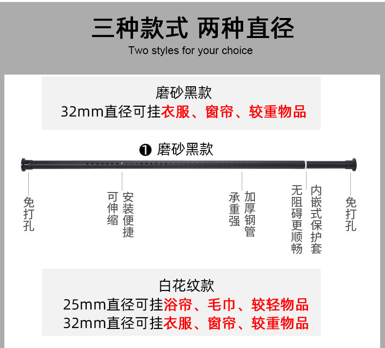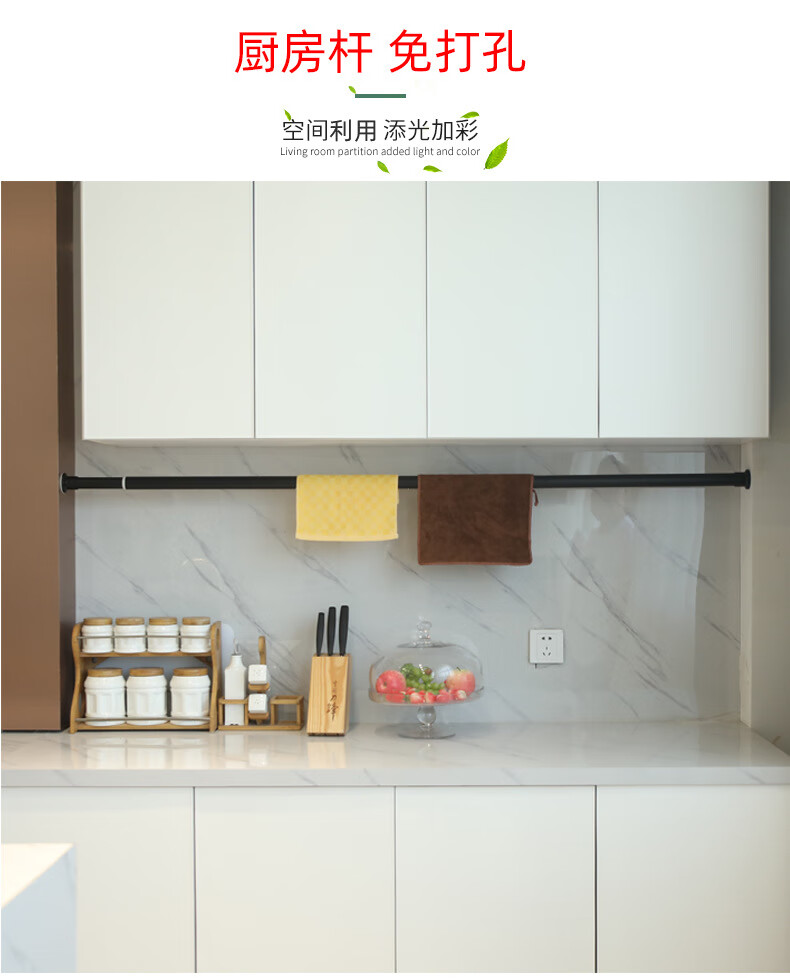 1GSHOP special punch-free installation point buckle telescopic rod for curtains, simple Roman rod for bedroom, kitchen and bathroom, modern matte black, 32 diameter, 1.6-2.1 meters