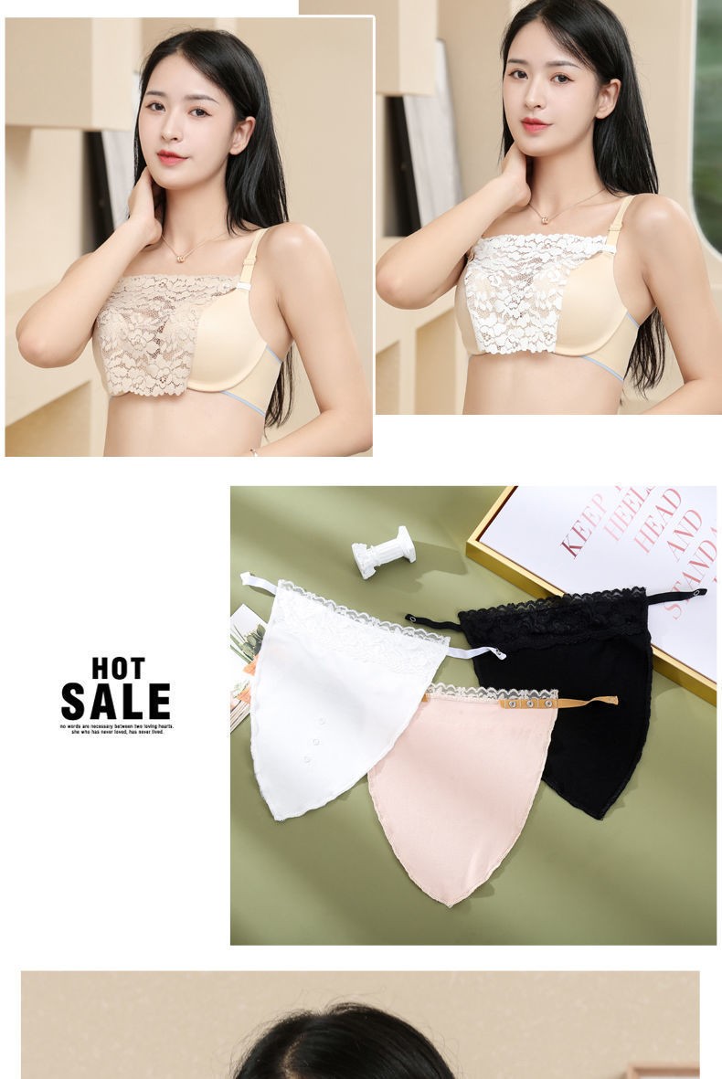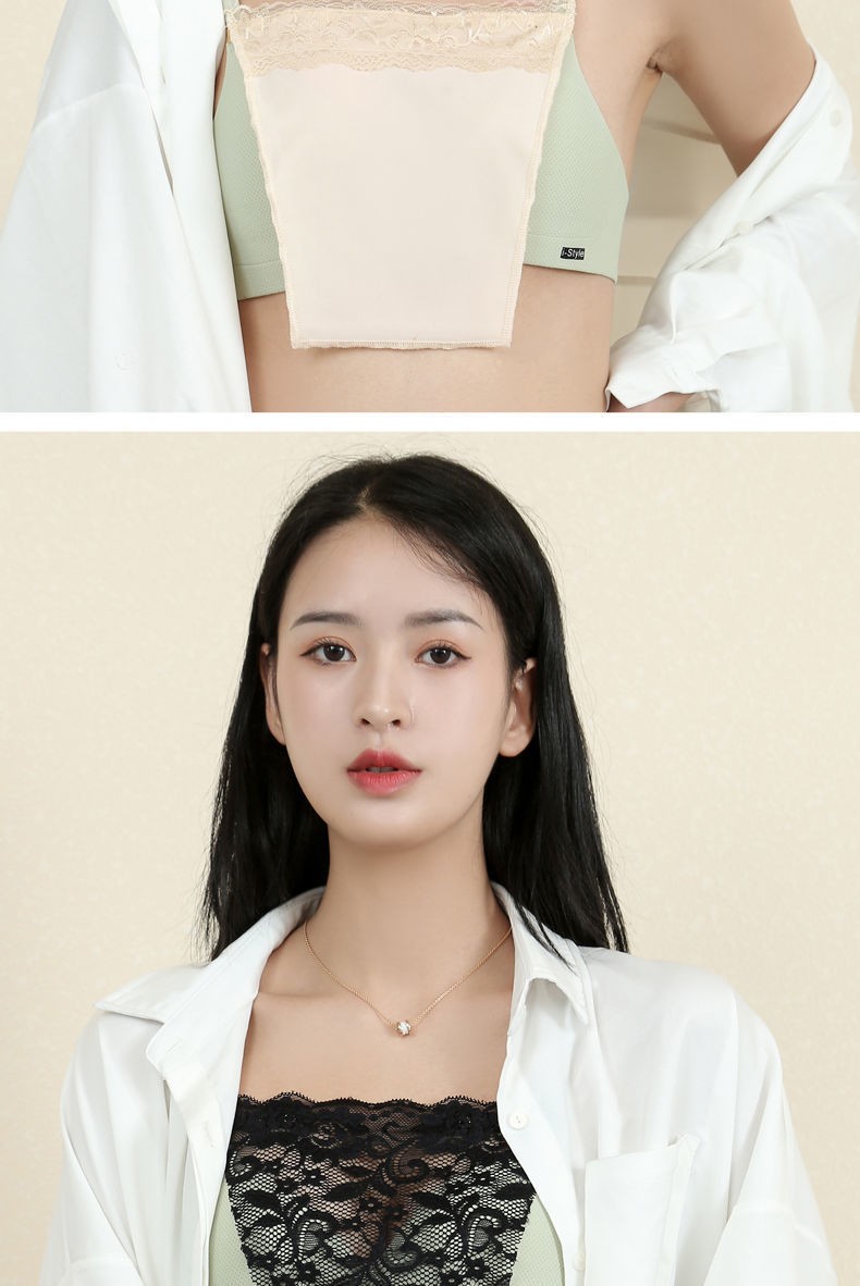 Dixing (DIXING) tube top wrap bra anti-exposure small breast one-piece lace underwear bra anti-exposure artifact chest black rose