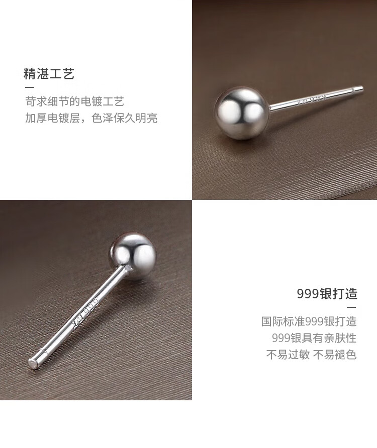 Lnieer 999 pure silver ear stick to support ear piercing silver earrings for women to sleep without picking, small and exquisite ear bone ear needles, not easy to cause allergies, 999 pure silver 3mm round head earrings pair
