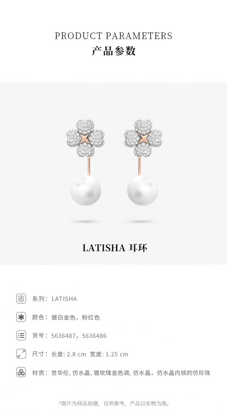 Swarovski (SWAROVSKI) LATISHA earrings four-leaf clover for women, platinum-plated 5636487
