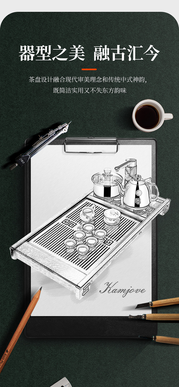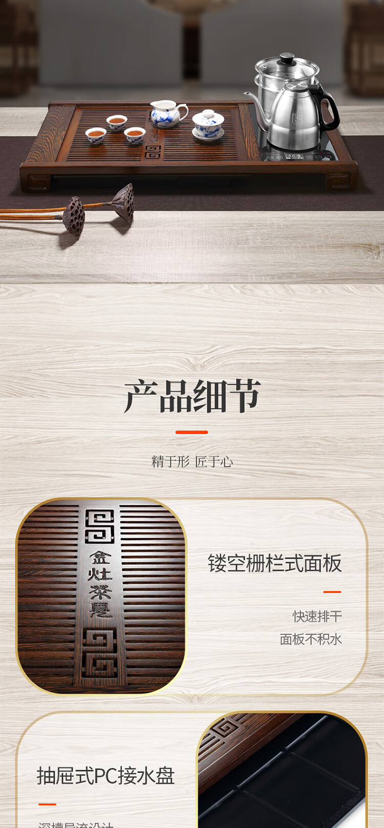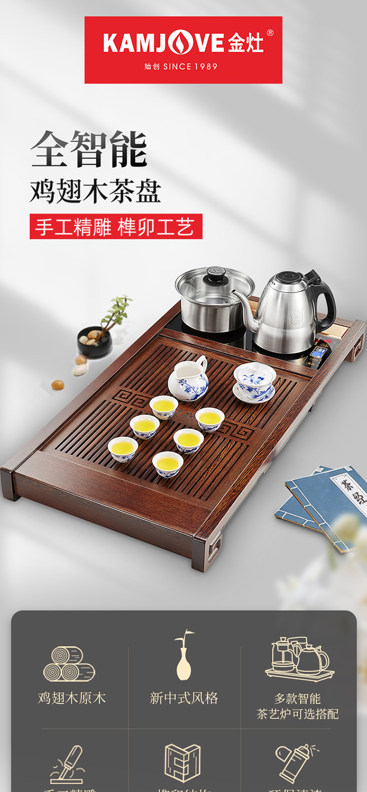 KAMJOVE automatic water supply complete tea set, chicken wing wood solid wood tea tray, Kung Fu tea table, Chahai electric tea stove K-185, chicken wing wood single tea tray (excluding tea ceremony stove) 1 piece
