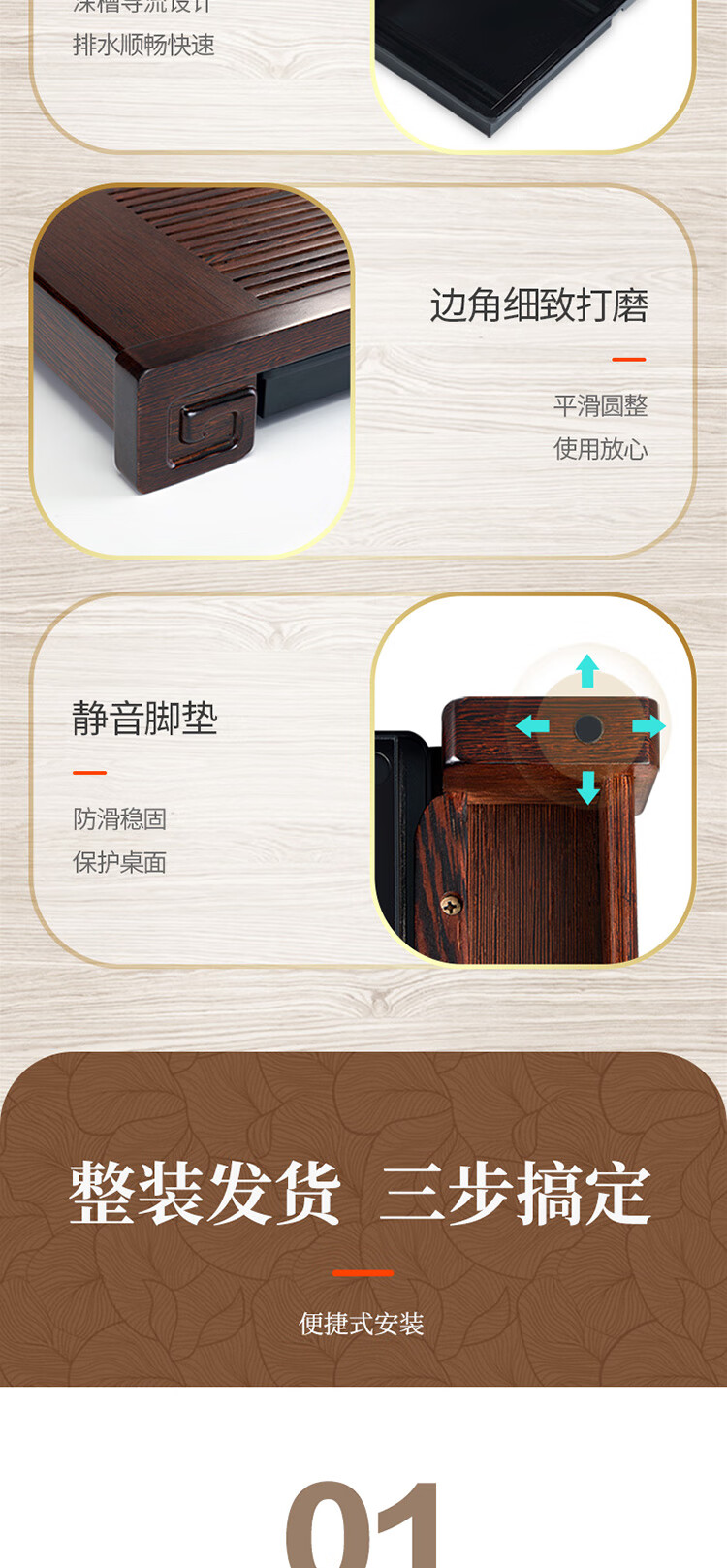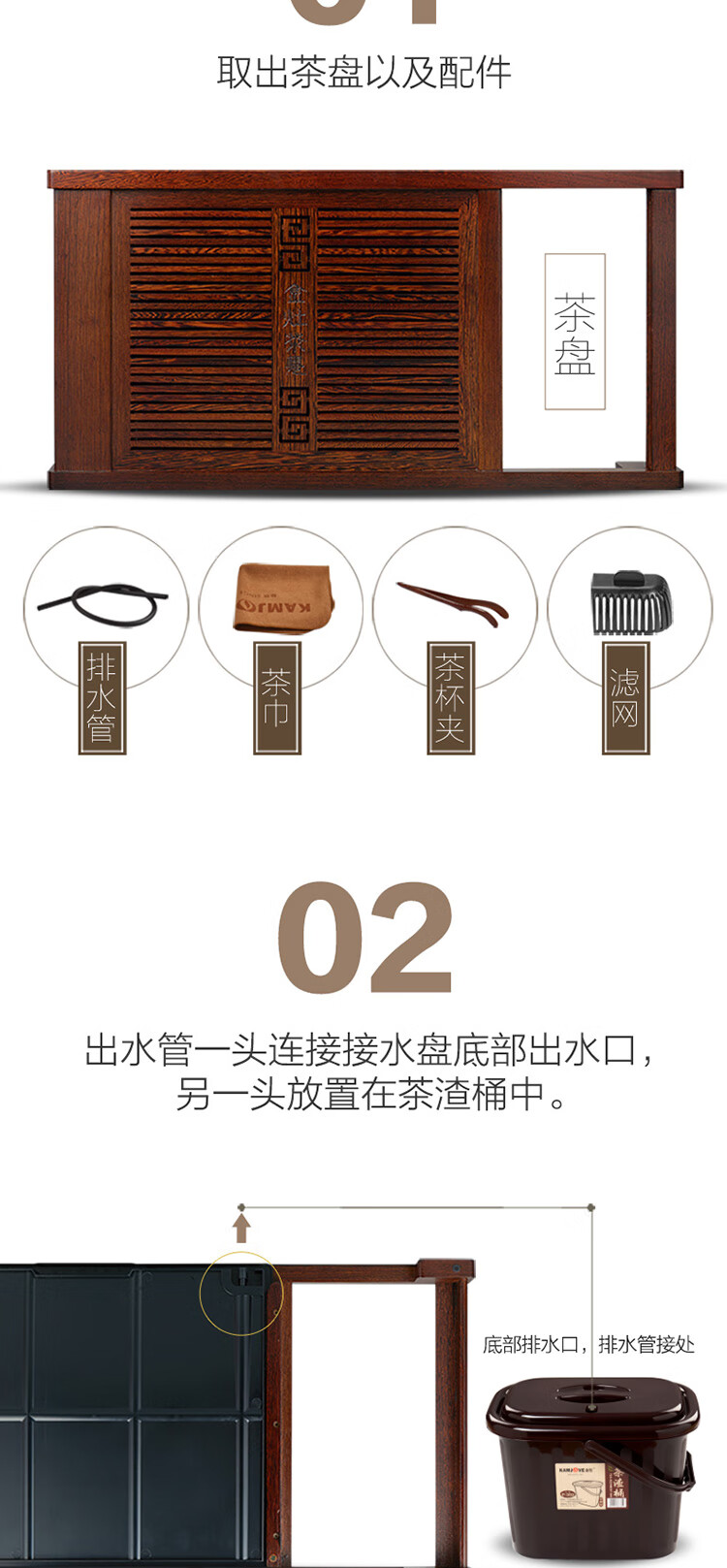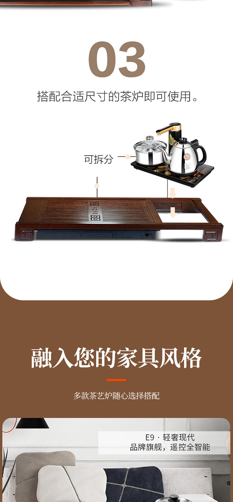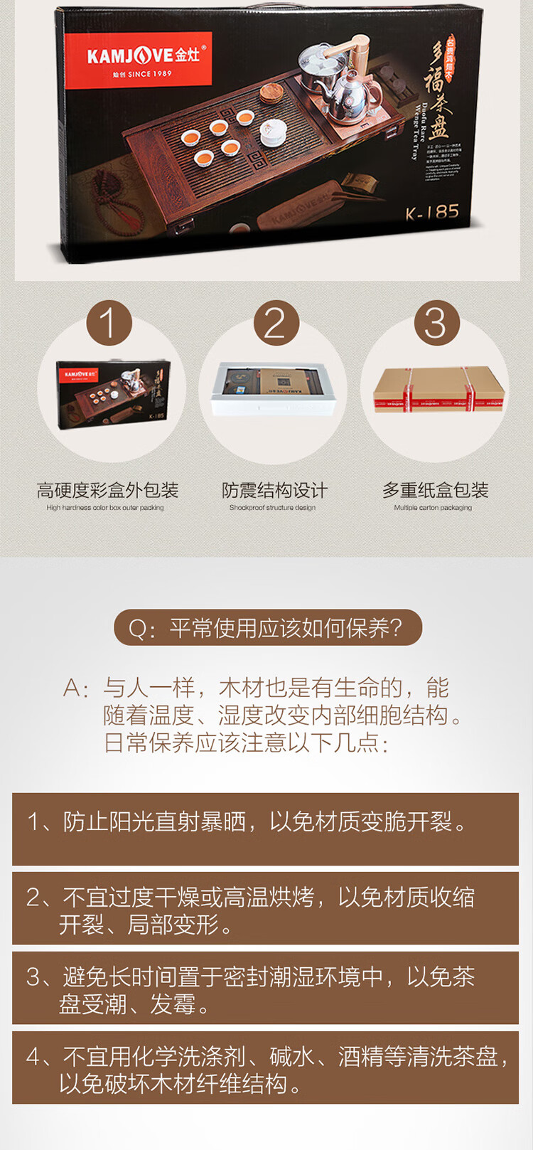 KAMJOVE automatic water supply complete tea set, chicken wing wood solid wood tea tray, Kung Fu tea table, Chahai electric tea stove K-185, chicken wing wood single tea tray (excluding tea ceremony stove) 1 piece