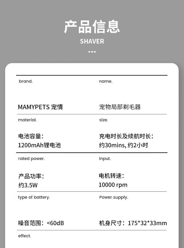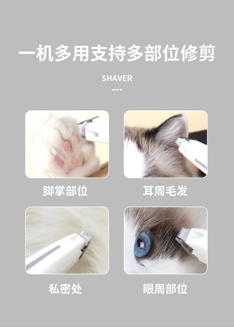 MamyPets pet shaver, cat paw shaving, dog sole shaving, pedicure shaving clipper, electric clipper, LED rechargeable model - gray, illuminates gaps, makes little noise
