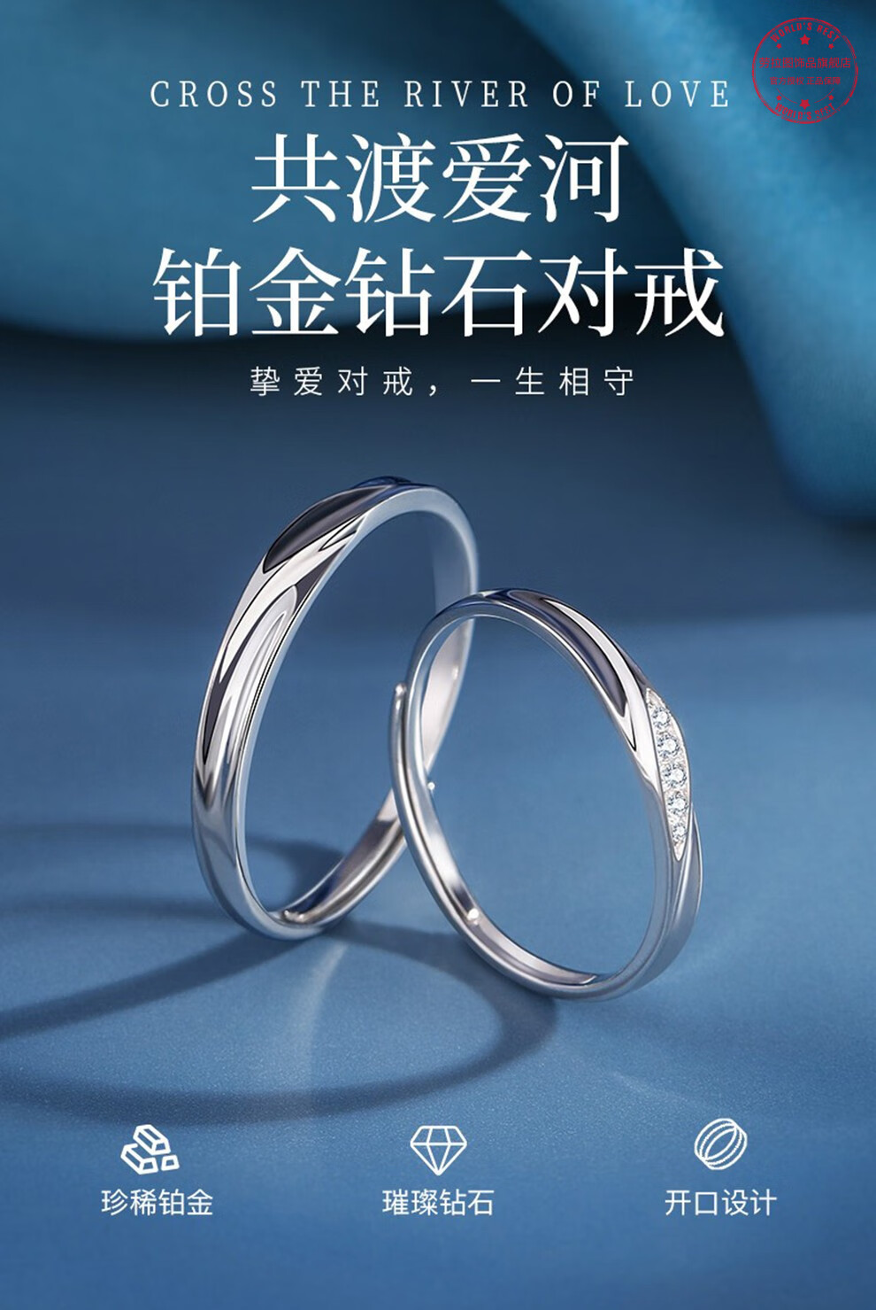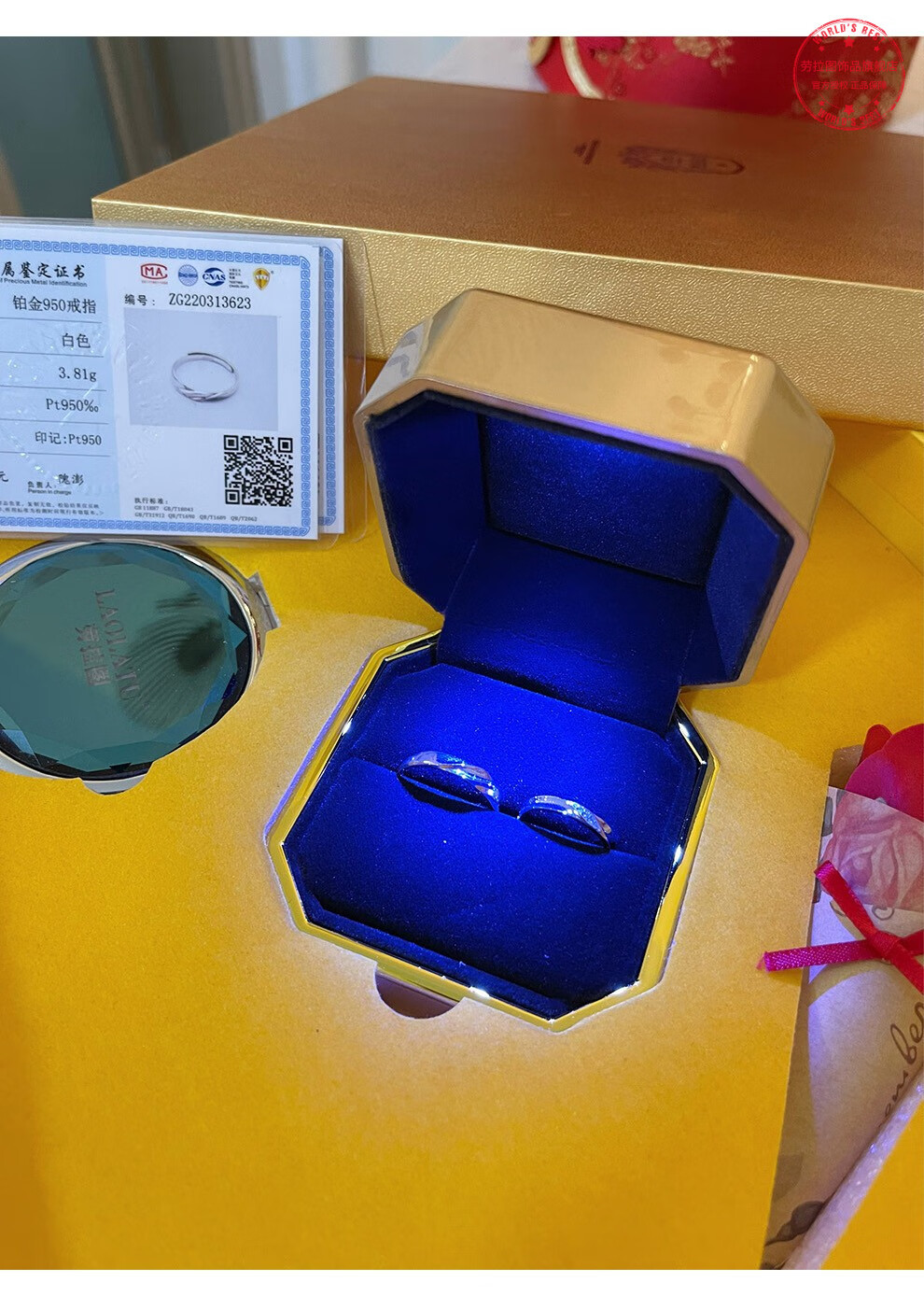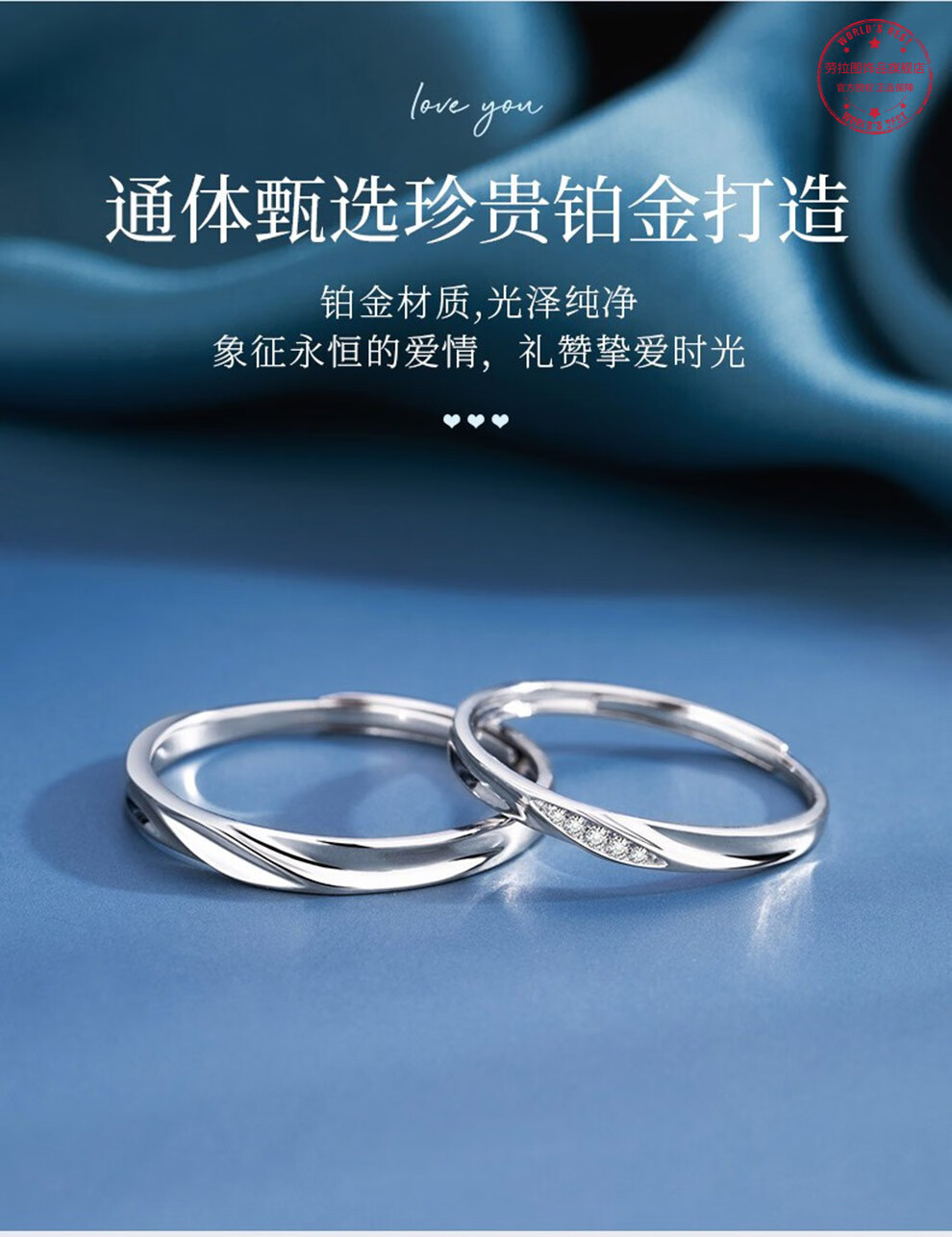 LAOLATU platinum ring for women PT950 platinum pairing ring couple wedding engagement ring Chinese Valentine's Day gift for girlfriend and wife pt950 platinum pairing ring live adjustable