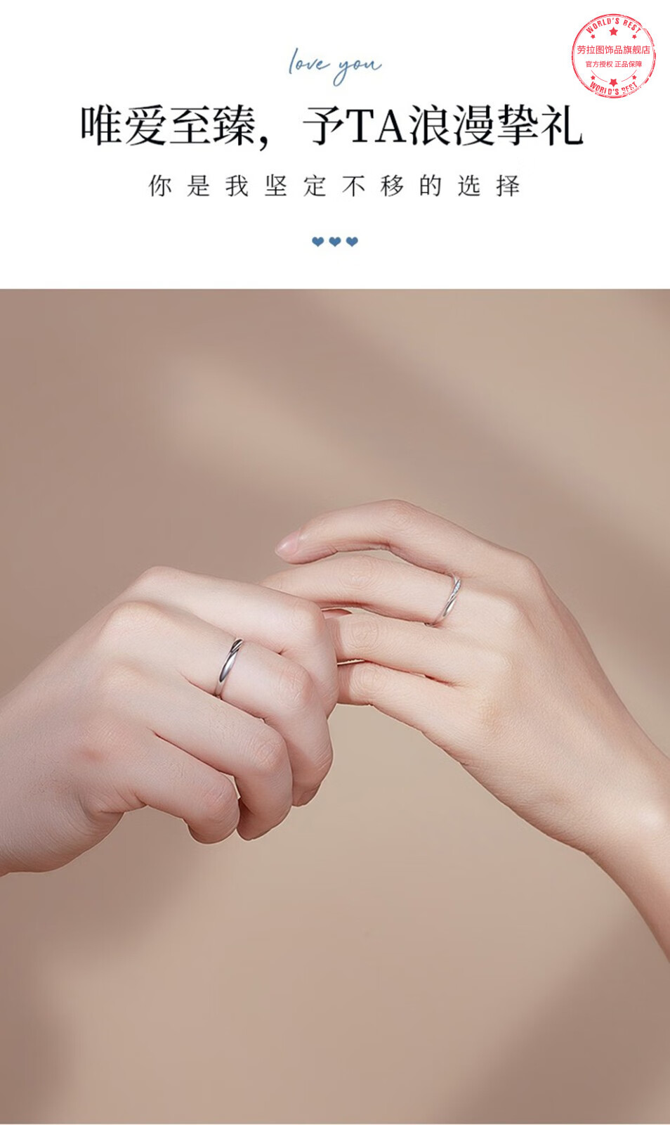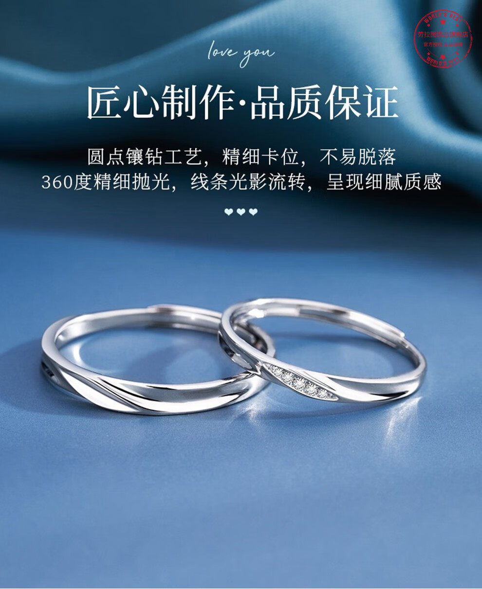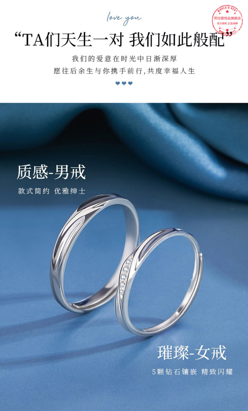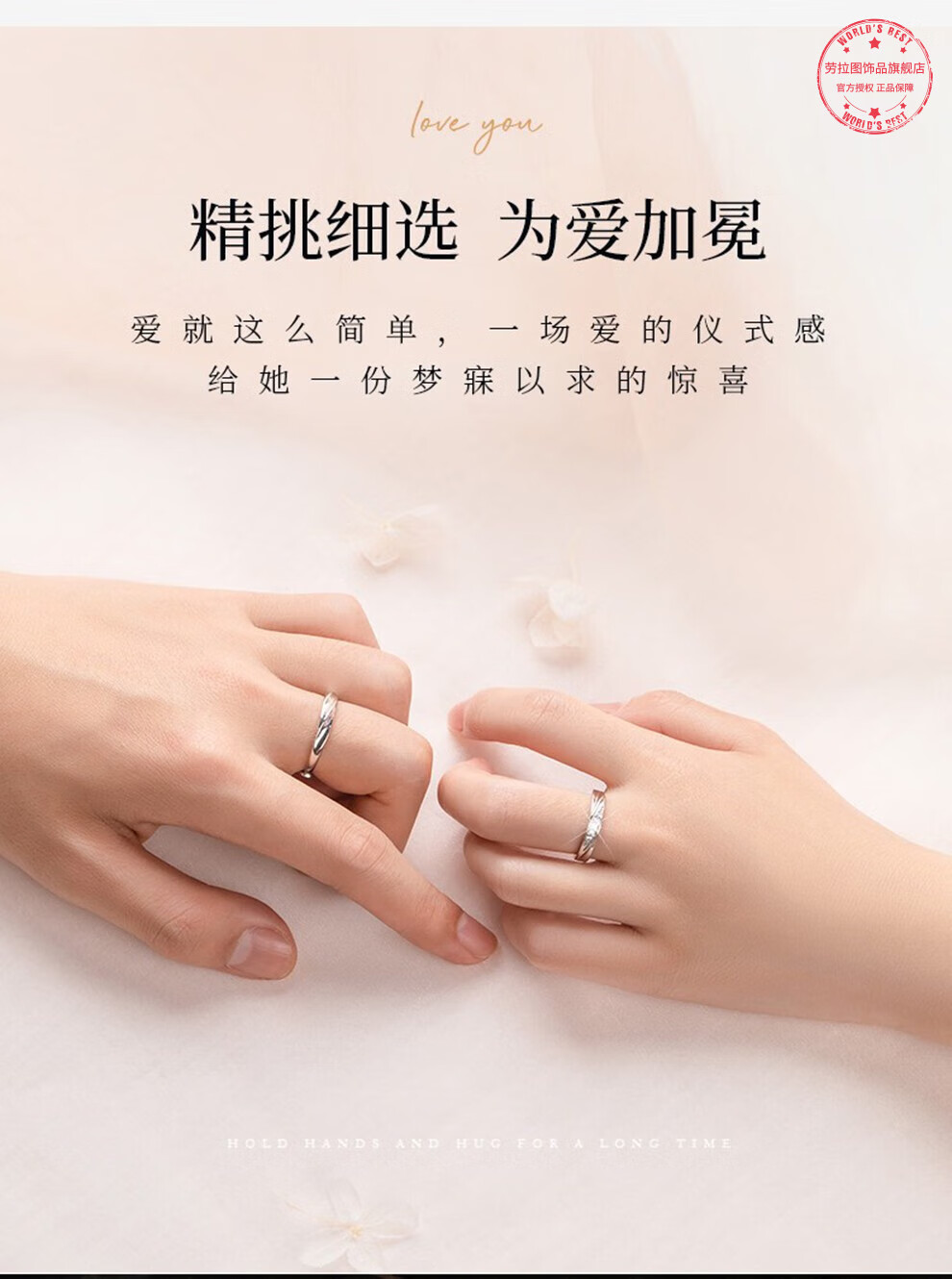 LAOLATU platinum ring for women PT950 platinum pairing ring couple wedding engagement ring Chinese Valentine's Day gift for girlfriend and wife pt950 platinum pairing ring live adjustable
