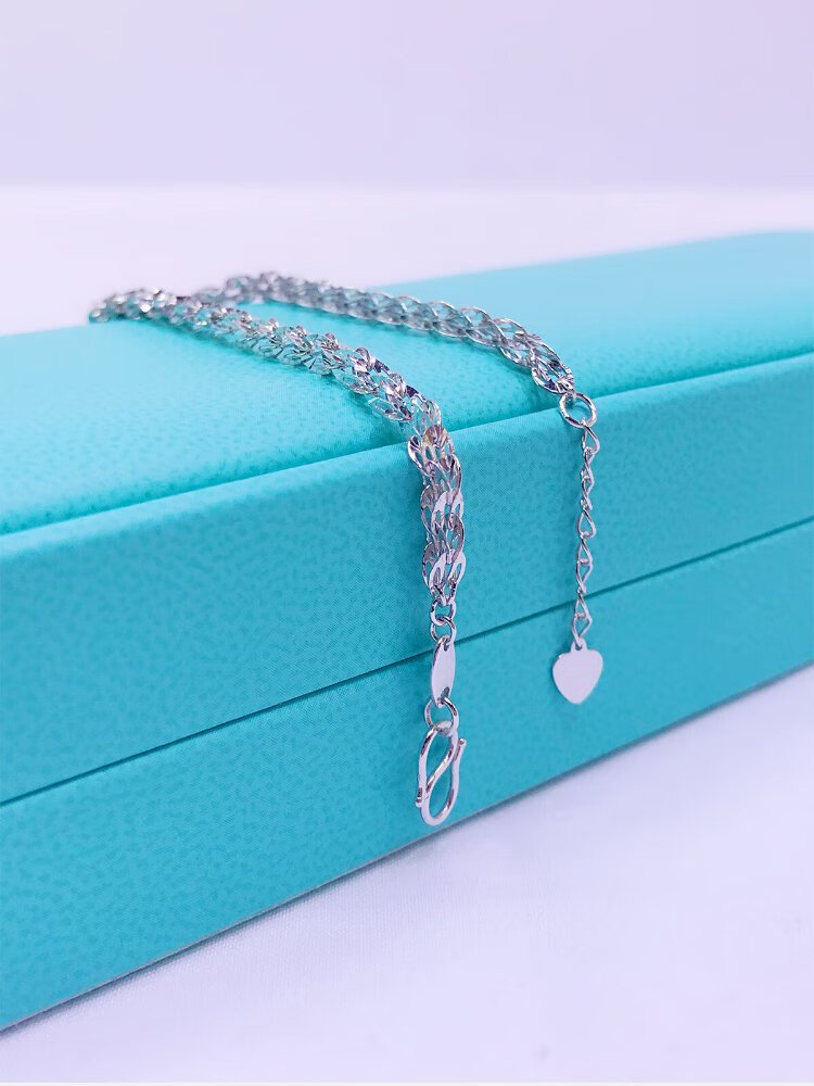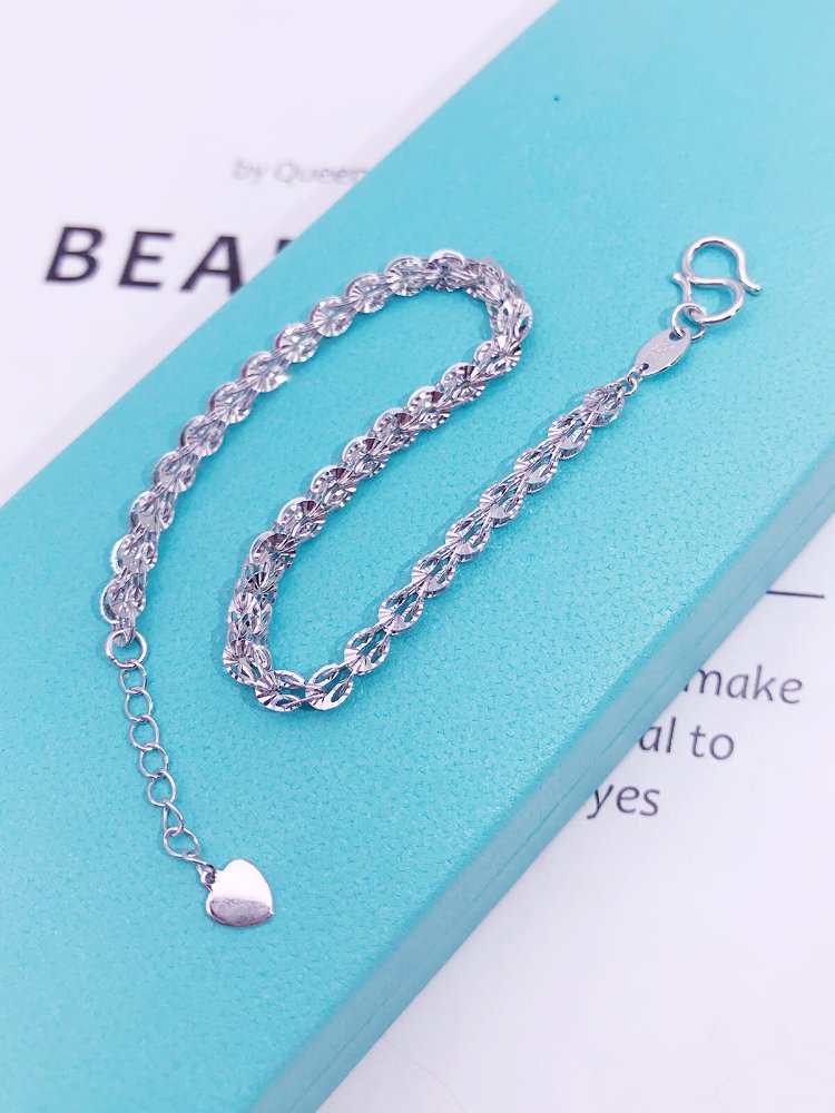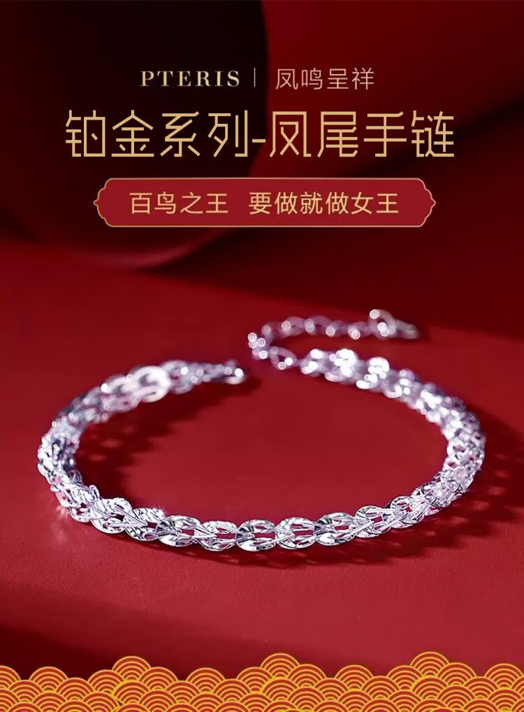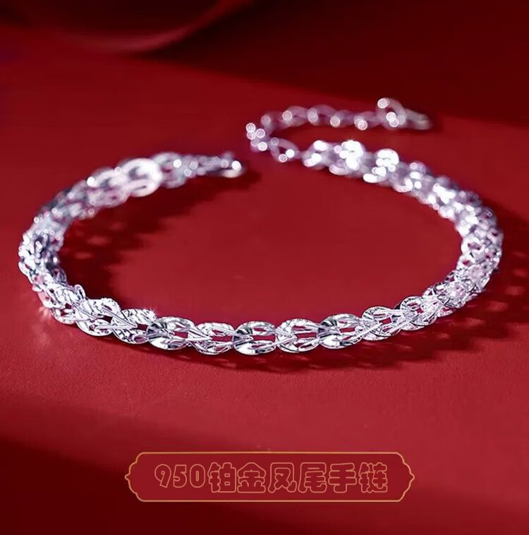 Heye Jewelry Real Gold Phoenix Tail Bracelet Platinum Queen Women's Pt950 Women's Platinum Bracelet with Heart Tag Adjustment 4.02g 4.0mm thick 16cm long plus adjustment chain