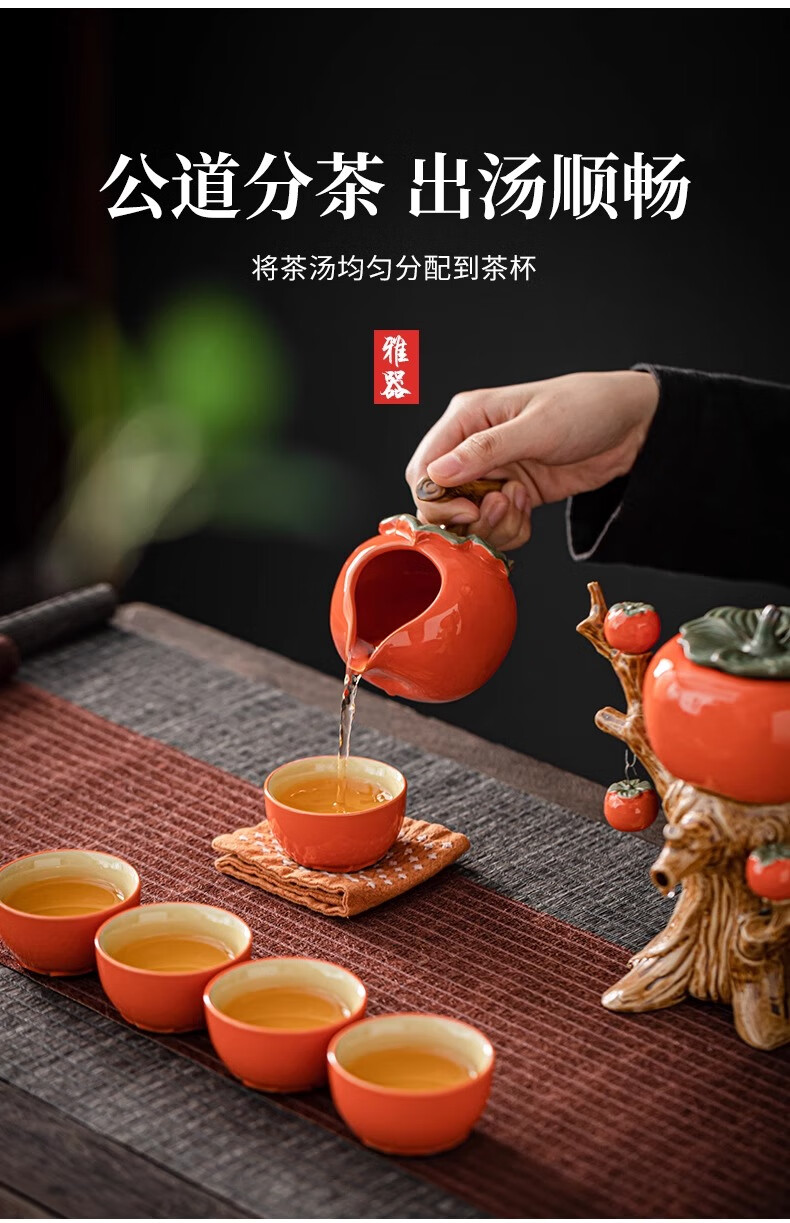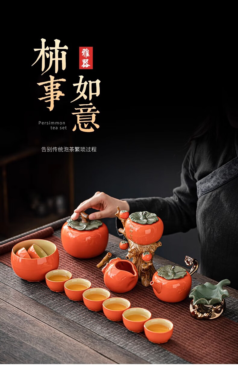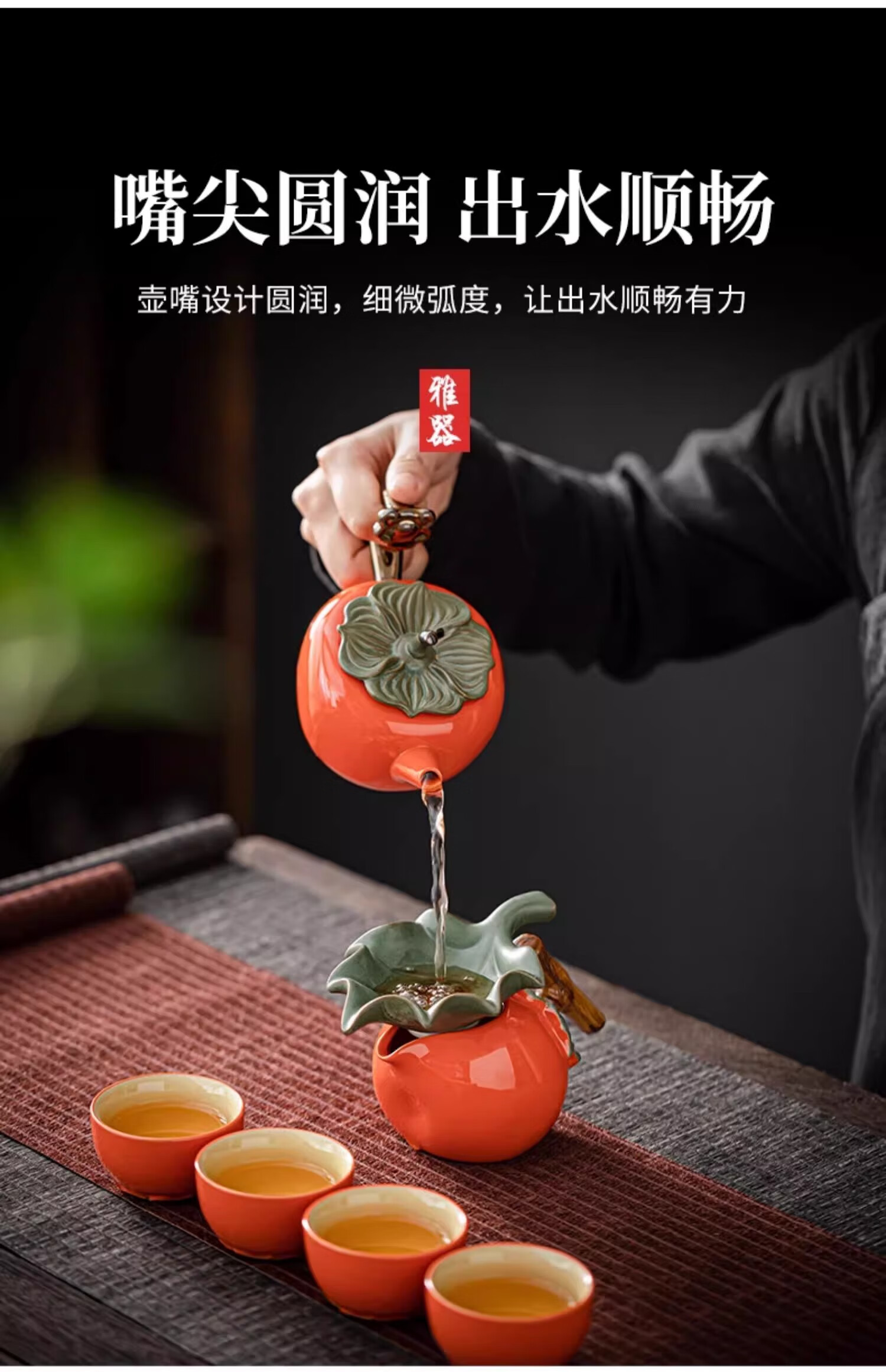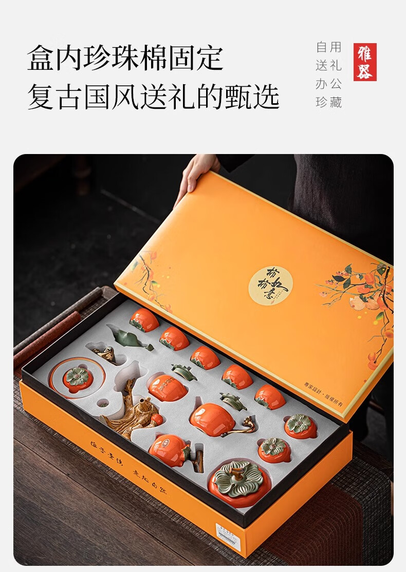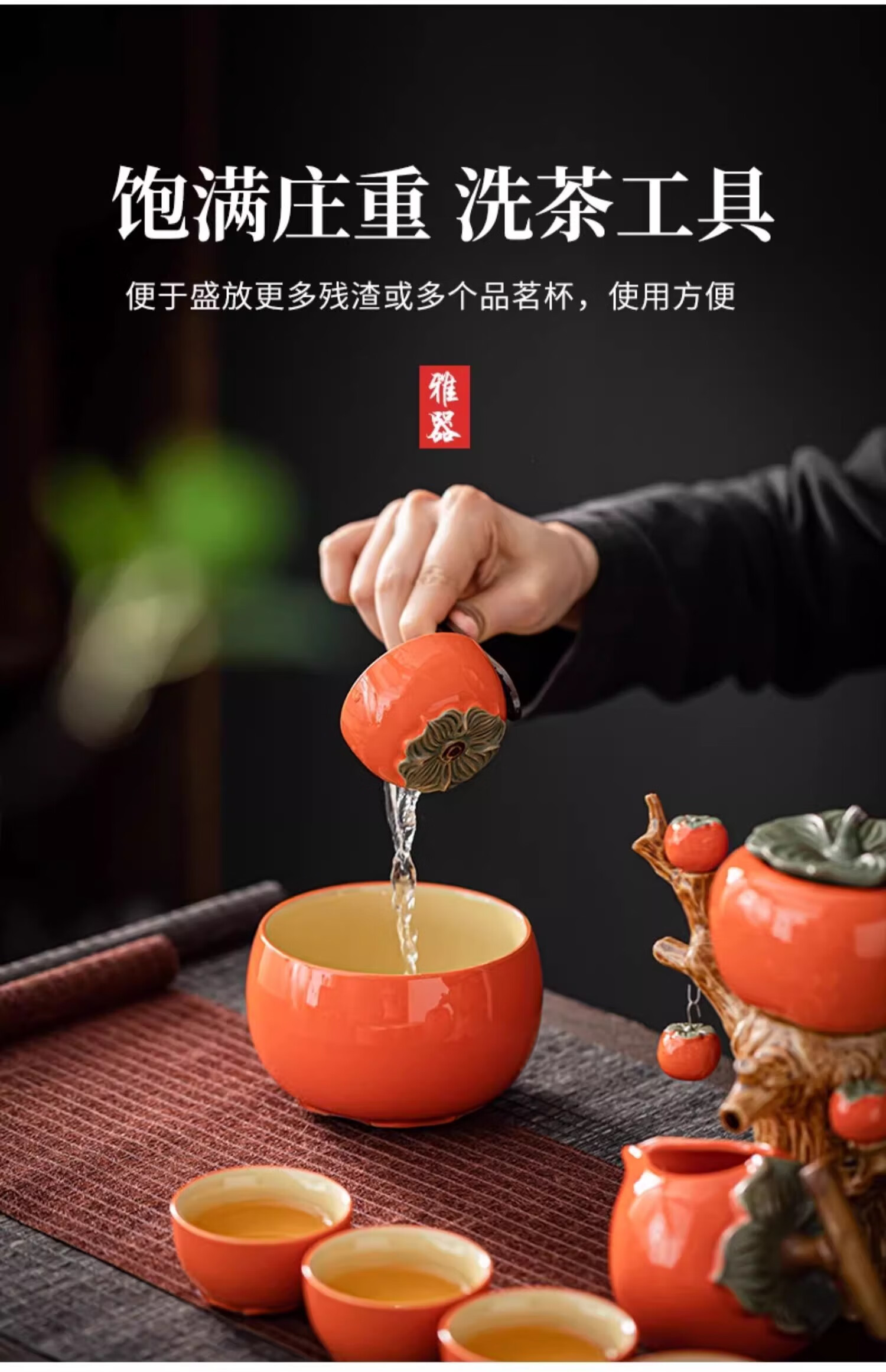 Xin Qi Ji business souvenir Kung Fu tea set persimmon wishful housewarming holiday gift ceramic annual party gift one pot one can four persimmon cup gift box