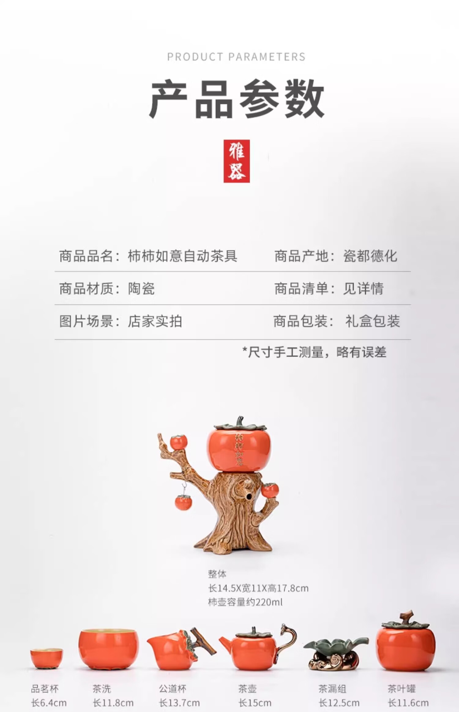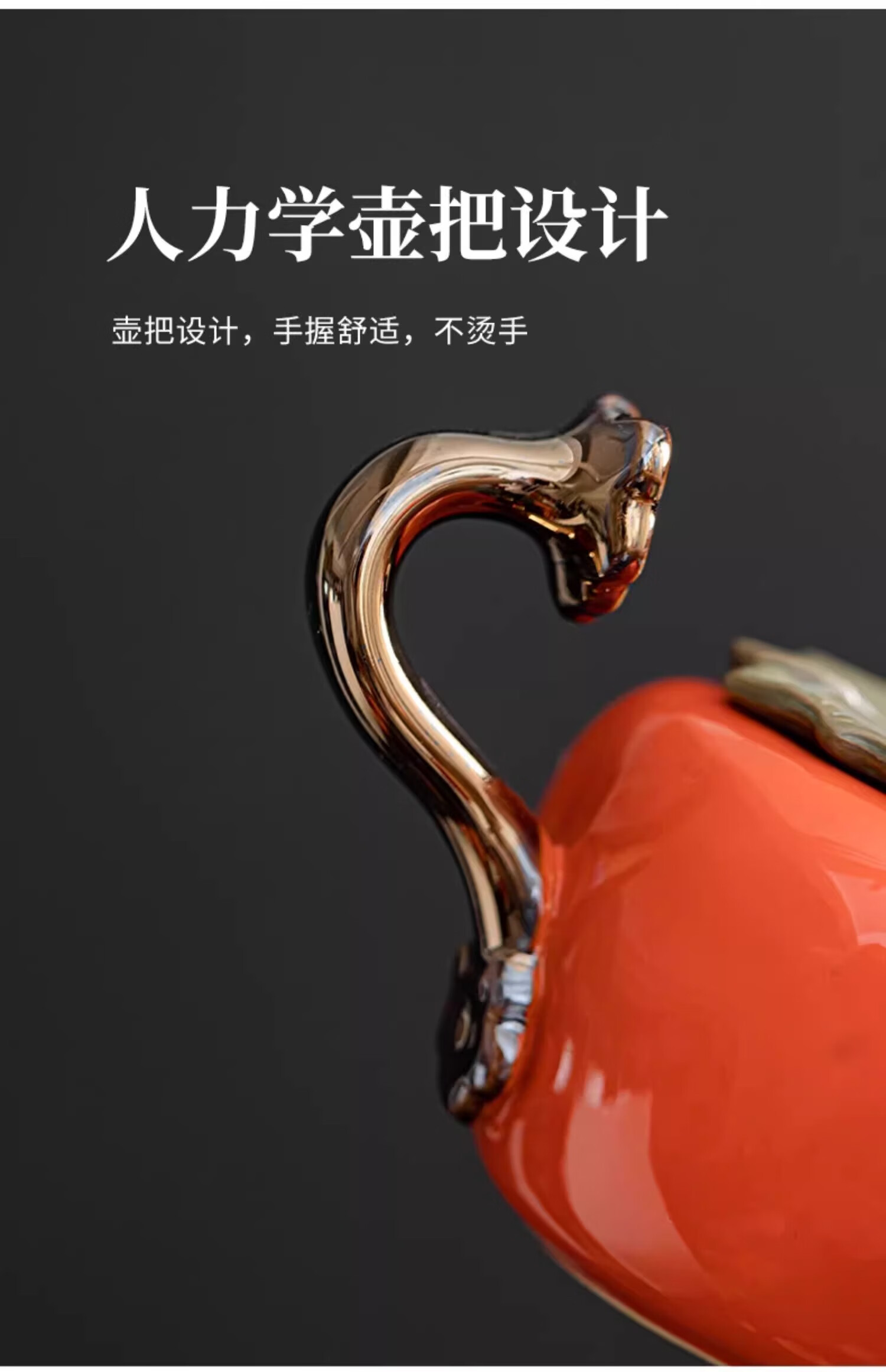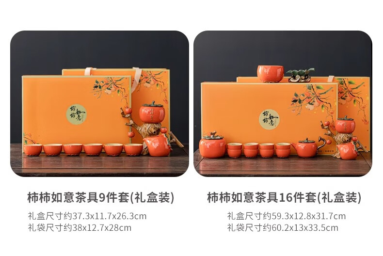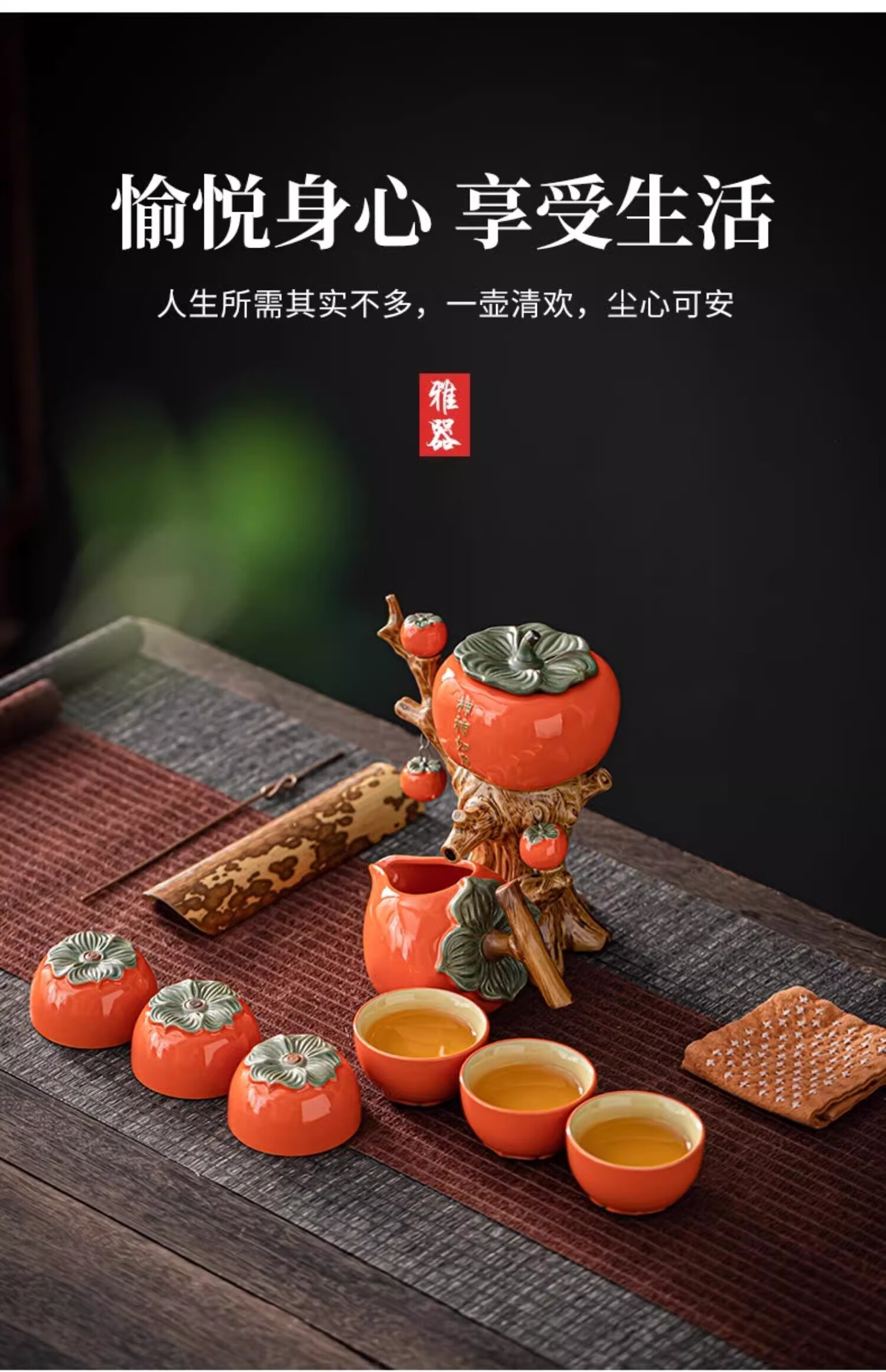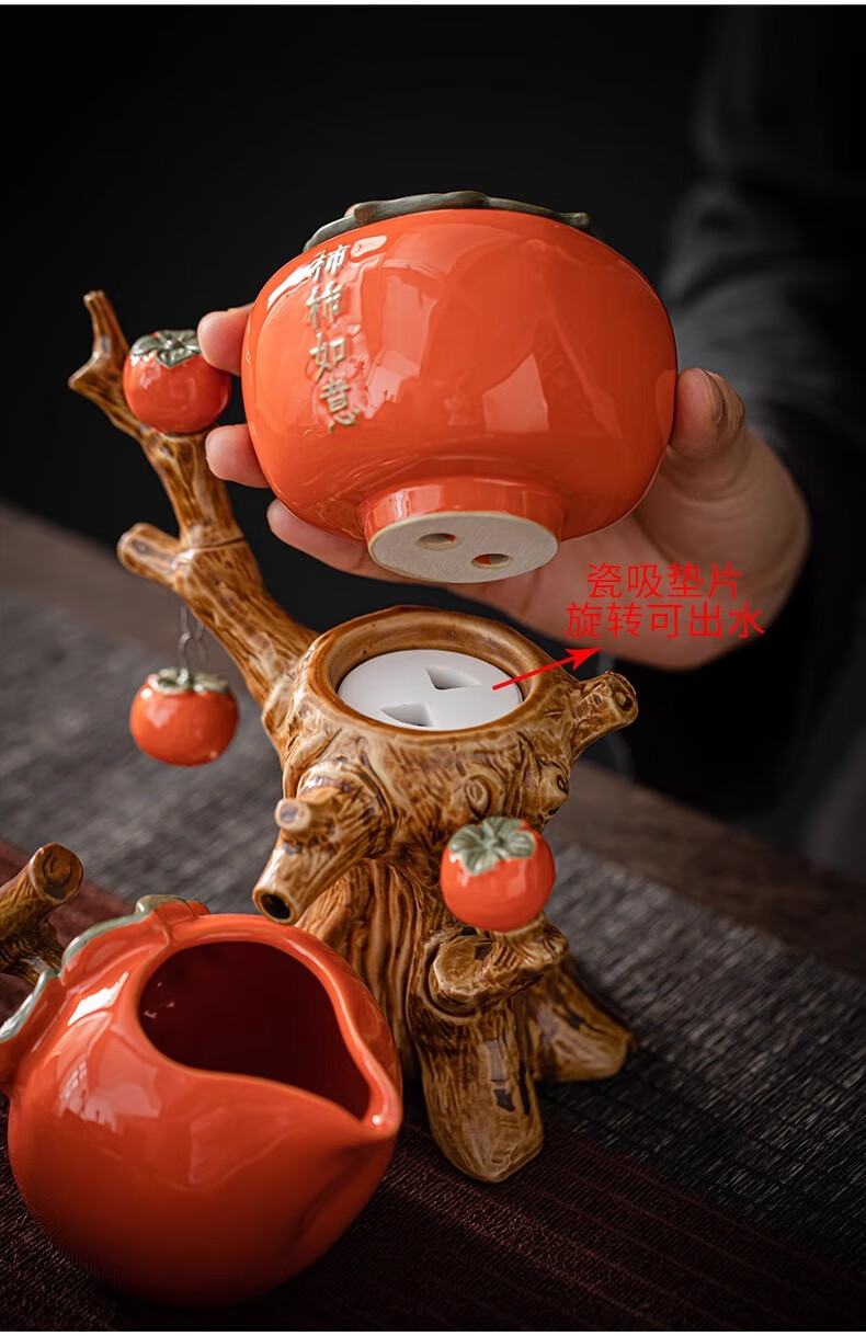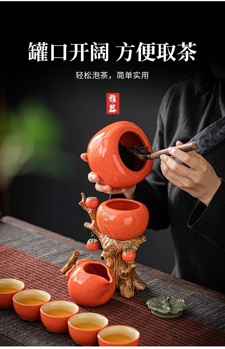 Xin Qi Ji business souvenir Kung Fu tea set persimmon wishful housewarming holiday gift ceramic annual party gift one pot one can four persimmon cup gift box