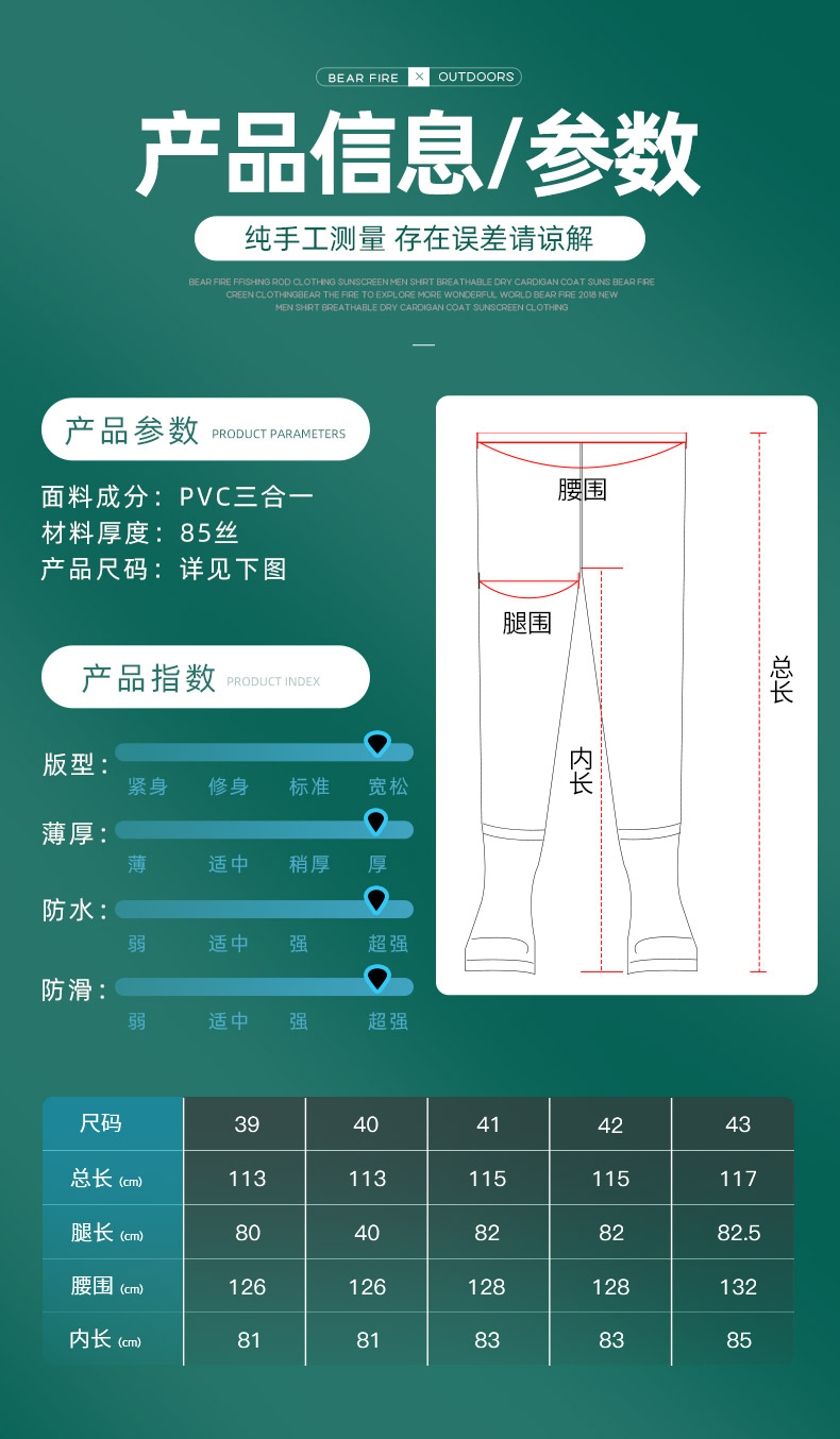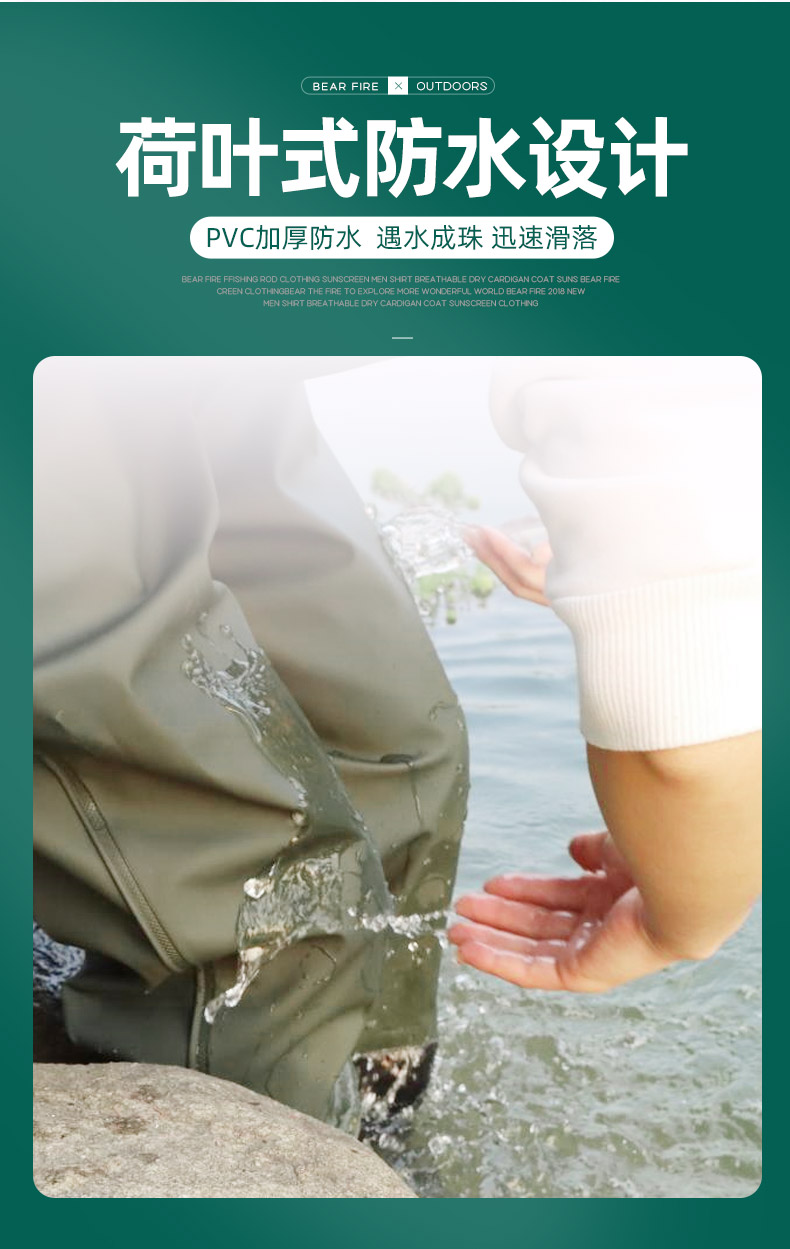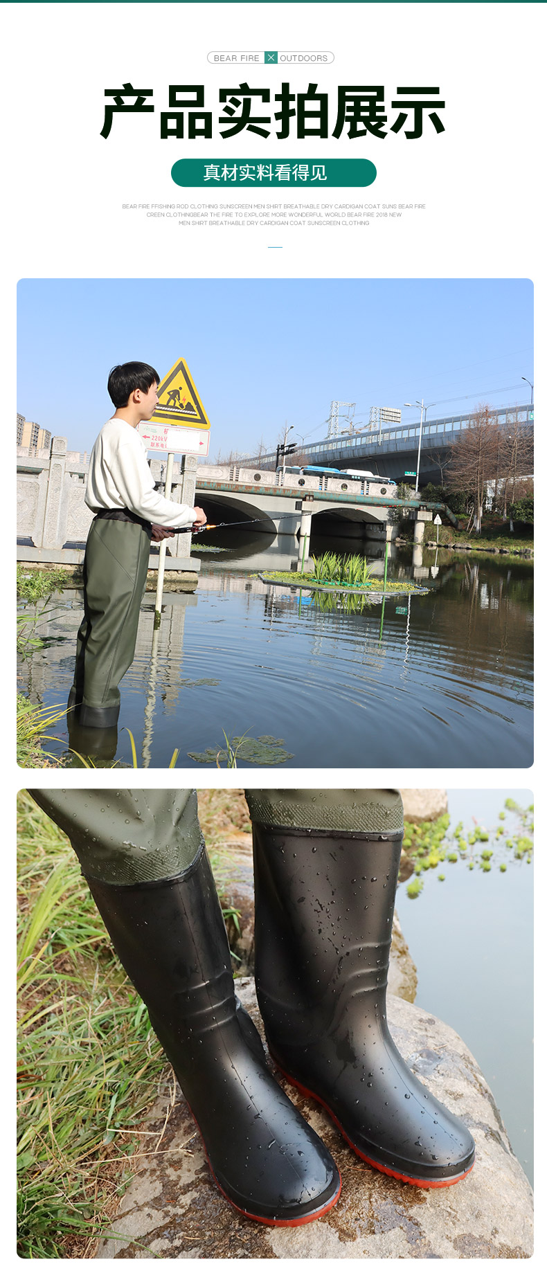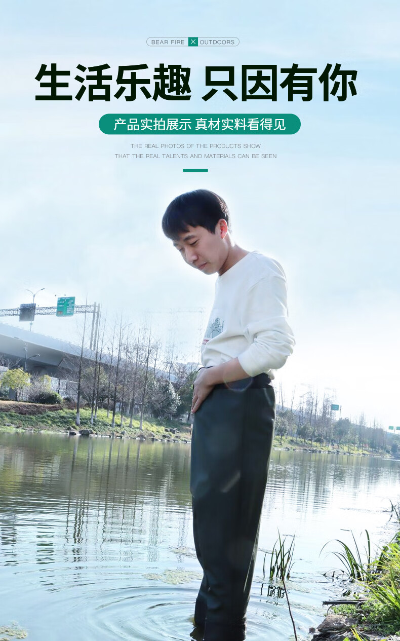 Bear fire waders, half-length waders, waterproof fish pants, rain pants, one-piece men's waist-high waterproof clothing, water boots, leather crotch trousers, waders, fishing suits, fish pond catching sea pants, fishing pants, fishing suits, thickened 85 silk military green (with insoles + leather + glue) 42