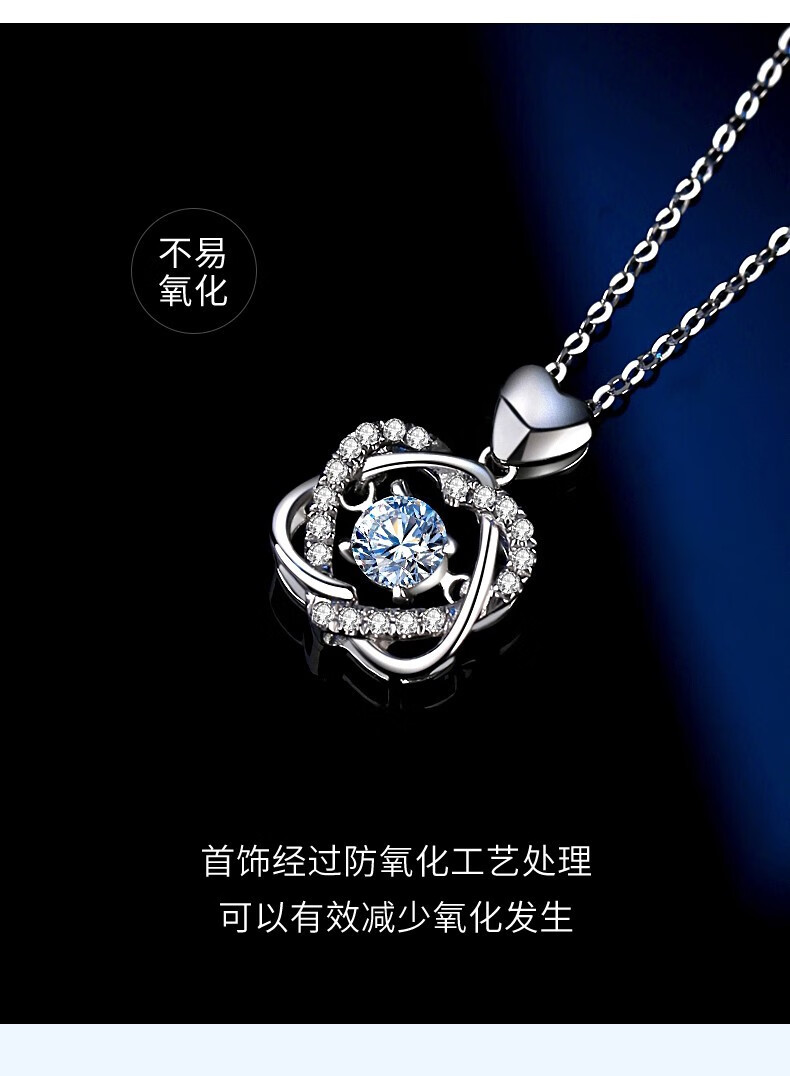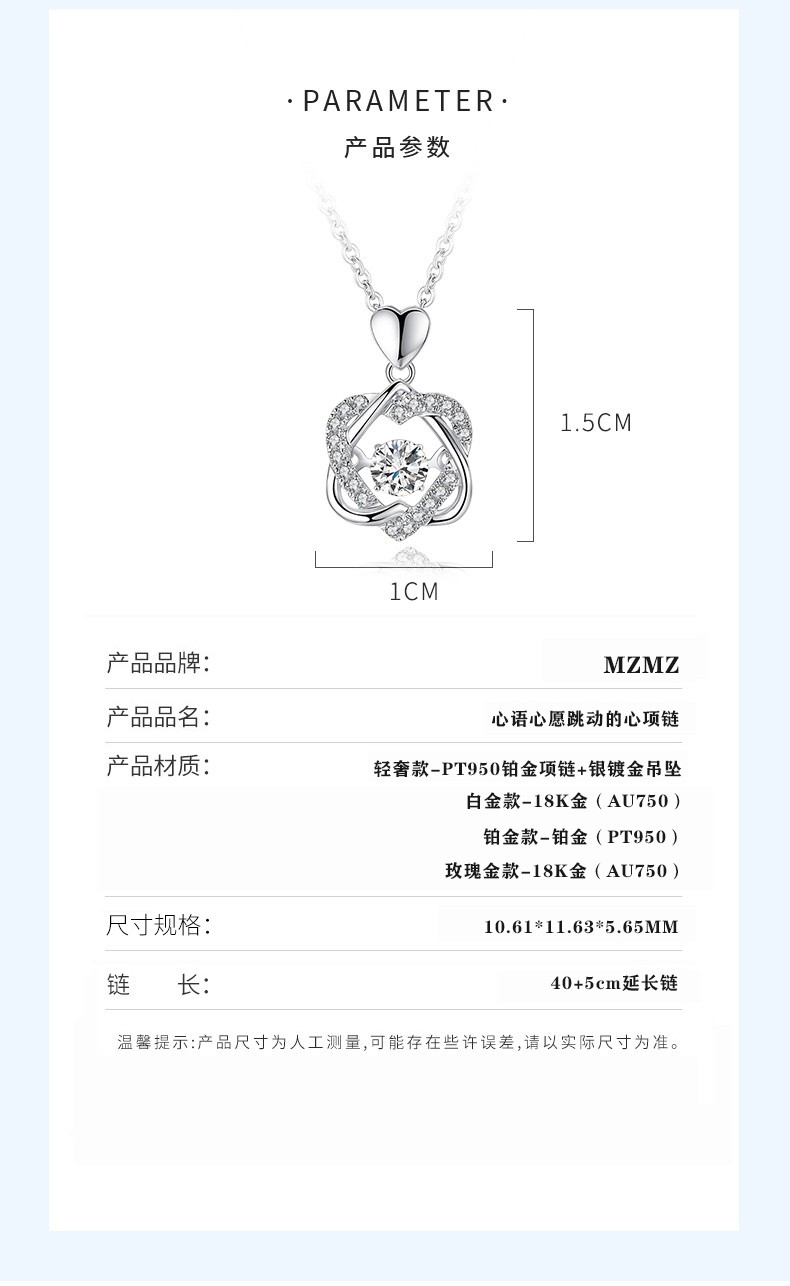 MZMZ Platinum Necklace Women's Beating Heart Jewelry PT950 Platinum Birthday Chinese Valentine's Day Gift for Girlfriend Free Engraving Light Luxury Style - Platinum Necklace + Ocean Heart Topaz