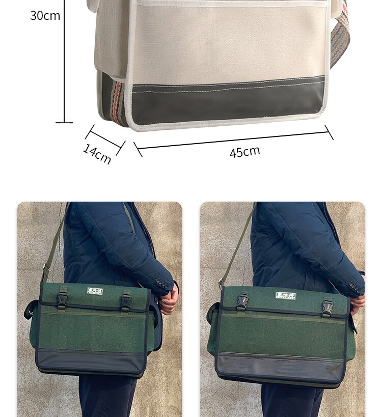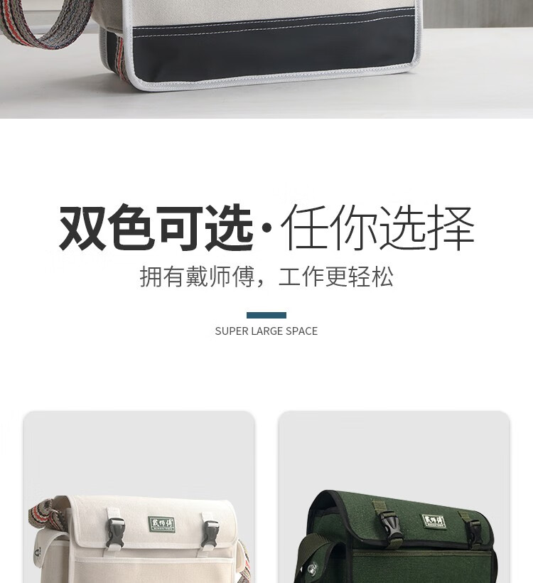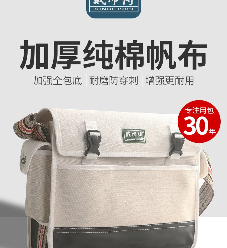 Master Dai electrician tool bag canvas large thickened multifunctional repair and installation tool bag wear-resistant portable small woodworking multifunctional white medium size length 40 width 14 height 30