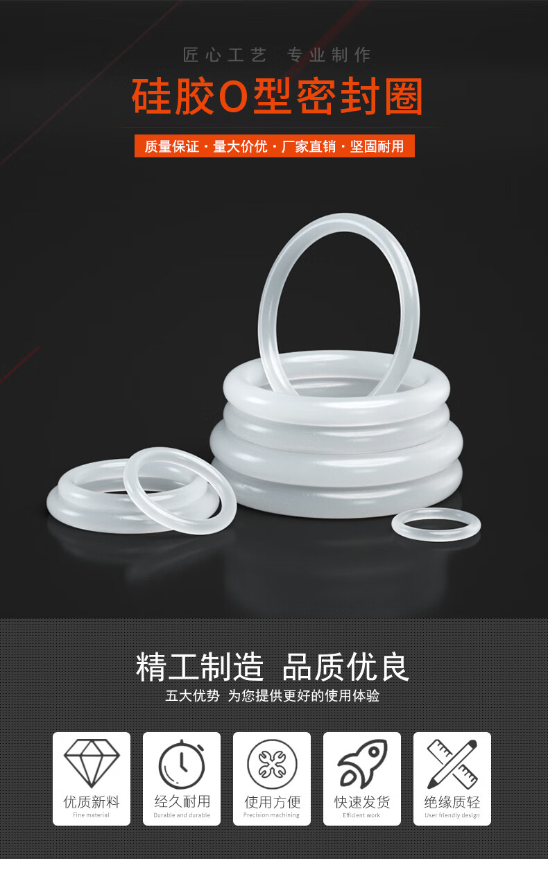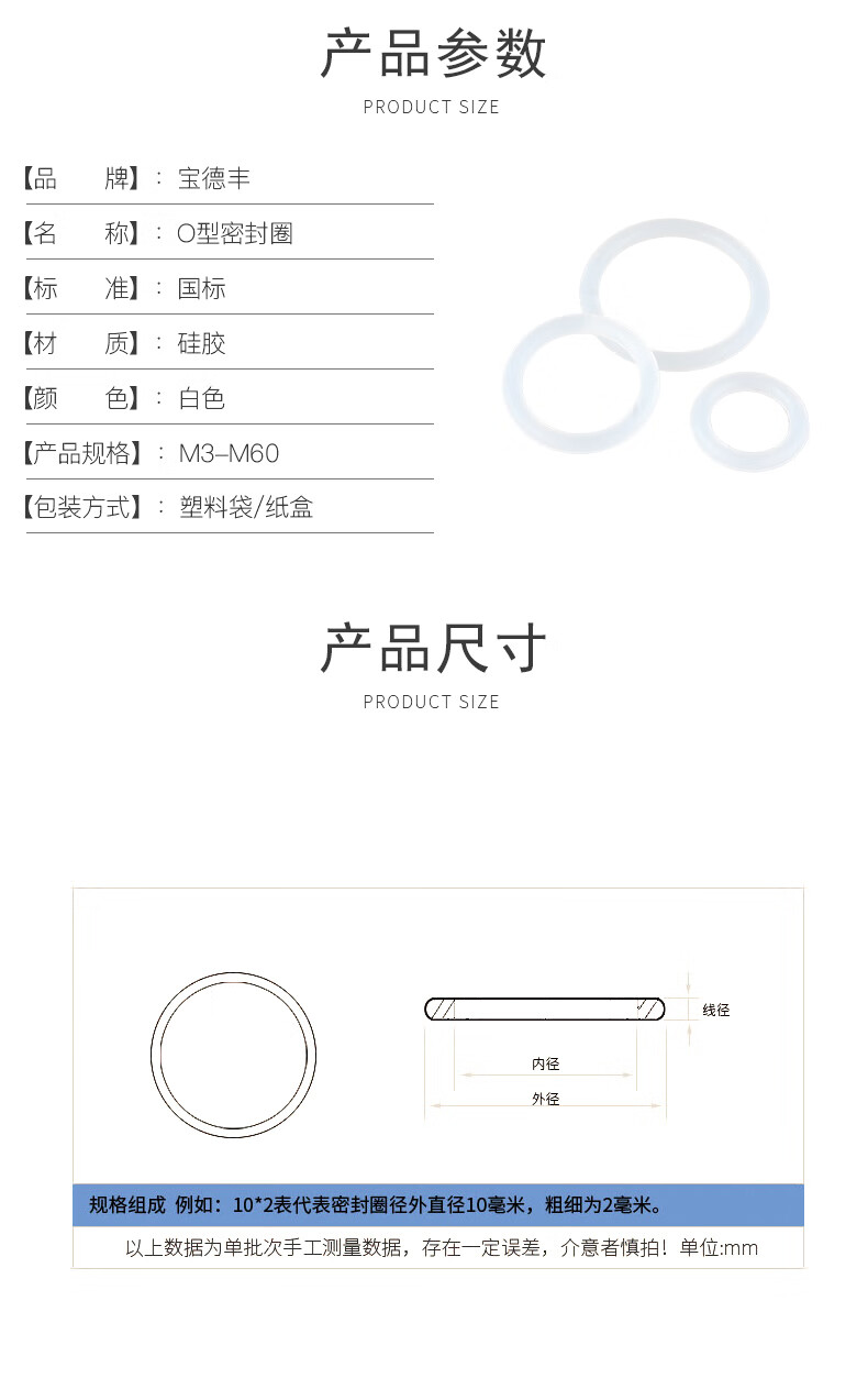 Baodefeng O-ring high temperature resistant silicone ring faucet waterproof sealing ring wear-resistant silicone rubber seal white sealing ring M3x1 100 pieces