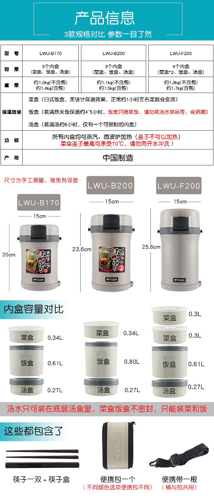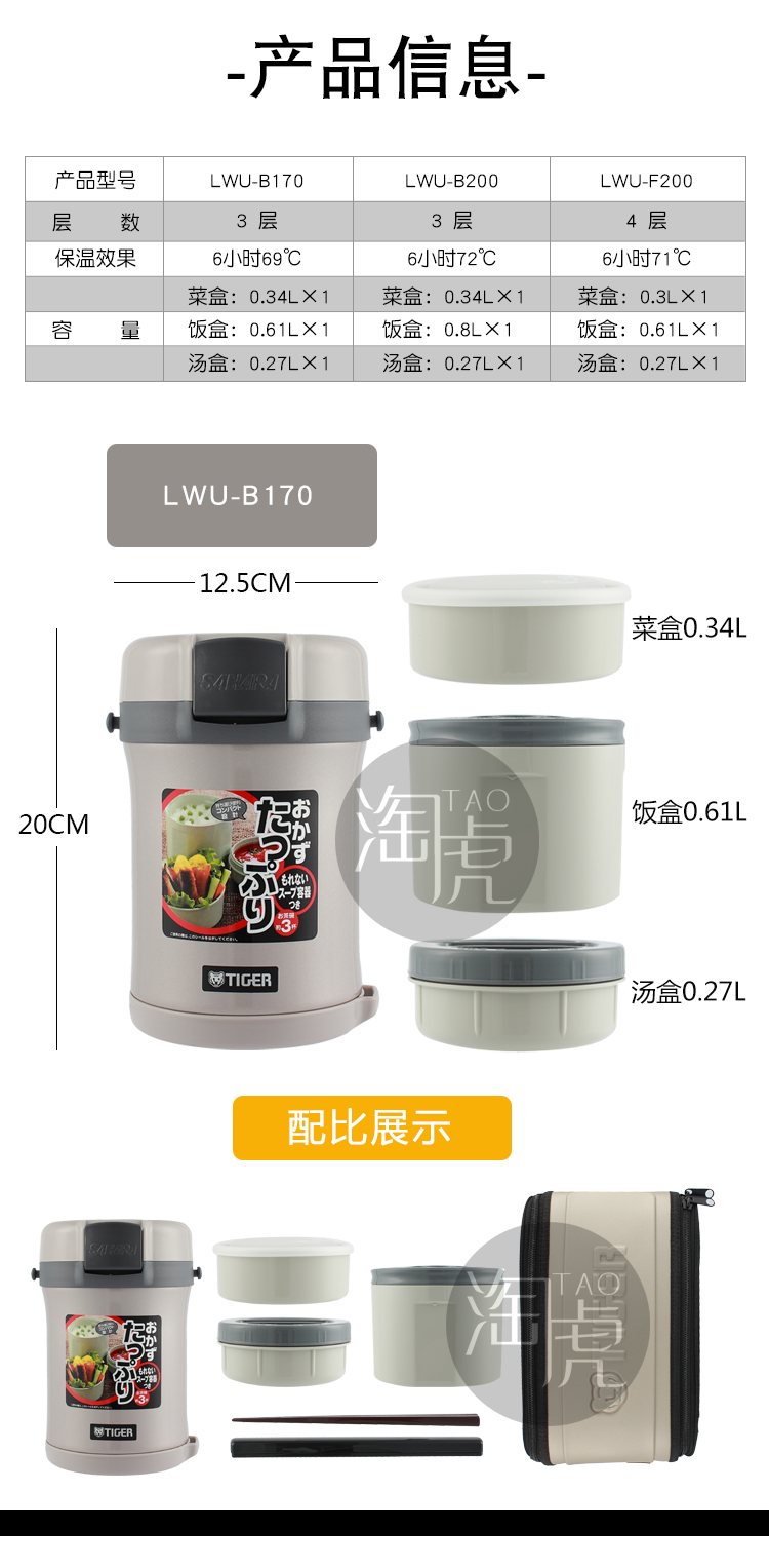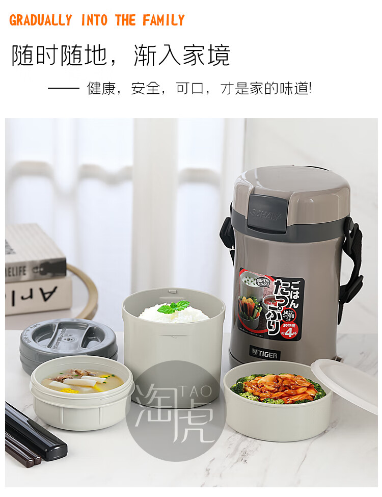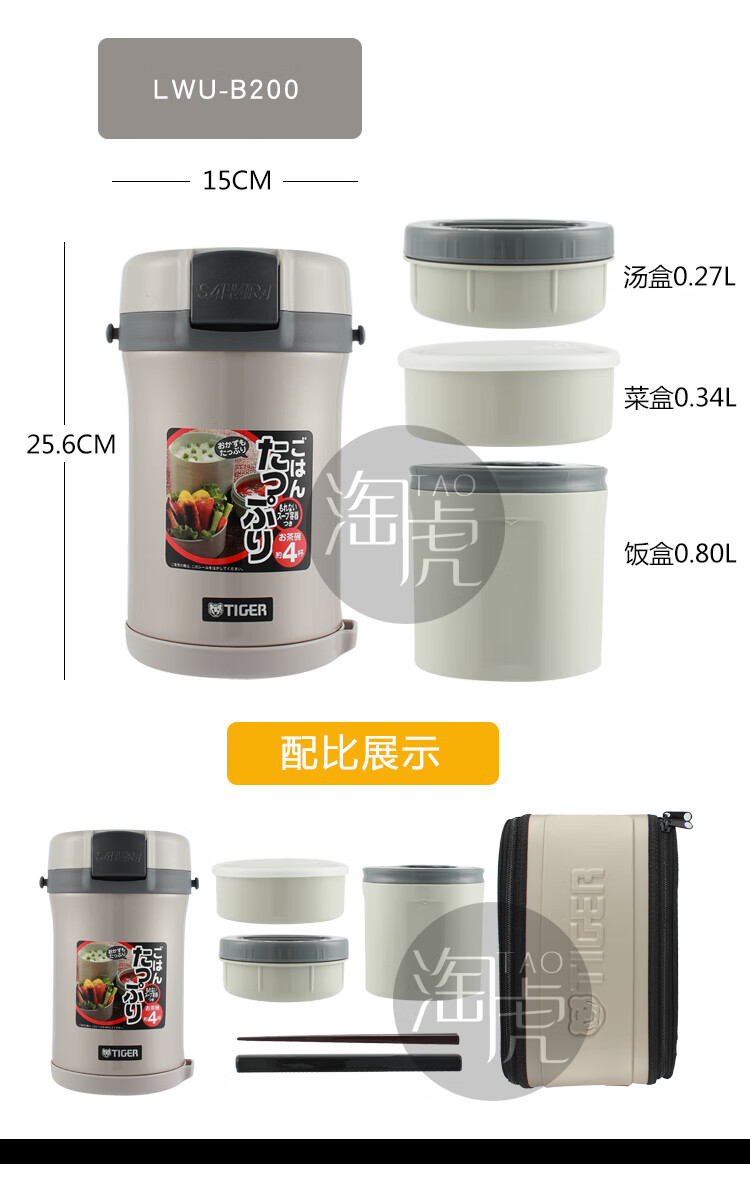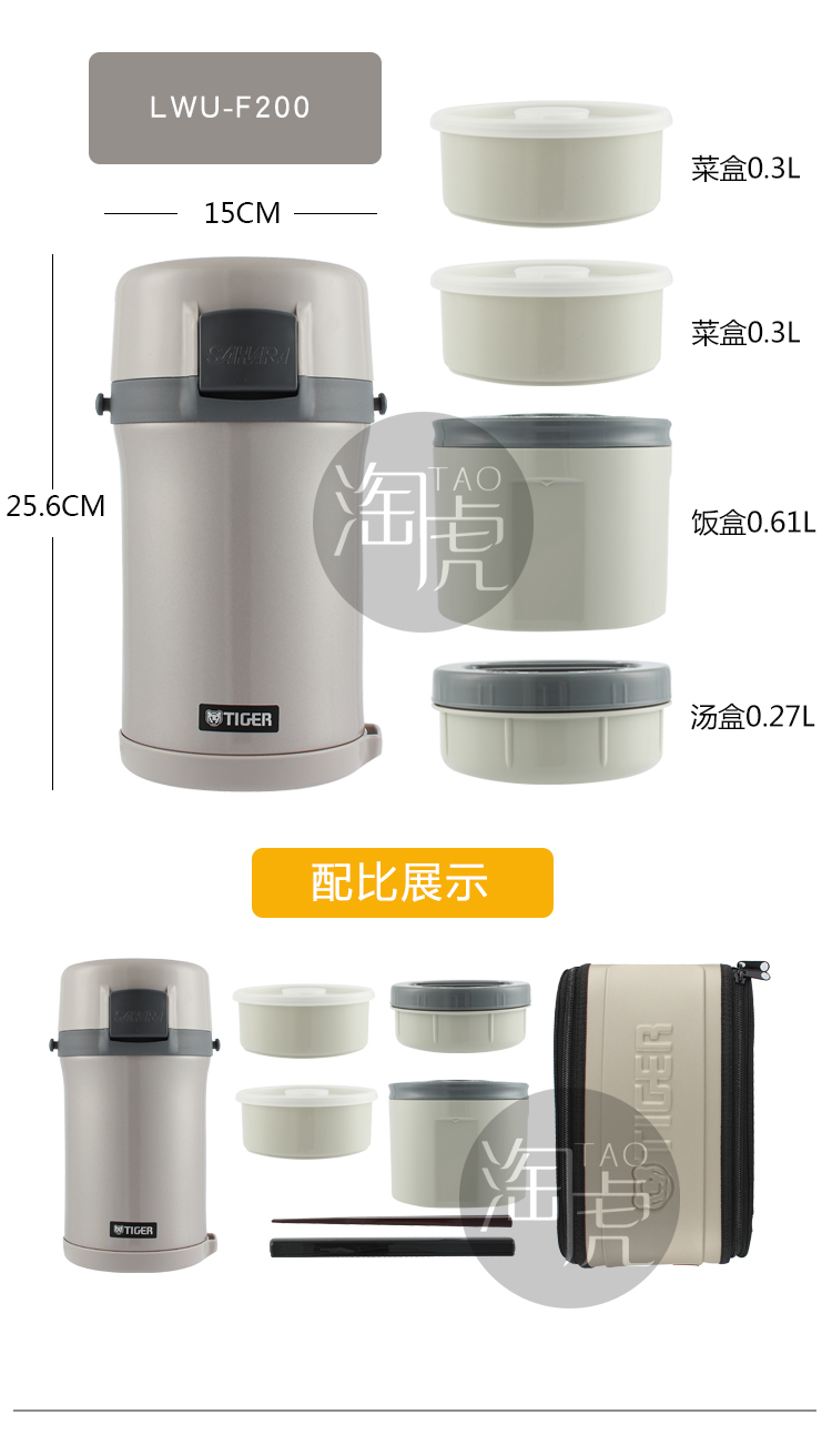 TIGER insulated lunch box multi-layer adult large-capacity lunch box children's student stainless steel portable insulated lunch box 4-layer lunch box LWU-F200 4-layer 1.48L