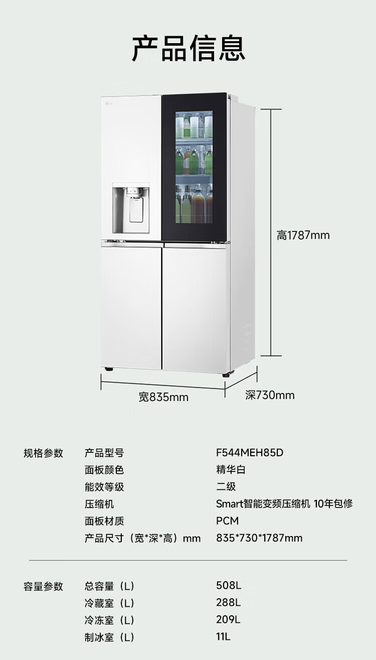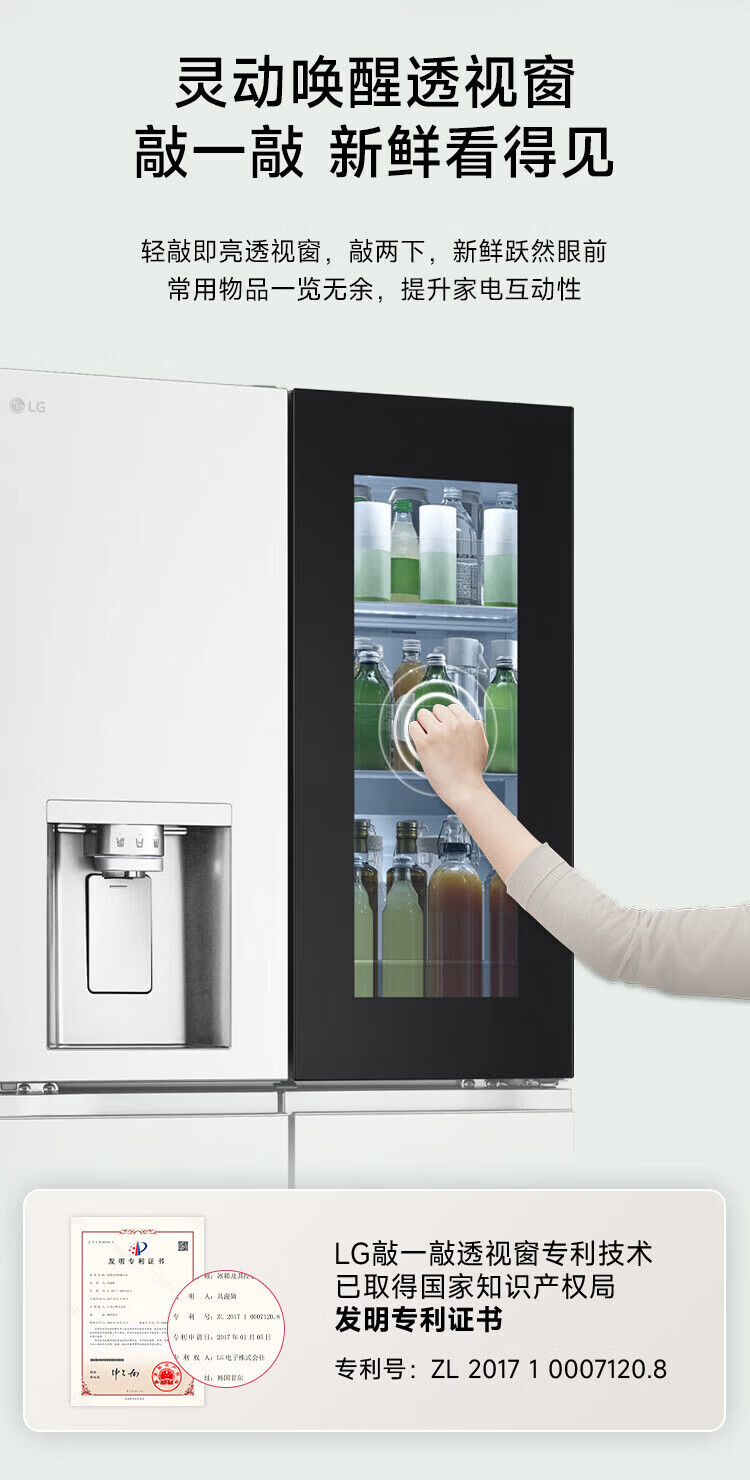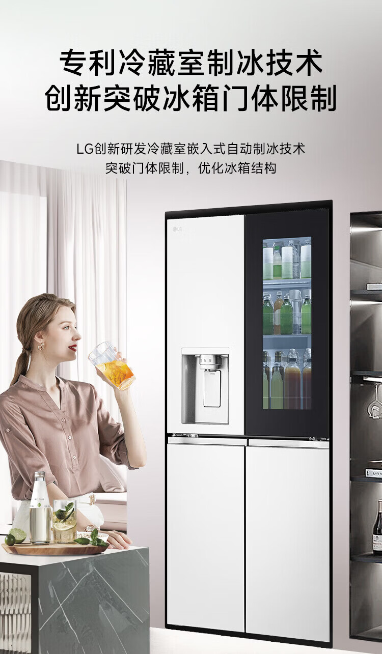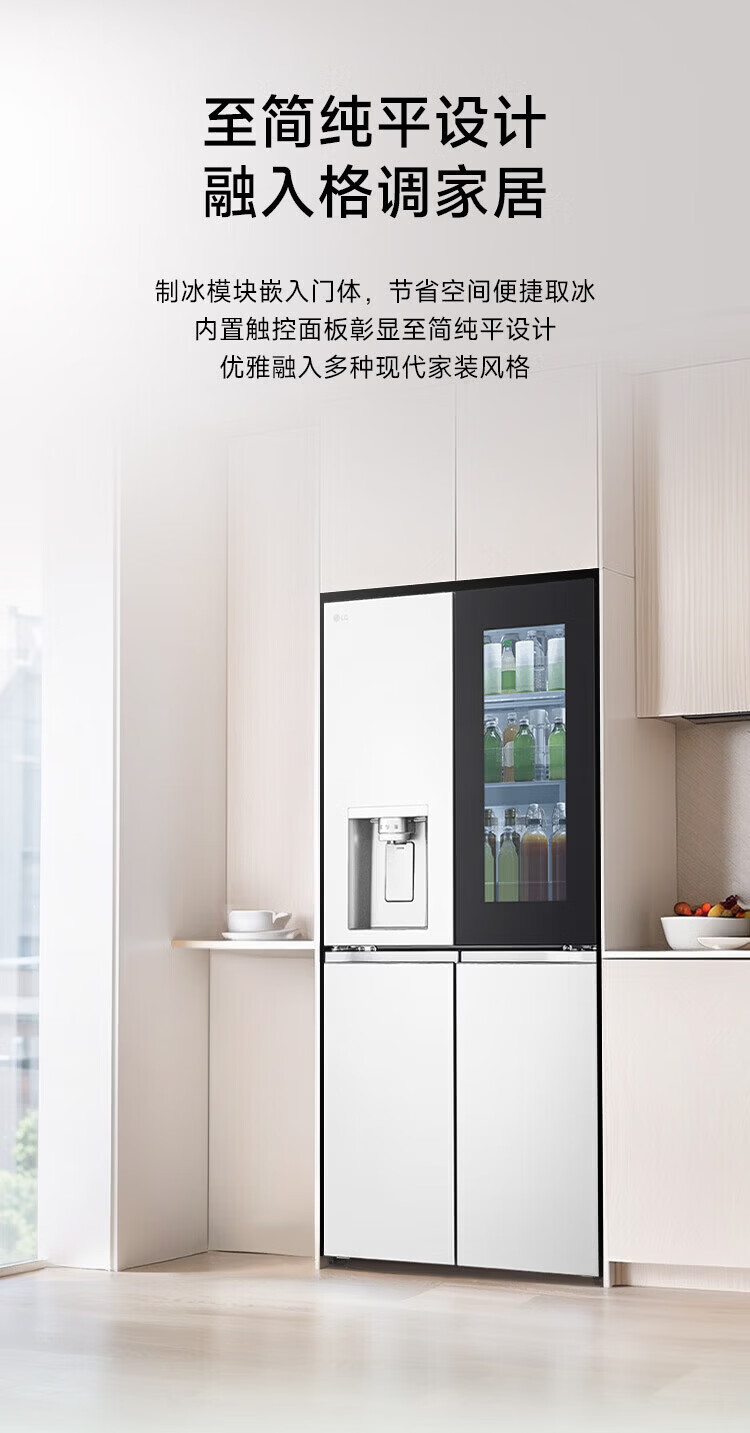 LG 508-liter cross-door refrigerator, smart automatic ice maker, click to reveal see-through window, beauty refrigerator, air-cooled, frost-free, ultra-thin, energy-saving, variable frequency, large-capacity household, Knock Knock Series, Essence White F544MEH85D