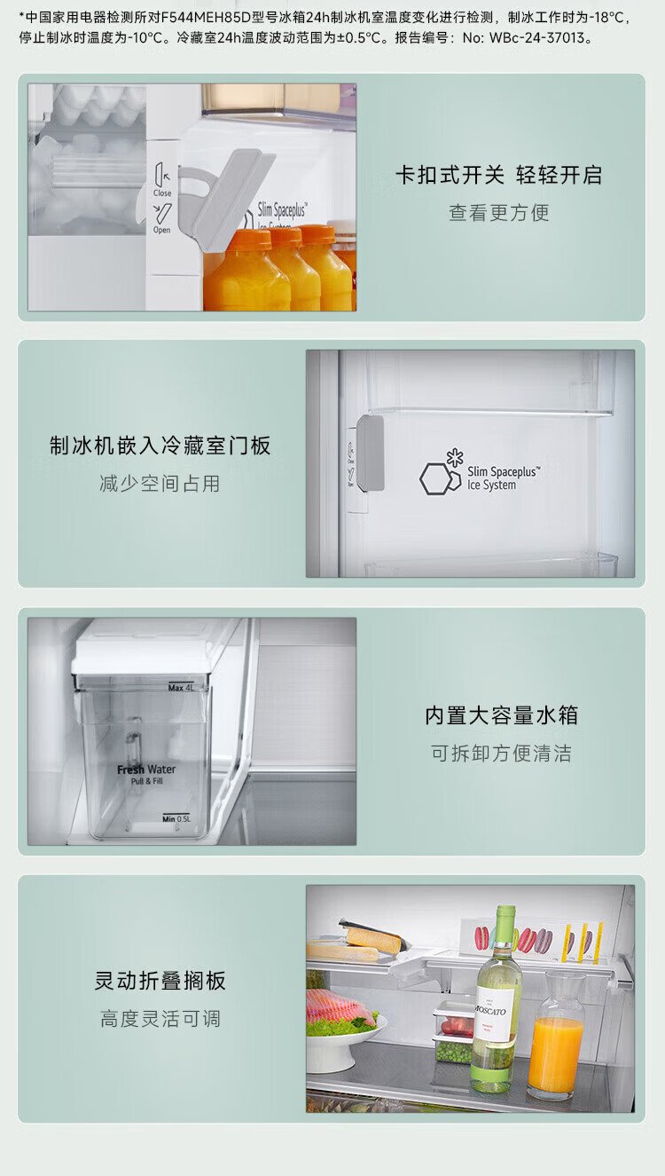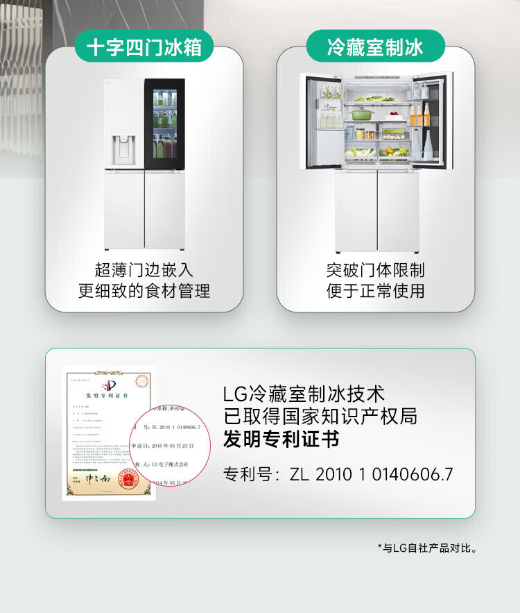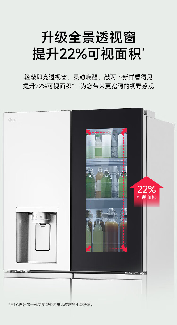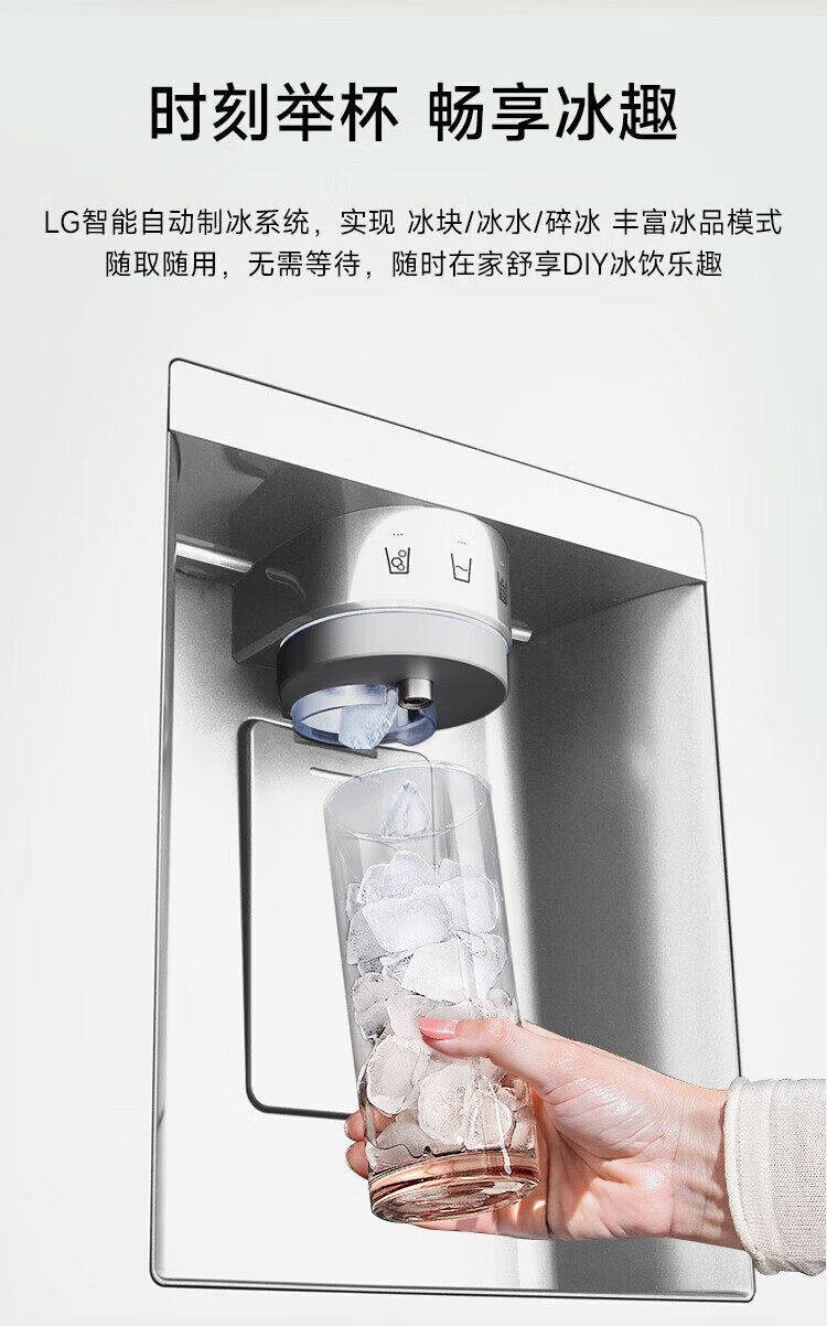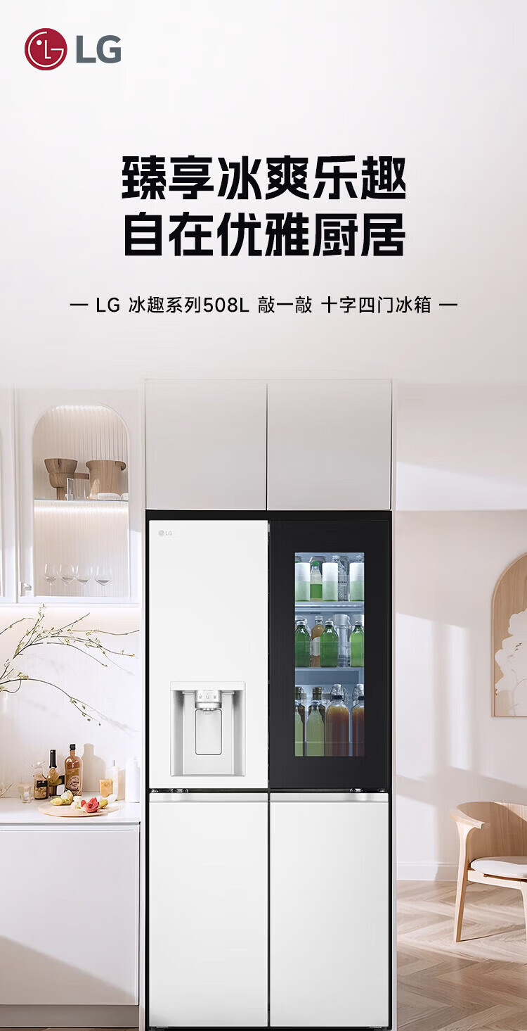 LG 508-liter cross-door refrigerator, smart automatic ice maker, click to reveal see-through window, beauty refrigerator, air-cooled, frost-free, ultra-thin, energy-saving, variable frequency, large-capacity household, Knock Knock Series, Essence White F544MEH85D
