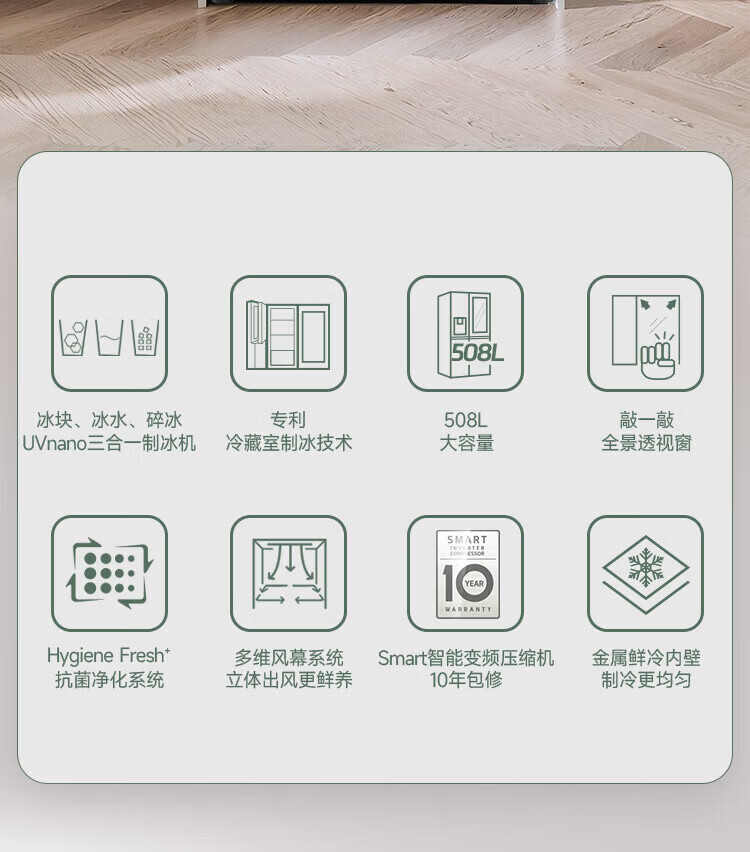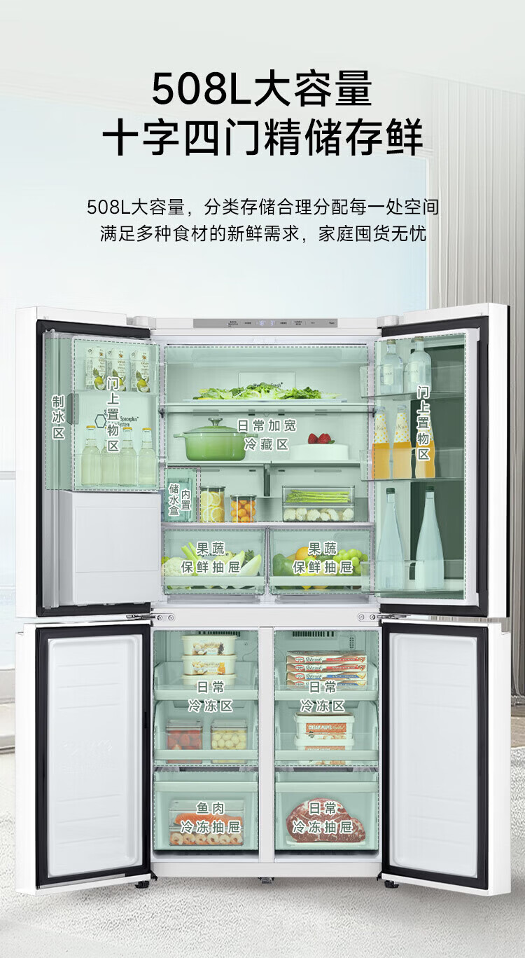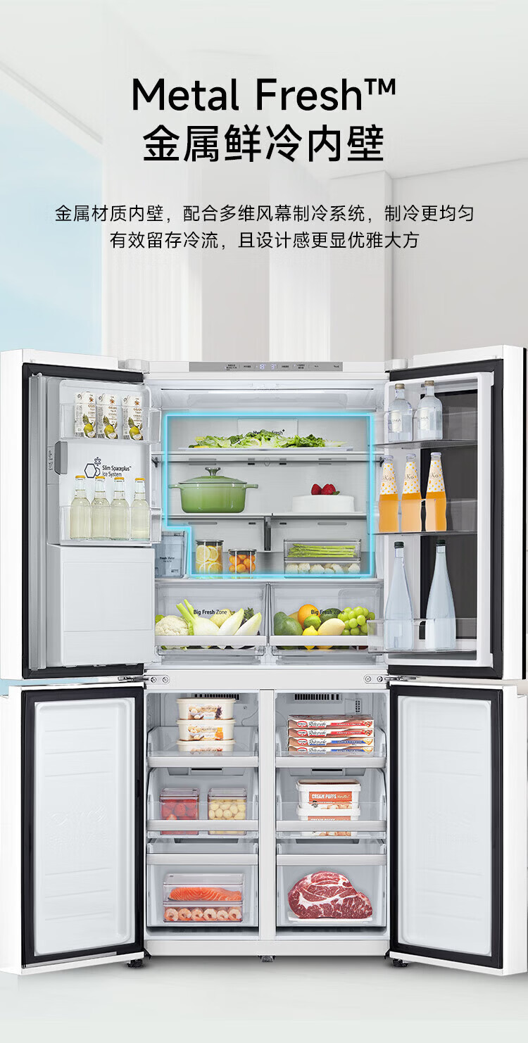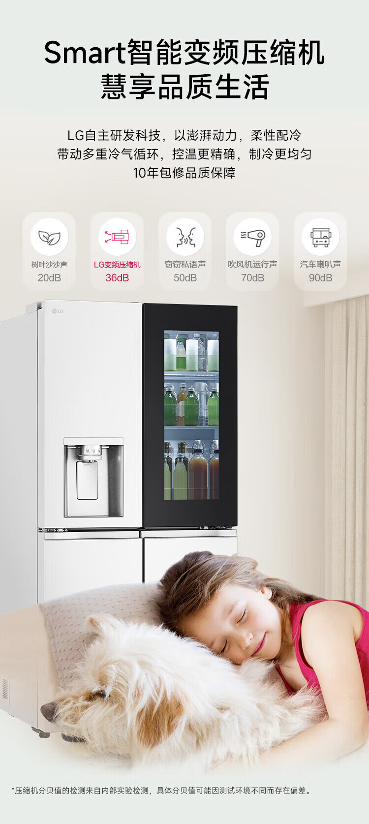 LG 508-liter cross-door refrigerator, smart automatic ice maker, click to reveal see-through window, beauty refrigerator, air-cooled, frost-free, ultra-thin, energy-saving, variable frequency, large-capacity household, Knock Knock Series, Essence White F544MEH85D