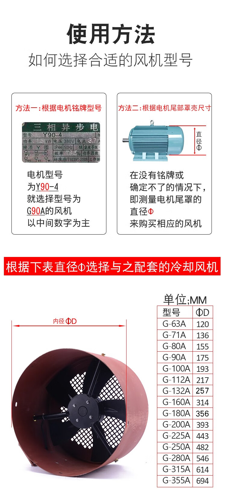 Oudu inverter motor cooling fan without housing G-112 380V