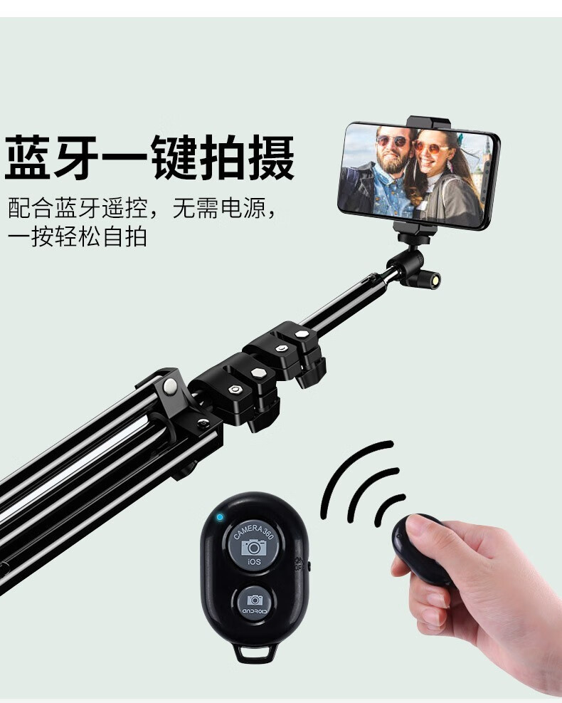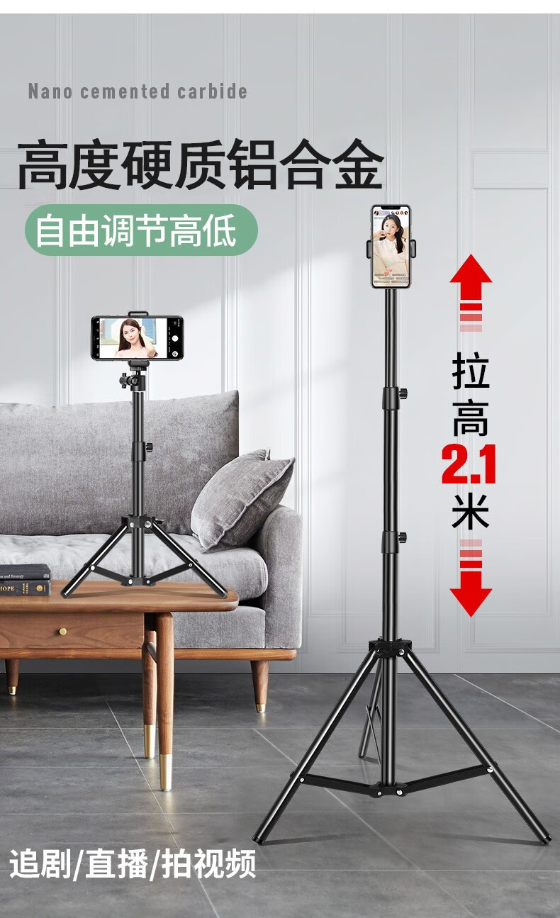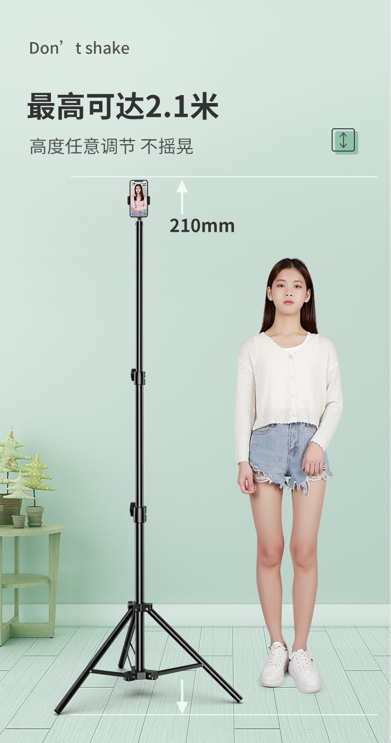 Meidu Mobile Live Broadcast Stand Tripod Floor Standing Outdoor Portable 2.1 Meter Lifting and Folding Bluetooth Remote Control Selfie Stick Photo Douyin Short Video Recording Online Class Jump Exercise Postgraduate Entrance Examination Upgraded Extra Thick Model | Matte Extra Thick Rod Arm + Pan/Tilt + Mobile Phone Clip + Storage + Bluetooth