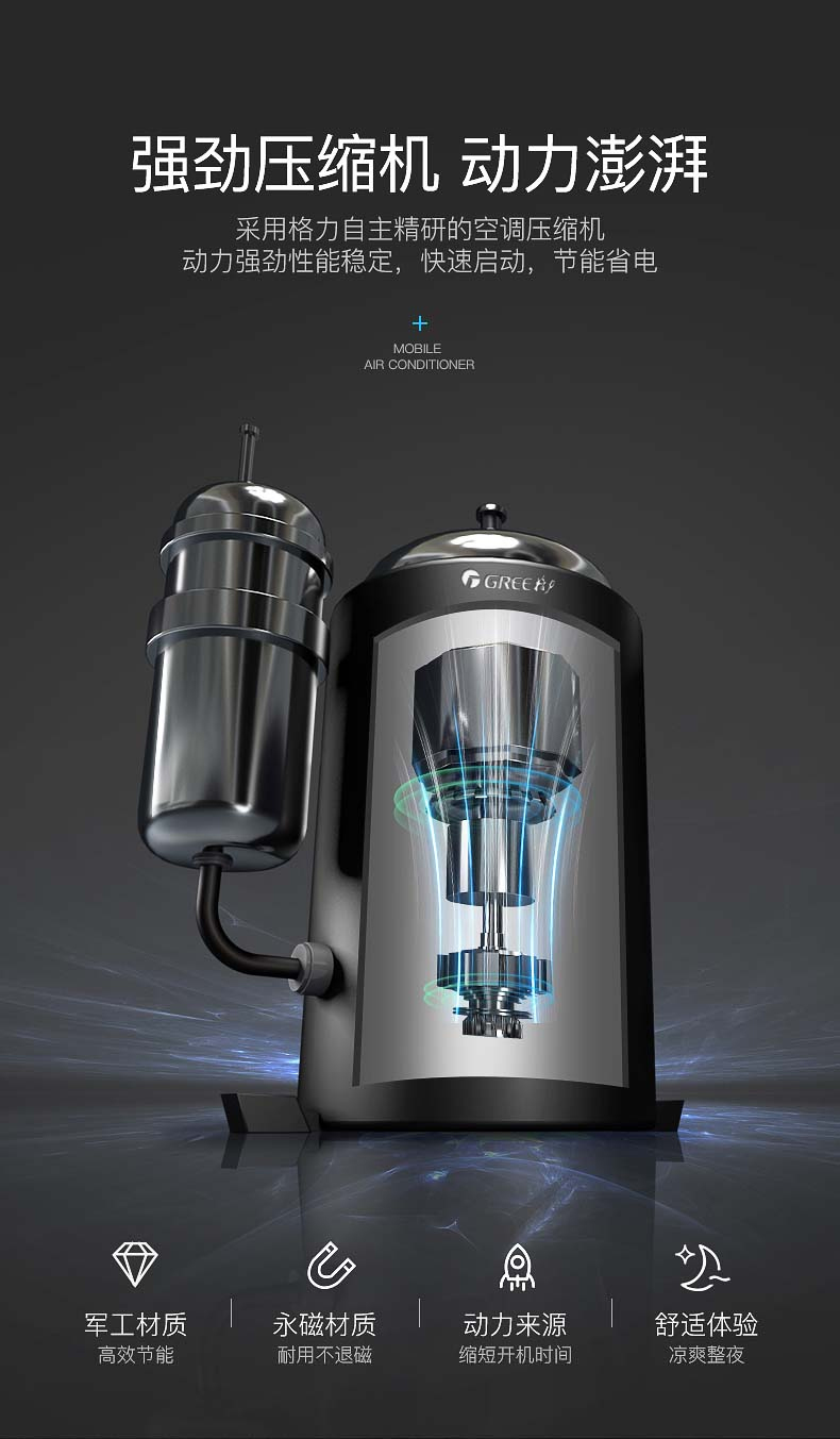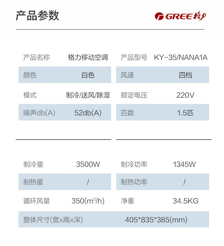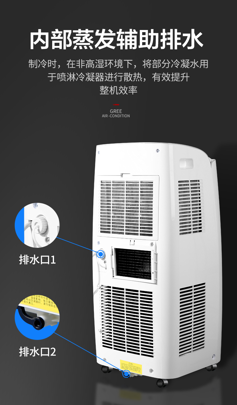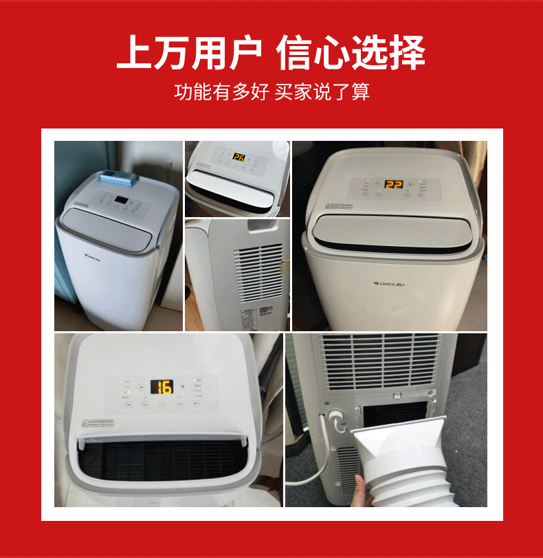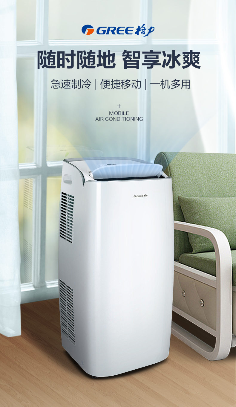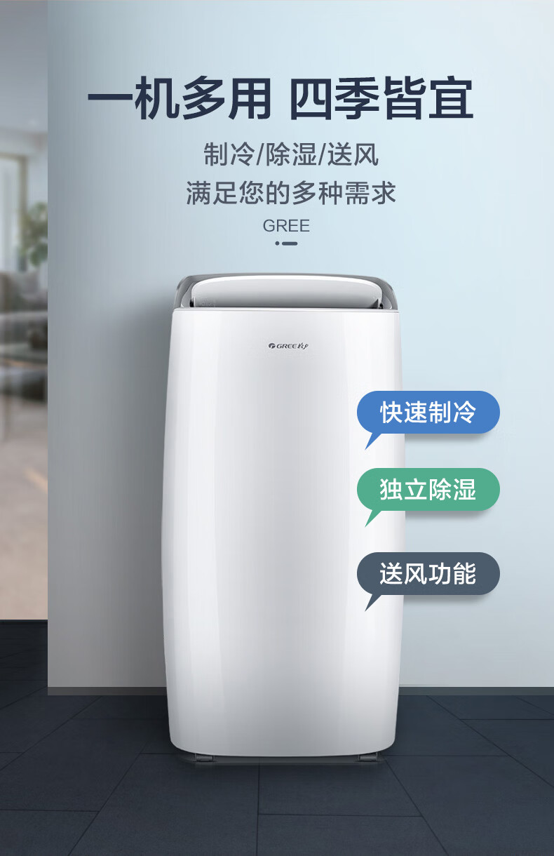 Gree Large 1.5 HP Heating and Cooling Mobile Air Conditioner Home Kitchen Living Room Portable Vertical All-in-One Air Conditioner Dehumidifying Mobile Air Conditioner Forced Refrigeration Rapid Heating Move As You Want Large 1.5 HP Cooling and Heating