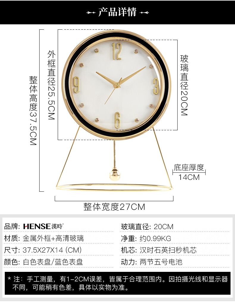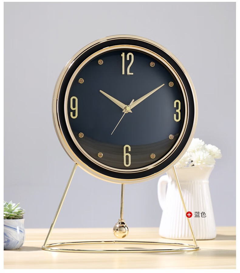 Hense Creative Desk Clock Modern Light Luxury Desktop Clock Living Room Desktop Clock Decoration Ornament Quartz Clock HD58 Blue