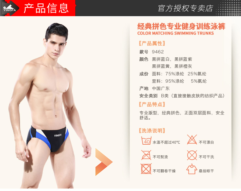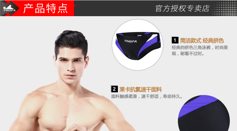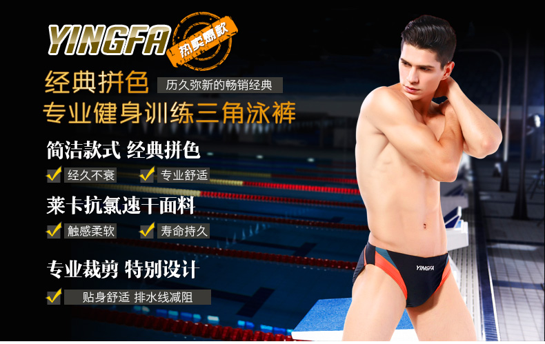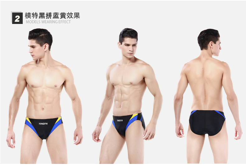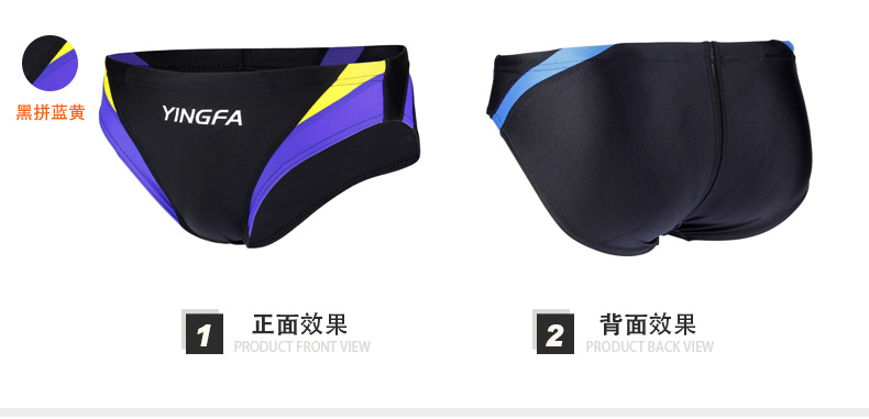 英发(YINGFA)泳裤男士专业三角竞赛训练游泳裤成人儿童比赛泳裤 蓝黄 2XL(腰围76-82厘米)