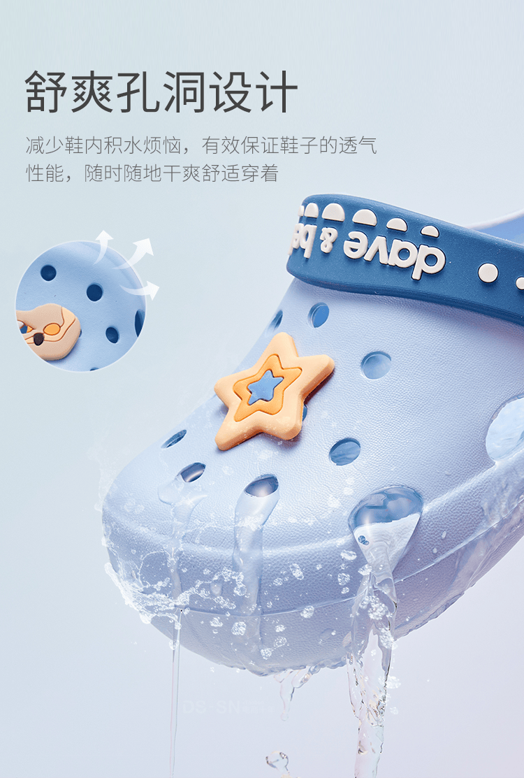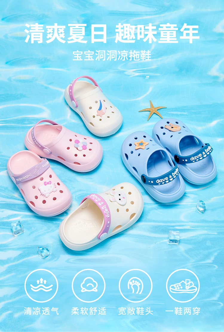 戴维贝拉(DAVE&BELLA)夏季洞洞鞋儿童拖鞋男童凉鞋宝宝拖鞋女童沙滩鞋防滑婴幼儿凉拖鞋 蓝色【DB2221782】 21码